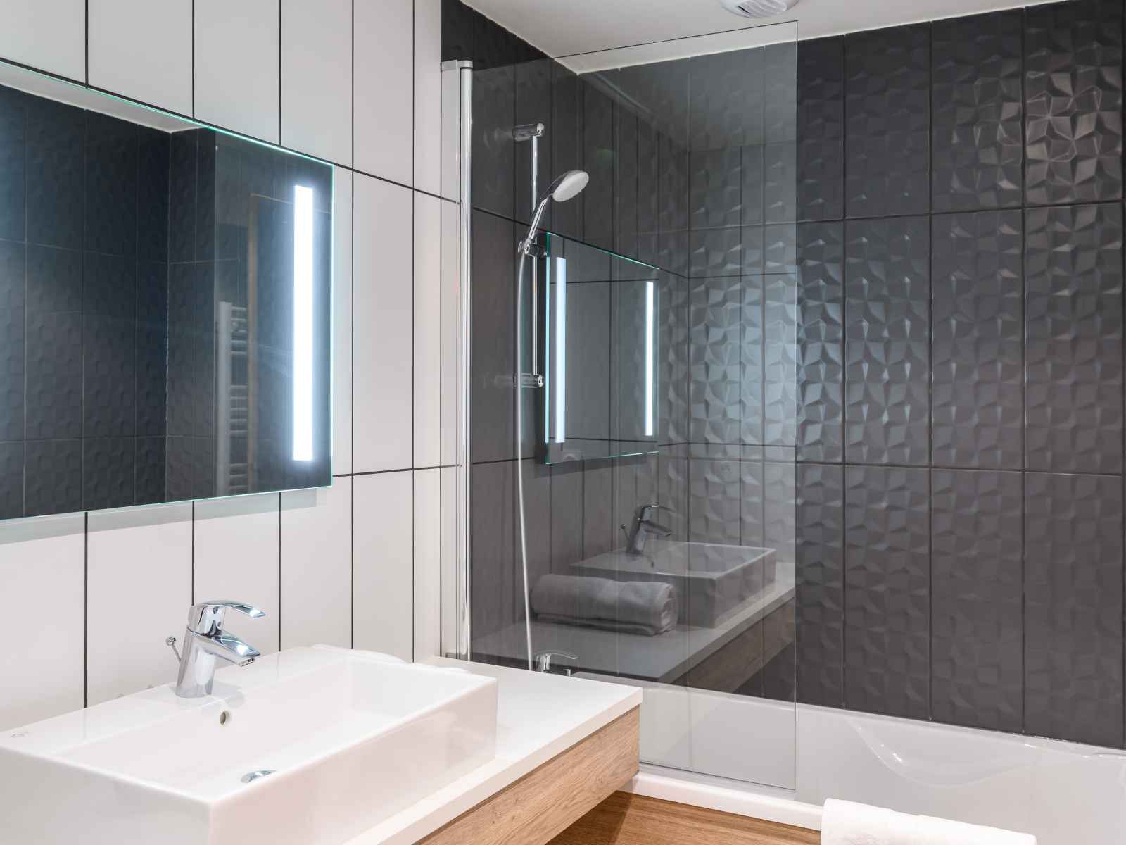 Salle de bain avec sèche-serviettes