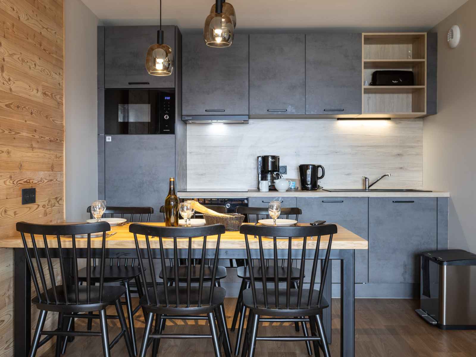 Résidence idéalement située à 15 minutes à pied du front de neige. equipée d'un espace aquatique, d'un salon avec bibliothèque, cheminée, espace gaming et salle de cinéma, le confort et la relaxation seront au rendez-vous pour votre séjour.
