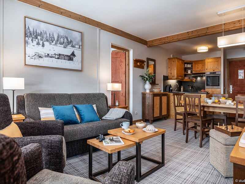 A noter : Cet hébergement est situé dans le bâtiment Manoir Savoie, certains appartements bénéficient d'une vue Mont Blanc à réserver en amont avec supplément auprès de la réception. Il bénéficie d'un accès aux infrastructures présentes au sein de ces bâtiments : 1 piscine extérieure avec une vue imprenable sur le Mont Blanc, 1 salle de sport, 1 bain à remous, hammam et 1 sauna. Balcon non accessible.