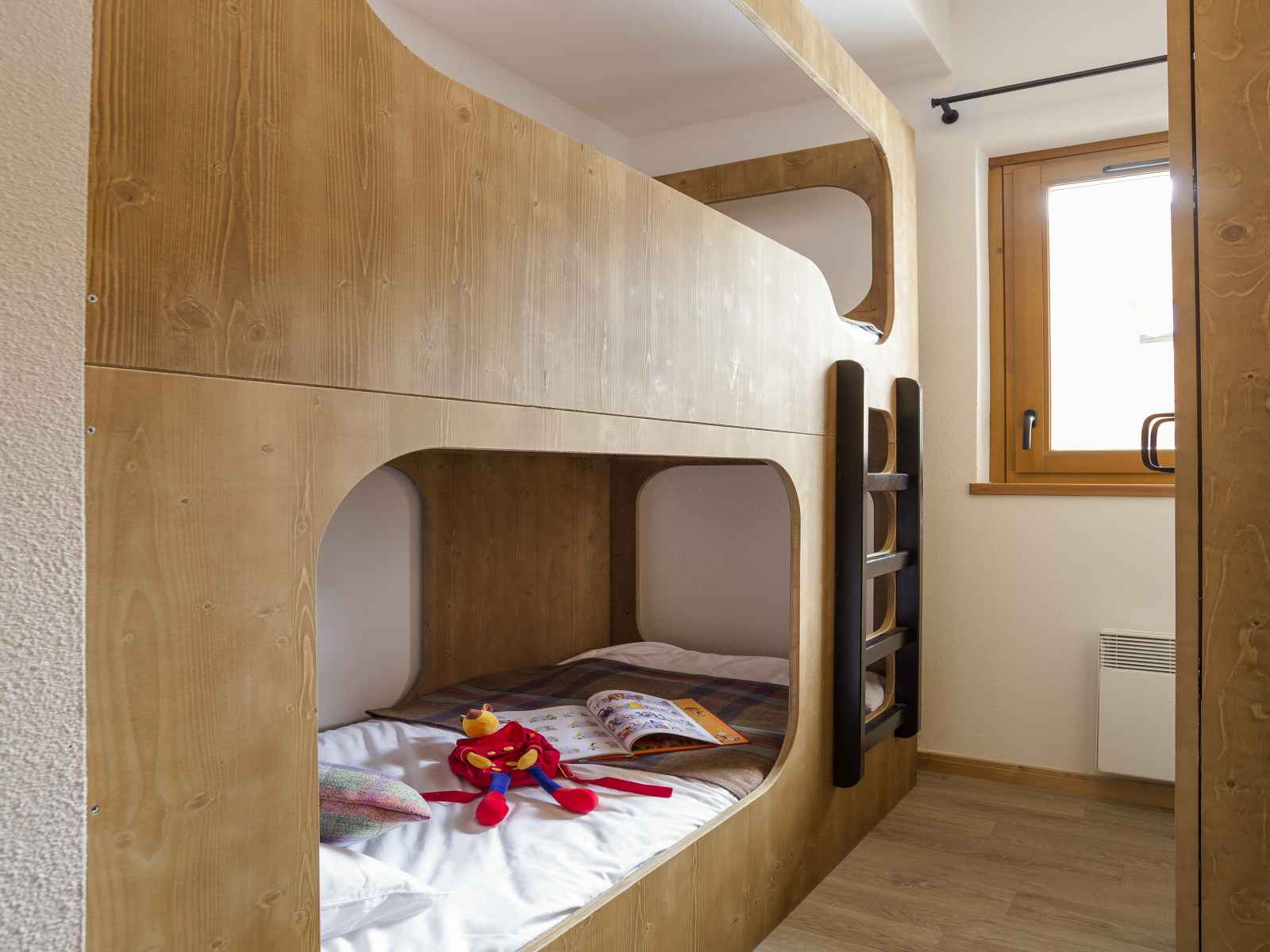 Une chambre avec un lit superposé