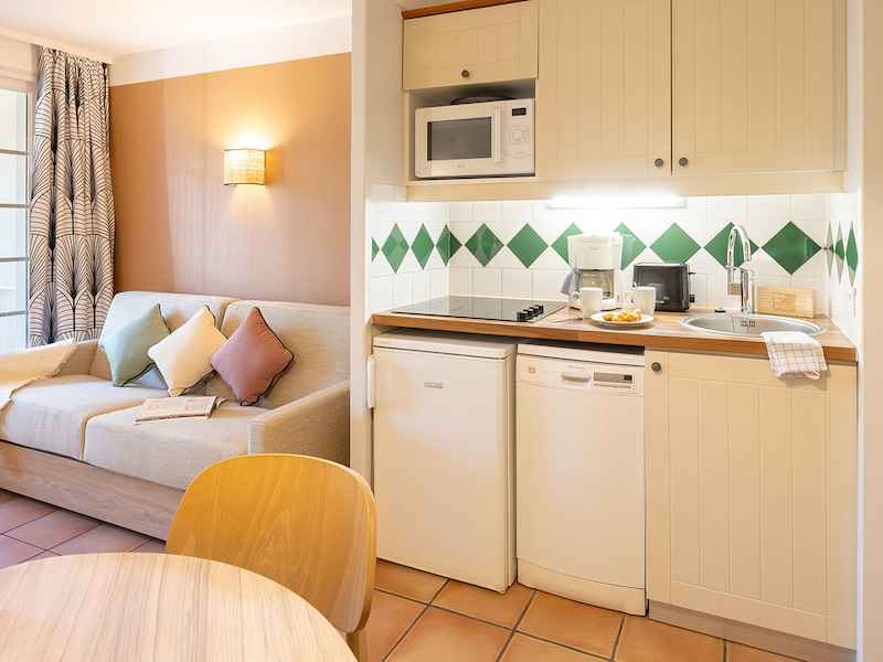 - Equipements (sauf mention contraire ci dessus) : Baignoire, Bouilloire, Machine à café avec filtre, Cuisine équipée, Combiné four et micro-ondes, Lave-vaisselle, Sèche-cheveux, Télévision avec chaînes nationales