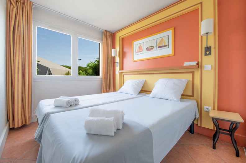 banquette dans le séjour (ou canapé convertible), chambre avec lits simples qui peuvent se rapprocher pour former un lit double. lit