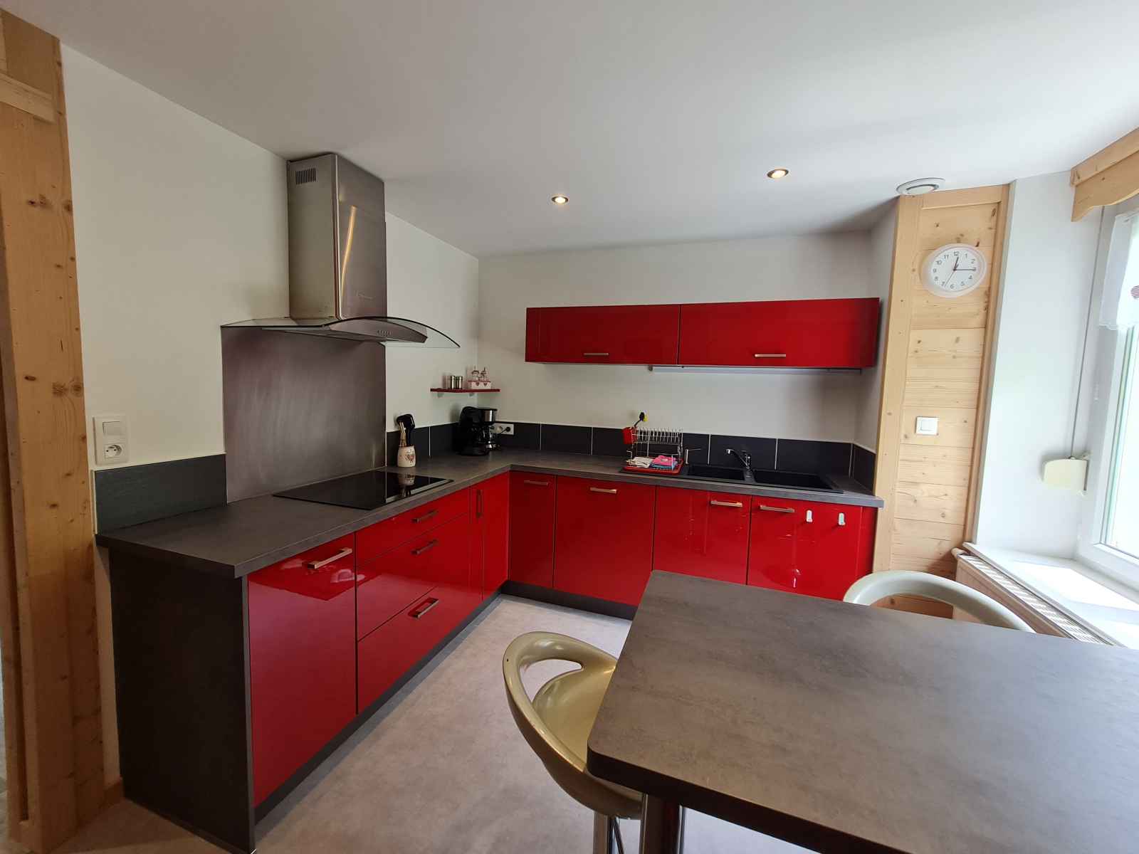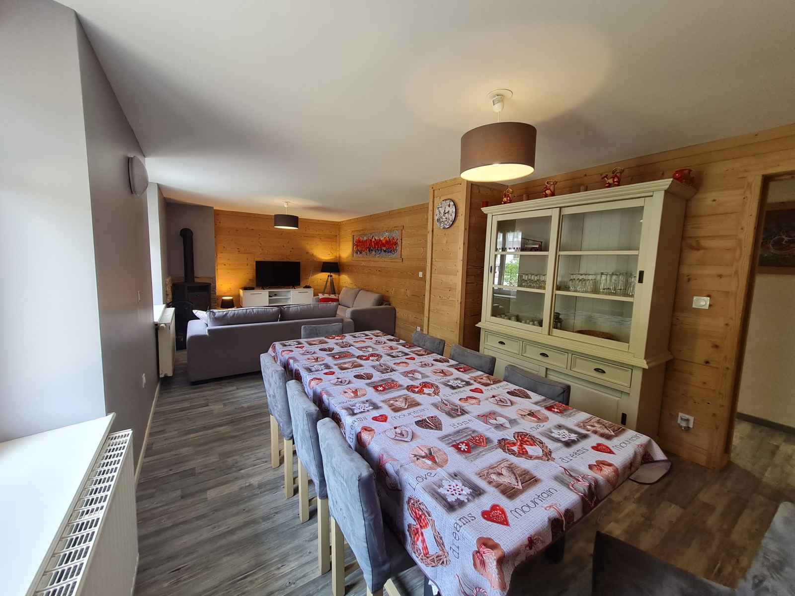 intérieur bois, il saura vous faire passer un agréable séjour. Place de parking et garage privée. Espace plein air. Appartement au première étage composé de : 2 chambres une avec un lit double de 160/200 cm et une avec deux lits superposés (matelas de 90/190 cm) ainsi que deux lit 90/190 dont 1 lit gigogne . Un séjour avec 2 canapés convertibles (90x190), TV connectée écran plat. Accès wifi. Ouvert sur une salle à manger avec une table pouvant accueillir jusqu’à 8 personnes. Cuisine intégrée et équipée : 3 feux vitrocéramique, four, micro-onde, hotte, réfrigérateur et compartiment congélateur, bouilloire, cafetière (filtre et dosettes Senseo), grille-pain. Nécessaire de cuisine. Ilot de cuisine avec tabourets. Appareils à raclette et fondue. Salle d'eau avec une belle douche 80x120 . Wc séparé. Charges non comprises (relevé de compteur à l'arrivée et au départ). Local de rangement au sous sol pour skis et vélos . Chauffage fioul inclus. Terrain partagé avec salon de jardin et barbecue privatif. (Chaises longues, parasol) Ouvert toute l'année Vous serez accueillis par le propriétaire ou sa mandataire: état des lieux et relevé de compteur à l'arrivée et au départ. Merci de contacter le propriétaire 1h avant d'arriver au gite.