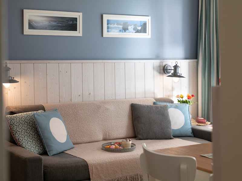 - pièce à vivre : 1 lit-banquette avec 1 lit gigogne (recommandé pour les enfants) ou convertible 2 places