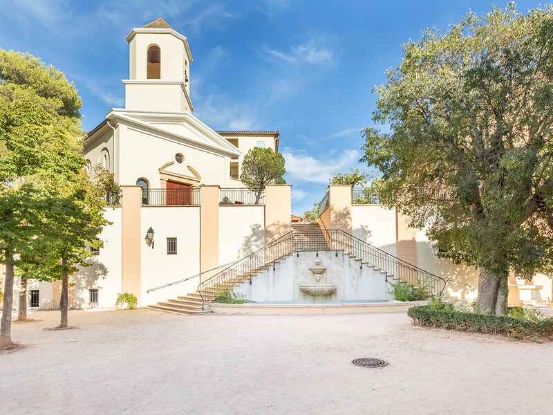 références architecturales de la région restituant l'ambiance et le charme d'un village de provence avec sa place centrale et ses restaurants et commerces.