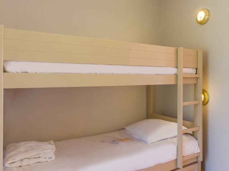 - pièce à vivre : 1 canapé-lit double et 1 coin nuit avec 2 lits superposés (recommandés pour les enfants).