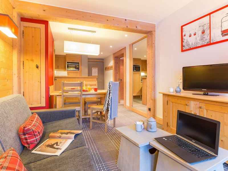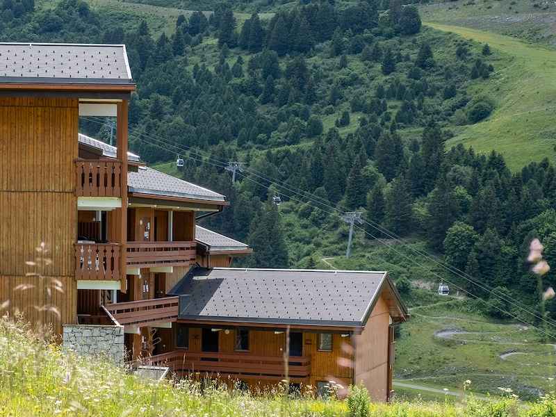 en surplomb de la station, dans un quartier calme, la résidence de gamme premium arbore une architecture de type savoyard et offre une vue imprenable sur les alpes. les appartements adoptent une décoration élégante avec une dominante de bois, avec balcons ou terrasses pour profiter du panorama sur les alpes. au salon de réception, les enfants retrouvent leur espace dédié.