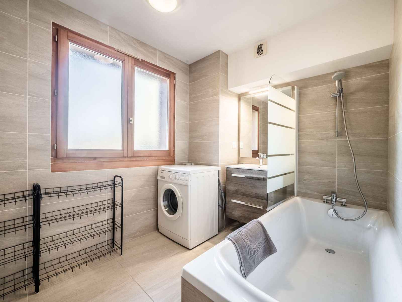 WC indépendant, salle de bain avec baignoire et lave-linge