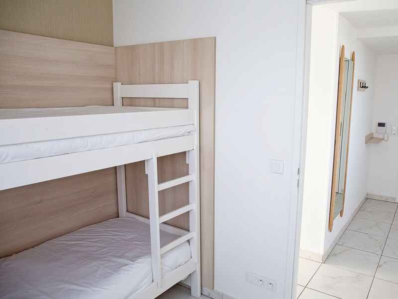 - pièce à vivre : 1 canapé (non convertible) et lits superposés (recommandé pour les enfants)