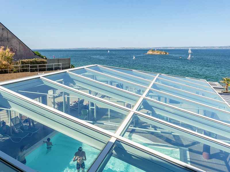 de la plage des sables blancs qui propose diverses activités nautiques. vous apprécierez le repos dans son joli jardin fleuri ou la vue sur la mer depuis le solarium qui communique avec la piscine intérieure sous verrière chauffée toute l'année. pour une touche bien-être, retrouvez l'institut "thalasso-douarnenez" qui propose une sélection de cures, à 300 mètres de la résidence. tous les commerces sont situés à 1,5 km et le supermarché est à 1 km.