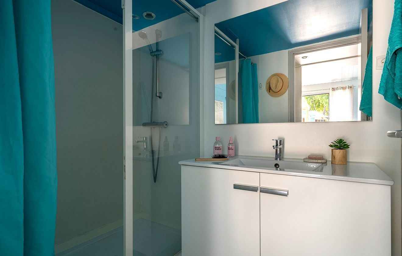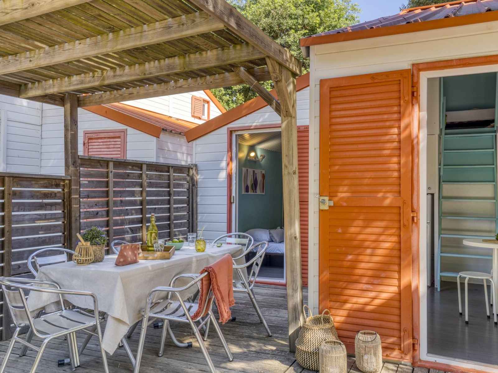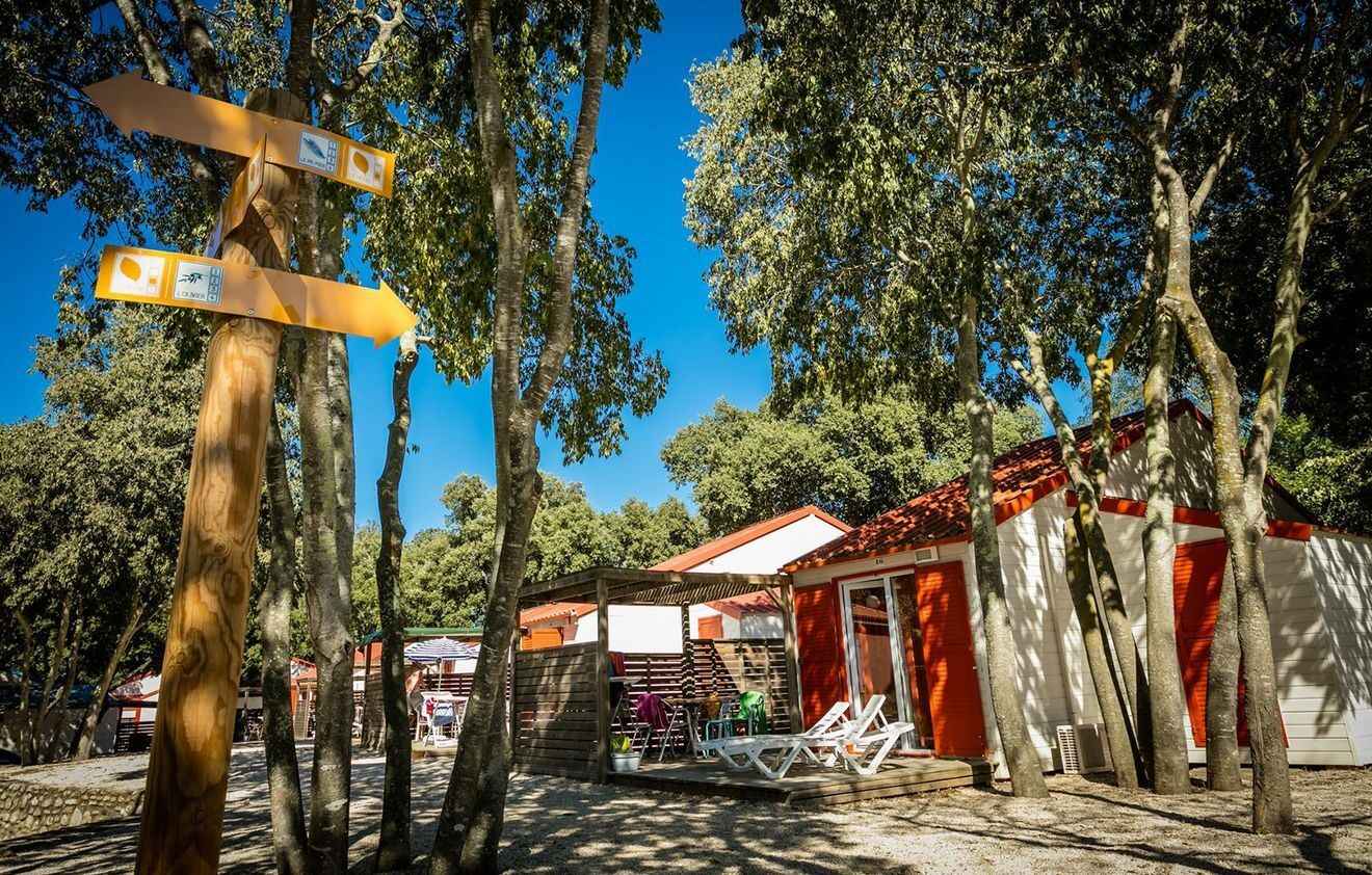 son environnement enchanteur. À 10 mn en voiture de la plage (bus-navettes gratuites pour la plage et le centre-ville), le camping propose des logements de standing, climatisés et équipés avec kitchenette (micro-ondes, four, lave-vaisselle dans les chalets), salle de bains ou de douche, wc, terrasse avec mobilier de jardin. une place de parking et un accès wifi illimité et gratuit pour 4 appareils.