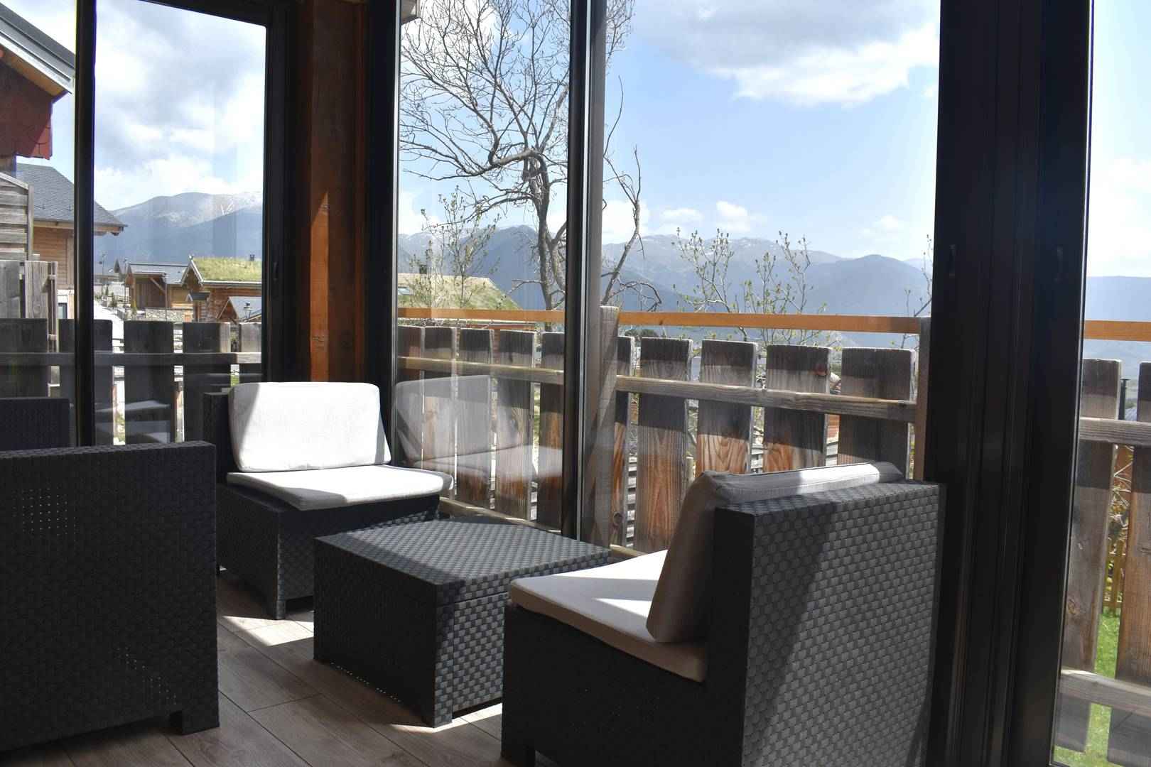 ce chalet est exposé plein sud sur deux étages, le chauffage est électrique et eau chaude par cumulus.