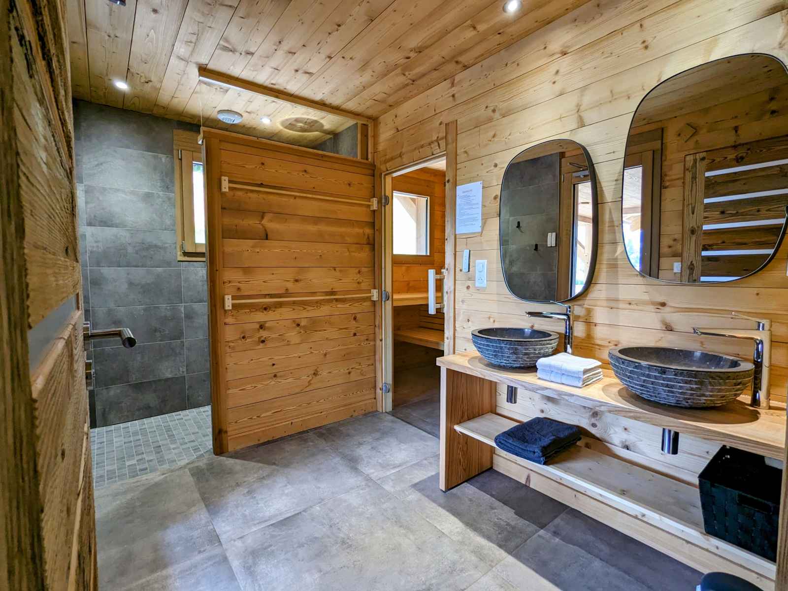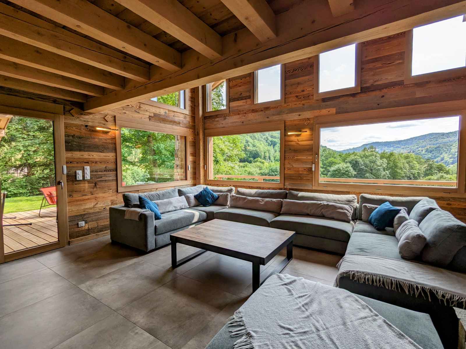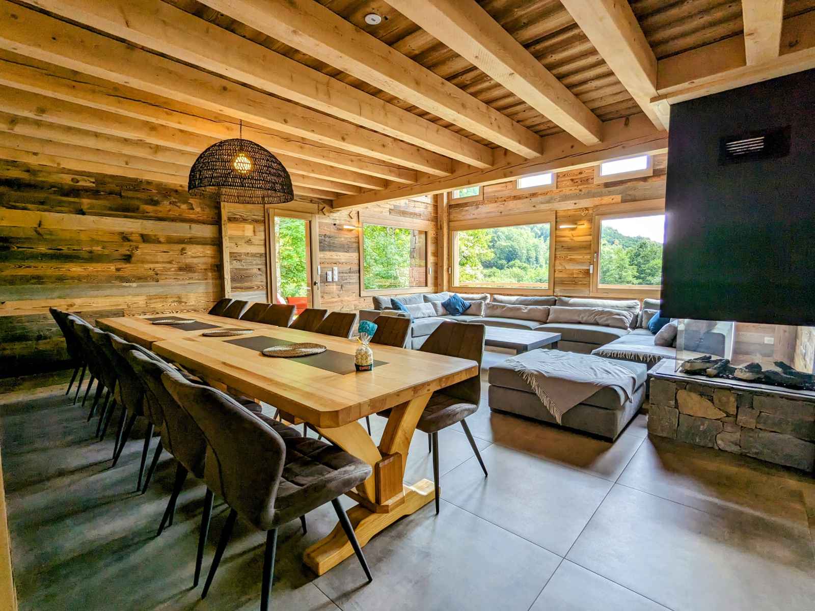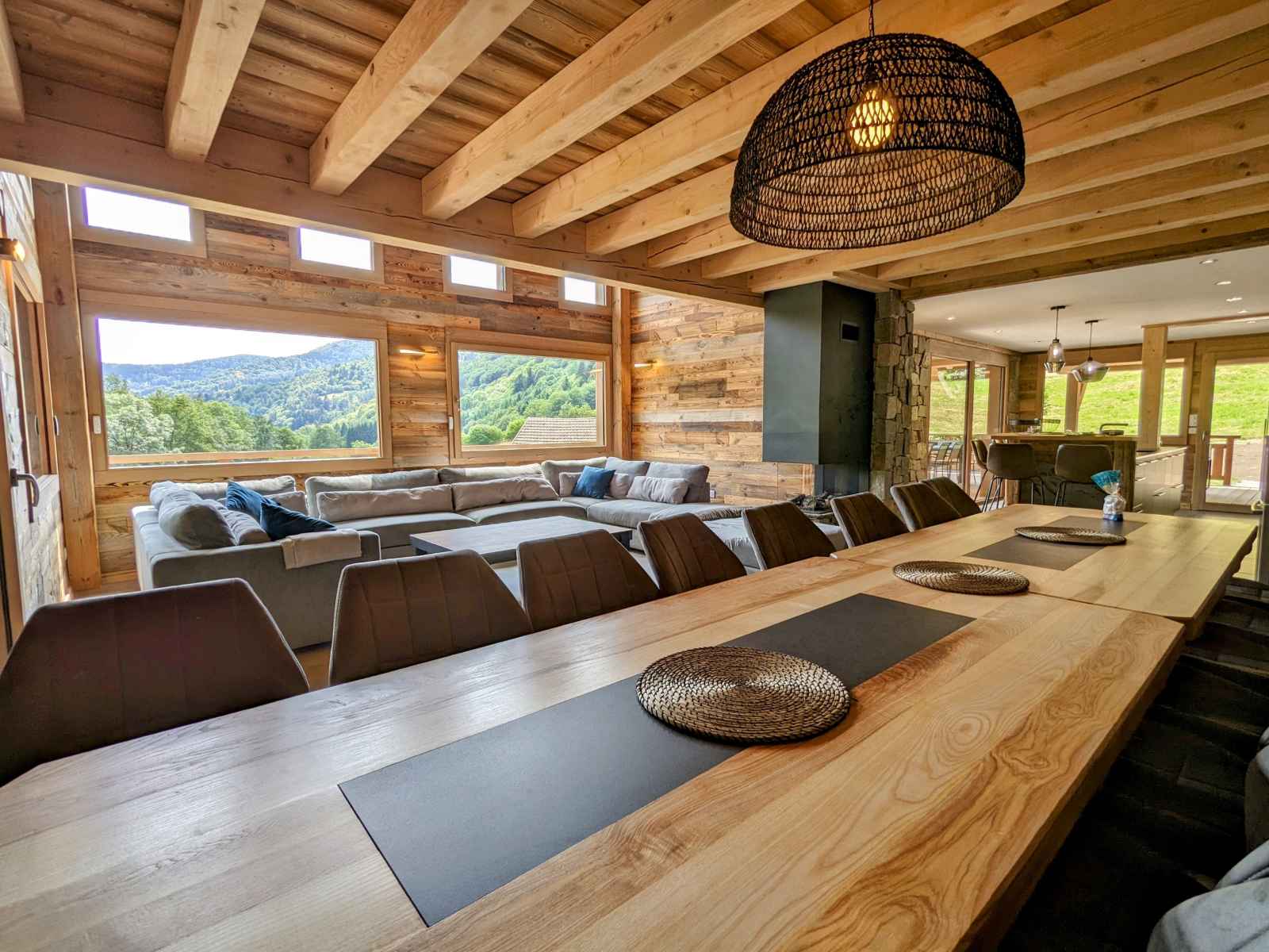 de La Bresse et de ses commerces (1,5km). La ville de Gérardmer avec son domaine skiable et son lac se situe à 13km. Chalet de 390m² sur 3 niveaux. Il est composé au rez de chaussée : - Deux entrée : entrée principale et une entrée annexe avec stockage possible vélos et ski. - D'une pièce à vivre : Espace repas pouvant accueillir jusqu’à 16 personnes. Cuisine équipée : Réfrigérateur. Compartiment congélation. Plaque de cuisson induction 5 feux. Four. Four micro-ondes. Lave-vaisselle. Cafetière Senseo. Bouilloire. Grill pain. Salon avec, canapés et table basse. - D'une chambres Lit Queen Size 160/200 avec dressing de rangement - D'une chambres Lit Queen Size 160/200, disposant d'un accès direct à l'extérieur - Une Salle d'eau : Douche à l'italienne (90/170). Deux vasque. Sèche cheveux. - Une Salle d'eau avec sauna électrique : Douche à l'italienne (190/200). Deux vasque. Sèche cheveux. - Une terrasse bois avec spa 5 places, salon de jardin et salon de détente. Plancha à Gaz. - Une buanderie avec lave linge et sèche linge. - Deux WC indépendant Au premier étage : - Deux chambres avec Lit Queen Size 160/200, balcon partagé - D'une chambre Lit Queen Size 160/200 - Une chambre avec deux lits 80/200 jumelables en 160/200 - Une chambre avec deux lits 80/200 jumelables en 160/200 et 2 lits 80/200 superposé - Un salon en mezzanine avec canapés, table basse et TV connectée. - Deux Salle d'eau : Douche à l'italienne (90/190). Deux vasque. Sèche cheveux. - Deux WC indépendant Au dernier étage une salle de jeux pour enfants (mansardé bas de plafond) Au rez de jardin : - Une salle de 90m² a été conçue pour les fêtes avec des enceintes et des jeux de lumières, mais peut se transformer en salle de séminaire avec vidéo projecteur. Billard et Baby-foot. Réfrigérateur. - Une salle de sport avec tapis de course, vélo elliptique et vélo d'appartement. - Salle d'eau de la salle de sport, une vasque, douche à l'italienne (90/200) sèche cheveux.