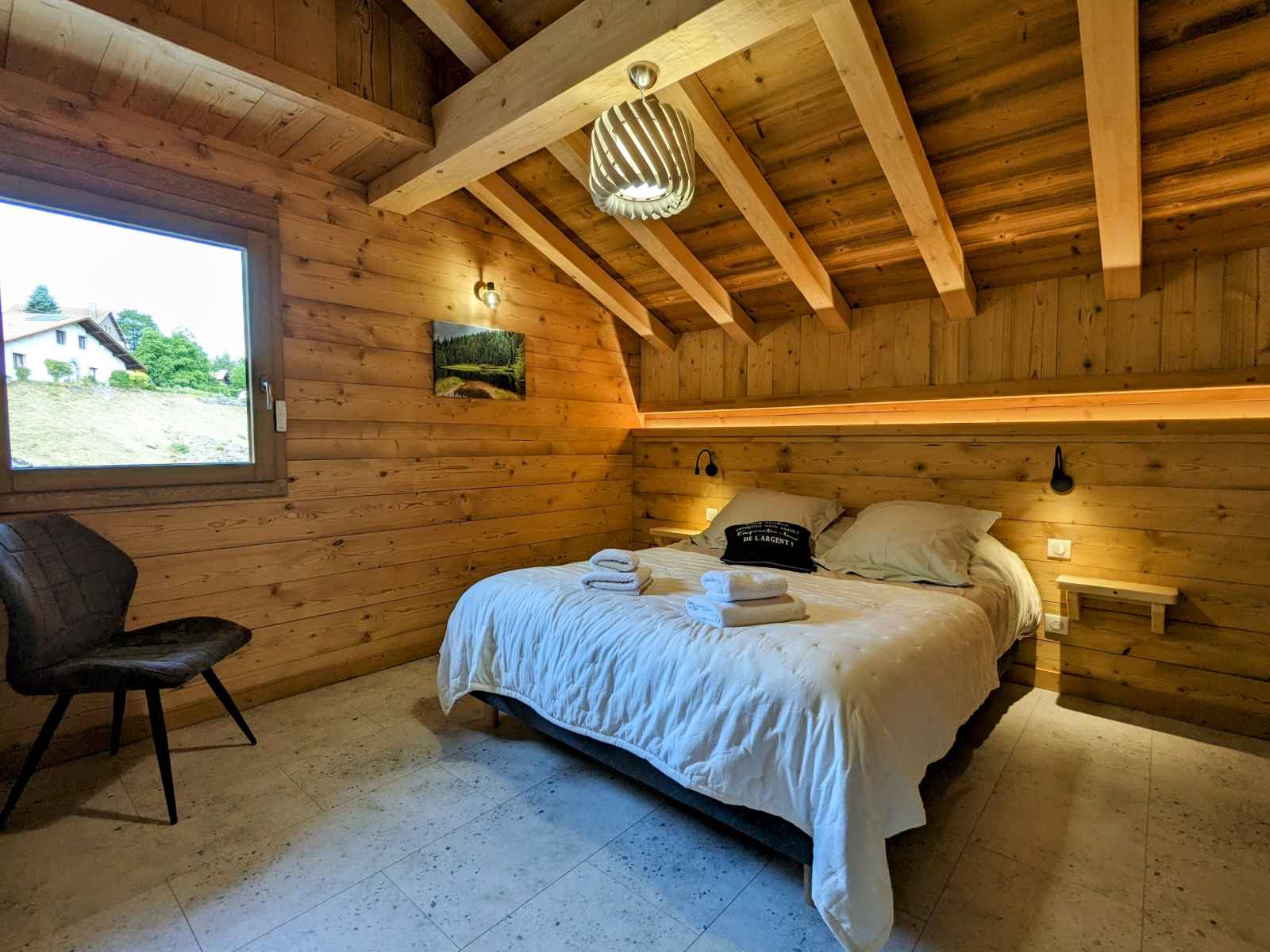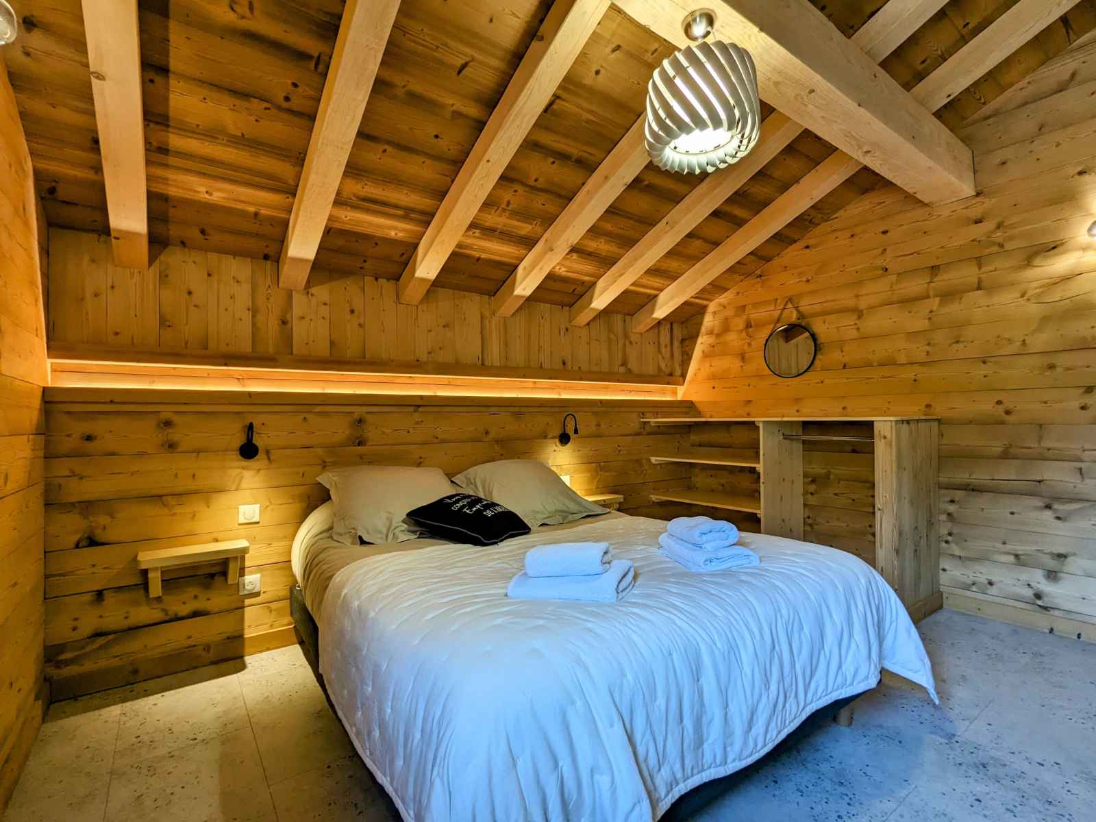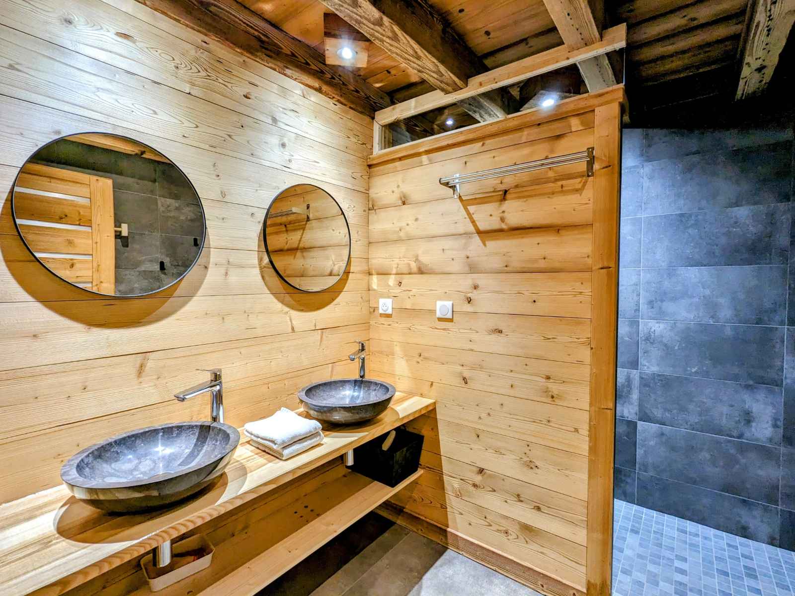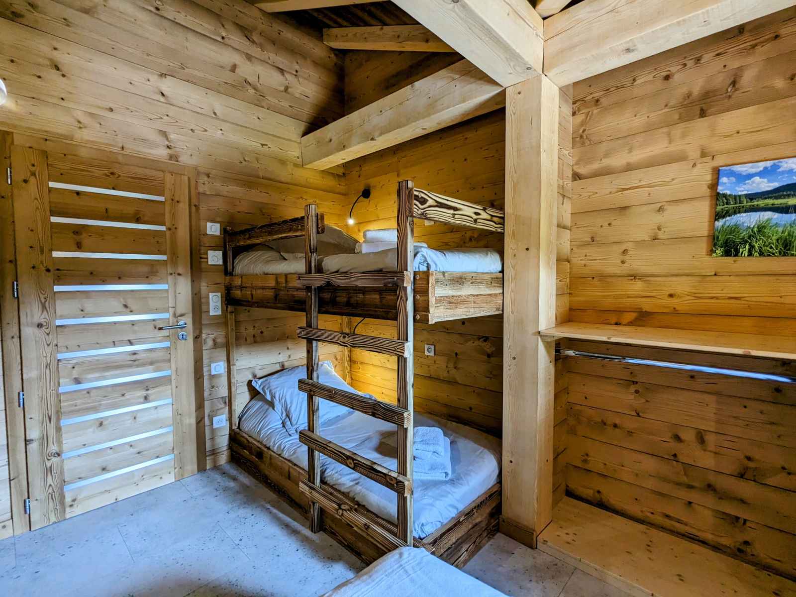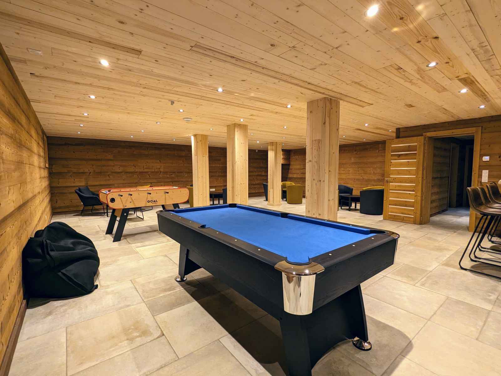 de La Bresse et de ses commerces (1,5km). La ville de Gérardmer avec son domaine skiable et son lac se situe à 13km. Chalet de 390m² sur 3 niveaux. Il est composé au rez de chaussée : - Deux entrée : entrée principale et une entrée annexe avec stockage possible vélos et ski. - D'une pièce à vivre : Espace repas pouvant accueillir jusqu’à 16 personnes. Cuisine équipée : Réfrigérateur. Compartiment congélation. Plaque de cuisson induction 5 feux. Four. Four micro-ondes. Lave-vaisselle. Cafetière Senseo. Bouilloire. Grill pain. Salon avec, canapés et table basse. - D'une chambres Lit Queen Size 160/200 avec dressing de rangement - D'une chambres Lit Queen Size 160/200, disposant d'un accès direct à l'extérieur - Une Salle d'eau : Douche à l'italienne (90/170). Deux vasque. Sèche cheveux. - Une Salle d'eau avec sauna électrique : Douche à l'italienne (190/200). Deux vasque. Sèche cheveux. - Une terrasse bois avec spa 5 places, salon de jardin et salon de détente. Plancha à Gaz. - Une buanderie avec lave linge et sèche linge. - Deux WC indépendant Au premier étage : - Deux chambres avec Lit Queen Size 160/200, balcon partagé - D'une chambre Lit Queen Size 160/200 - Une chambre avec deux lits 80/200 jumelables en 160/200 - Une chambre avec deux lits 80/200 jumelables en 160/200 et 2 lits 80/200 superposé - Un salon en mezzanine avec canapés, table basse et TV connectée. - Deux Salle d'eau : Douche à l'italienne (90/190). Deux vasque. Sèche cheveux. - Deux WC indépendant Au dernier étage une salle de jeux pour enfants (mansardé bas de plafond) Au rez de jardin : - Une salle de 90m² a été conçue pour les fêtes avec des enceintes et des jeux de lumières, mais peut se transformer en salle de séminaire avec vidéo projecteur. Billard et Baby-foot. Réfrigérateur. - Une salle de sport avec tapis de course, vélo elliptique et vélo d'appartement. - Salle d'eau de la salle de sport, une vasque, douche à l'italienne (90/200) sèche cheveux.