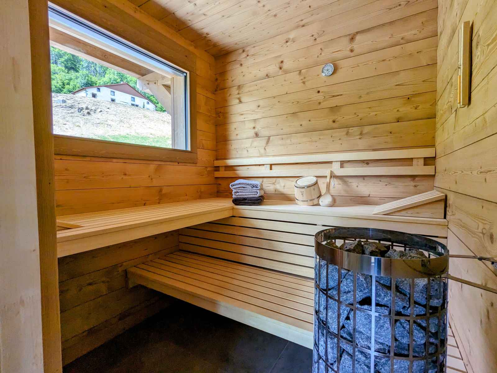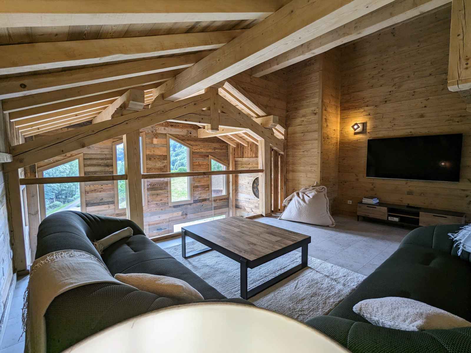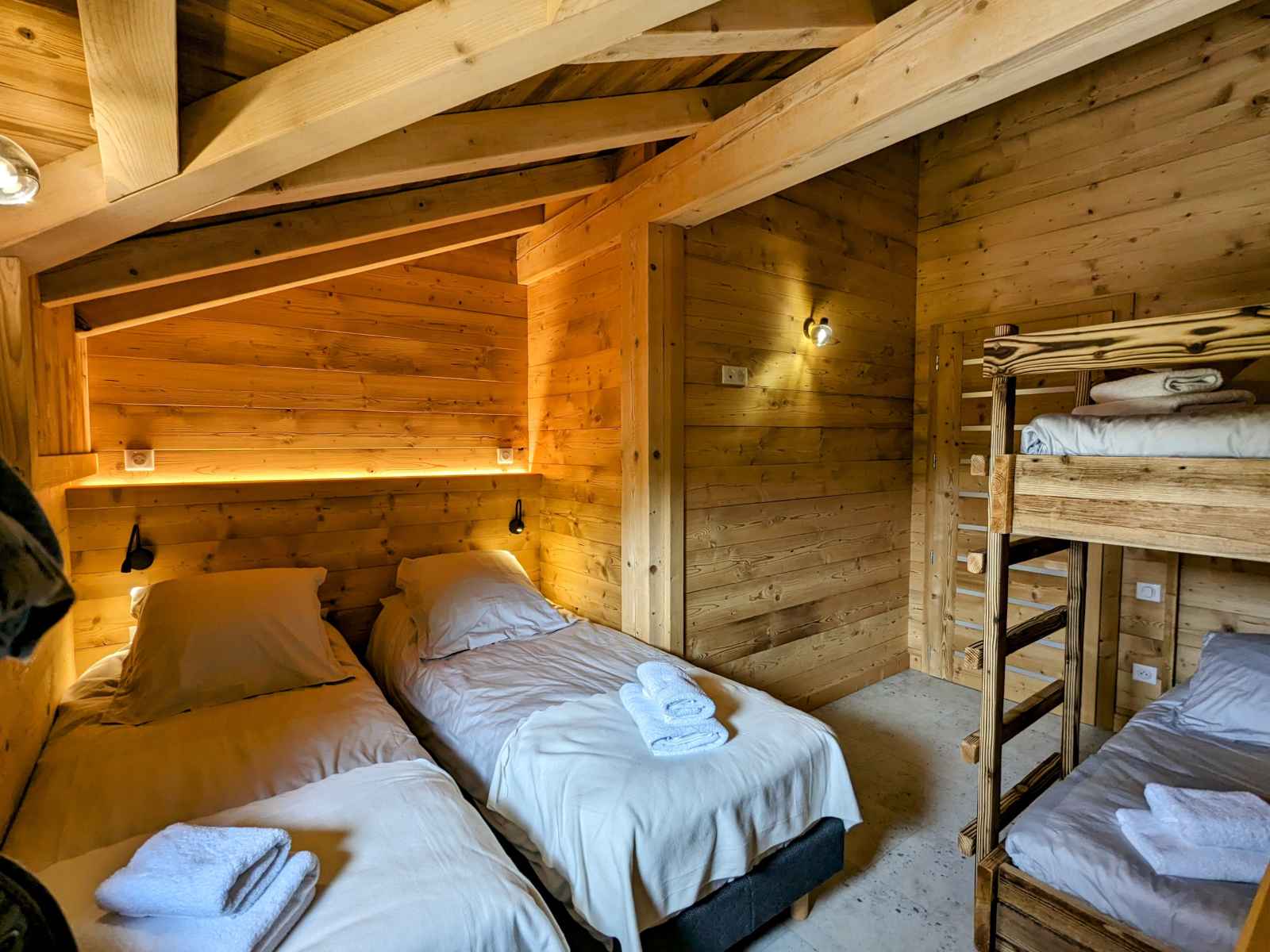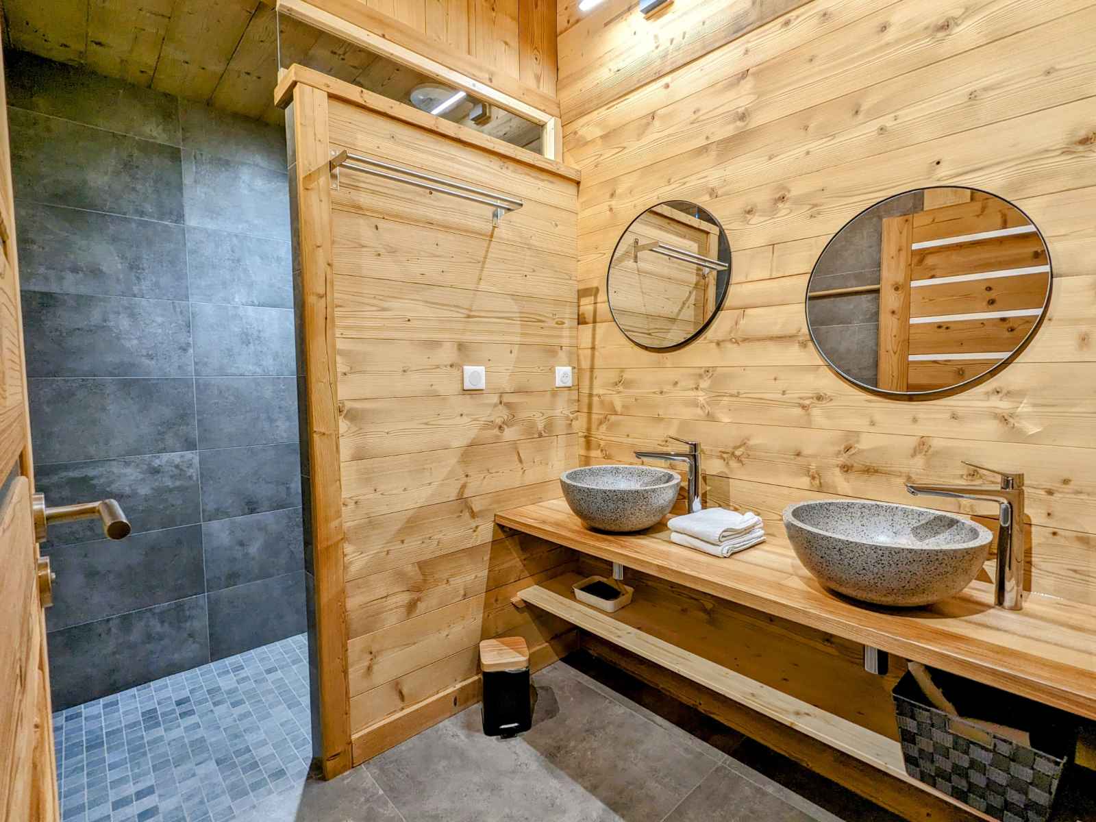de La Bresse et de ses commerces (1,5km). La ville de Gérardmer avec son domaine skiable et son lac se situe à 13km. Chalet de 390m² sur 3 niveaux. Il est composé au rez de chaussée : - Deux entrée : entrée principale et une entrée annexe avec stockage possible vélos et ski. - D'une pièce à vivre : Espace repas pouvant accueillir jusqu’à 16 personnes. Cuisine équipée : Réfrigérateur. Compartiment congélation. Plaque de cuisson induction 5 feux. Four. Four micro-ondes. Lave-vaisselle. Cafetière Senseo. Bouilloire. Grill pain. Salon avec, canapés et table basse. - D'une chambres Lit Queen Size 160/200 avec dressing de rangement - D'une chambres Lit Queen Size 160/200, disposant d'un accès direct à l'extérieur - Une Salle d'eau : Douche à l'italienne (90/170). Deux vasque. Sèche cheveux. - Une Salle d'eau avec sauna électrique : Douche à l'italienne (190/200). Deux vasque. Sèche cheveux. - Une terrasse bois avec spa 5 places, salon de jardin et salon de détente. Plancha à Gaz. - Une buanderie avec lave linge et sèche linge. - Deux WC indépendant Au premier étage : - Deux chambres avec Lit Queen Size 160/200, balcon partagé - D'une chambre Lit Queen Size 160/200 - Une chambre avec deux lits 80/200 jumelables en 160/200 - Une chambre avec deux lits 80/200 jumelables en 160/200 et 2 lits 80/200 superposé - Un salon en mezzanine avec canapés, table basse et TV connectée. - Deux Salle d'eau : Douche à l'italienne (90/190). Deux vasque. Sèche cheveux. - Deux WC indépendant Au dernier étage une salle de jeux pour enfants (mansardé bas de plafond) Au rez de jardin : - Une salle de 90m² a été conçue pour les fêtes avec des enceintes et des jeux de lumières, mais peut se transformer en salle de séminaire avec vidéo projecteur. Billard et Baby-foot. Réfrigérateur. - Une salle de sport avec tapis de course, vélo elliptique et vélo d'appartement. - Salle d'eau de la salle de sport, une vasque, douche à l'italienne (90/200) sèche cheveux.