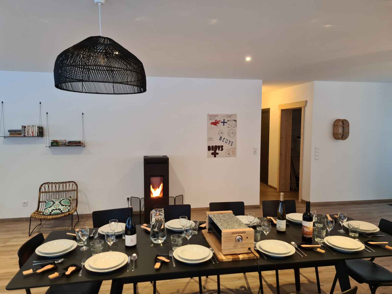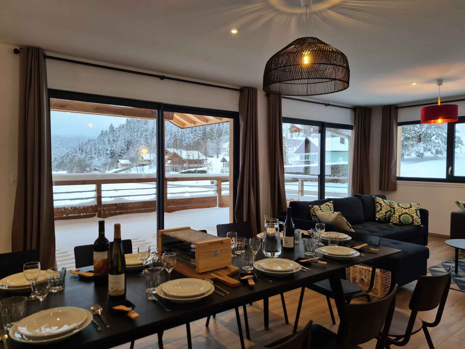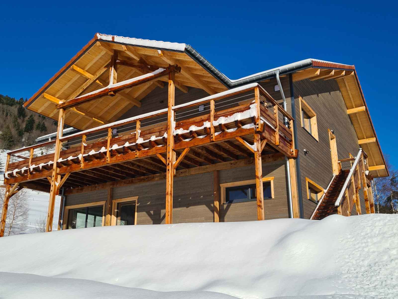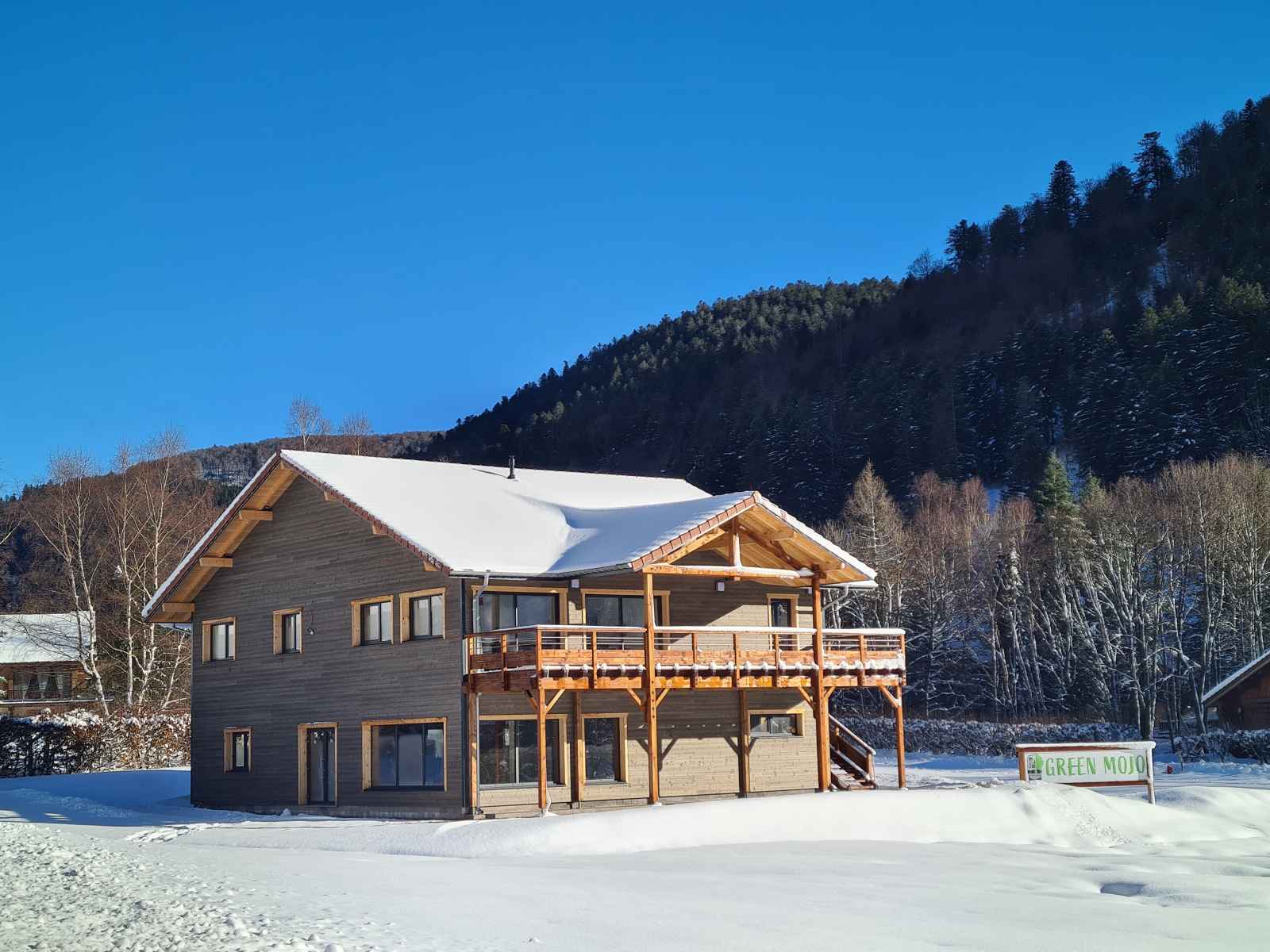 l’observation des cervidés en automne grâce aux lunettes à vision nocturne ou encore une initiation de 30 min à la trott électrique tout terrain (détails en description). Juste parfait pour profiter de la nature et aller découvrir les alentours ! Perché au 1er étage d’un joli chalet à ossature bois, décoré avec soin, ce gîte de 166 m² plus sa grande terrasse sur pilotis sont parfaits pour accueillir des couples ou familles à la recherche de nature et de convivialité!! Spacieuse, la pièce à vivre de 70 m² avec poêle à granulés ouvre sur une très grande terrasse couverte (35 m²) exposée plein sud et équipée d'une grande plancha. Profitez de la vue et ouvrez l’œil, vous apercevrez peut-être une biche ou un chevreuil qui passe par là ! ÉQUIPEMENTS : 5 chambres doubles aménagées Cuisine hyper équipée (Appareils à raclette, pierrade, etc.) Espace bar & Cave à vin Poêle à granulés (granulés fournis) Accès Wifi & Télévision Enceinte Bluetooth Petite bibliothèque Commodes, penderies et cintres Linge de lit & Linge de toilette 2 salles de bains avec douches avec sèche-cheveux 2 WC Vestiaire (espace pour les chaussures de ski) Buanderie avec Lave linge, Sèche linge, Étendoir à linge, Fer et table à repasser Matériel de puériculture (Lit parapluie, Chaise haute, baignoire pour bébé, Matelas à langer, Baby-cook). CÔTÉ SÉCURITÉ : Détecteur de fumée, détecteur de monoxyde de carbone, trousse de soins premiers secours, extincteur LES GROS PLUS GRATUITS : - Initiation trottinettes électriques tout-terrain (sur réservation) - Mise à disposition de raquettes à neige et luges (sur réservation) - Livraison de vos courses avant votre arrivée avec la "Camionnette des fermiers" - Lunette vision nocturne pour l’observation des cervidés FACILITÉS : Parking gratuit sur place Navette à 200 m pour les pistes en hiver Ménage compris avec nettoyage renforcé Langues parlées : Français, Anglais, Allemand, Portugais, Espagnol, Italien. CONDITIONS DE SÉJOUR : Arrivée entre 16h et 20h. Départ entre 9h et 11h. Ouvert toute l'année