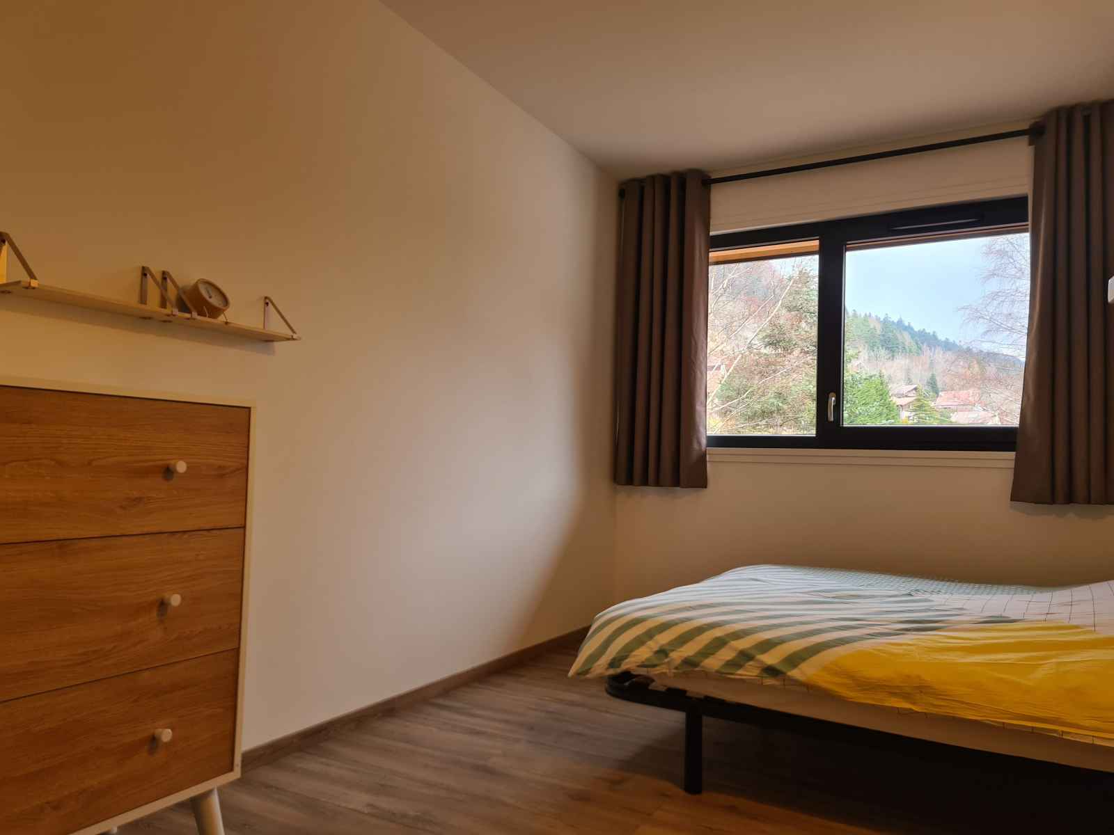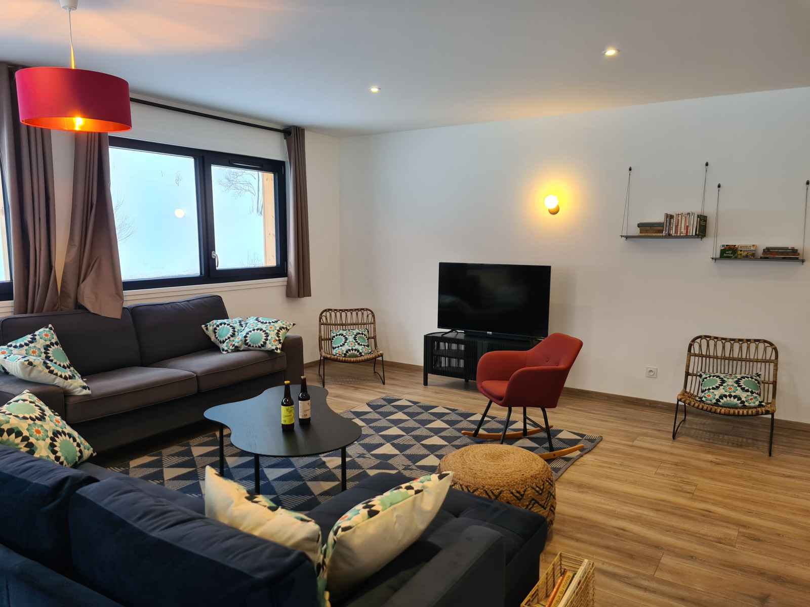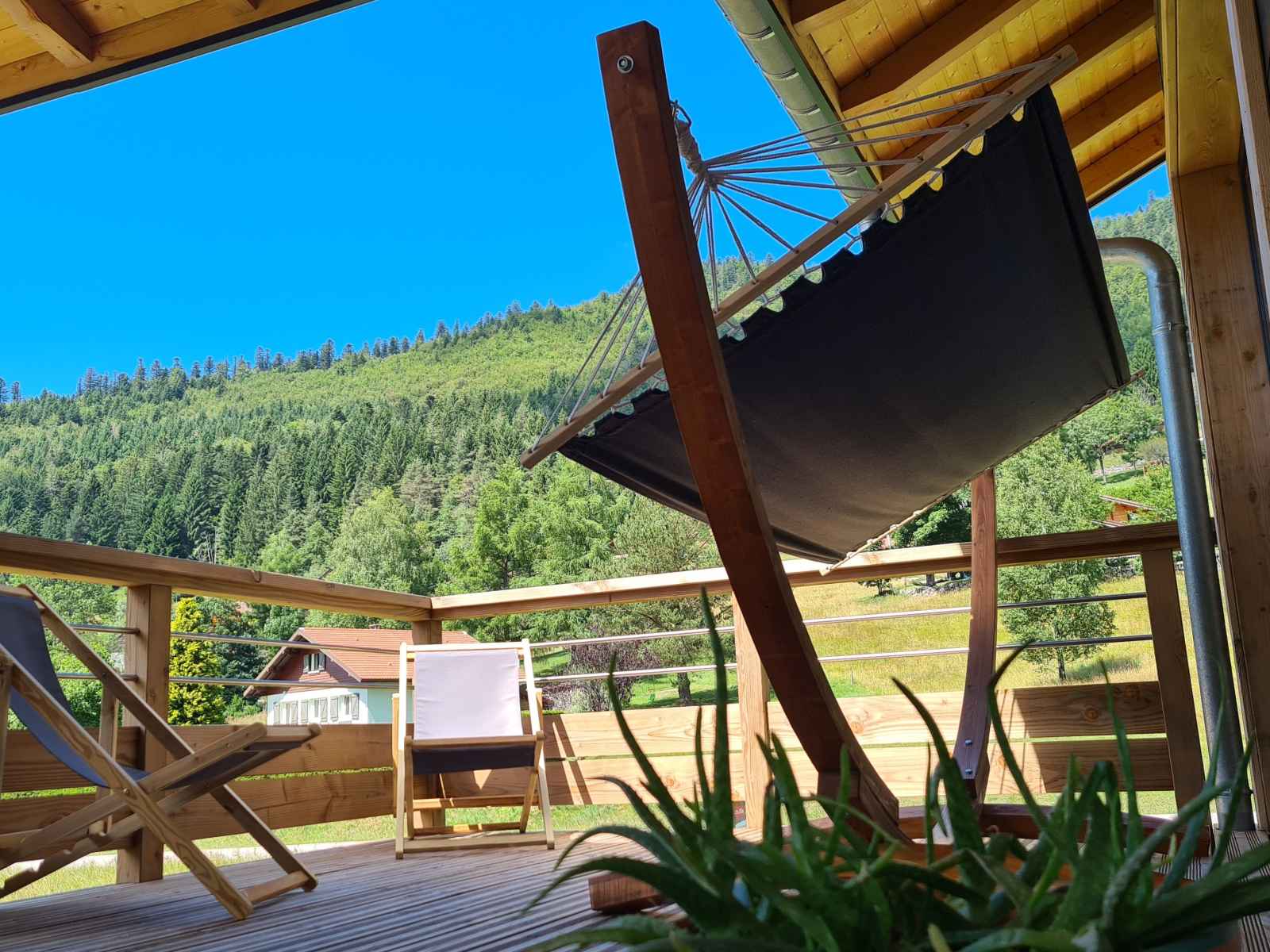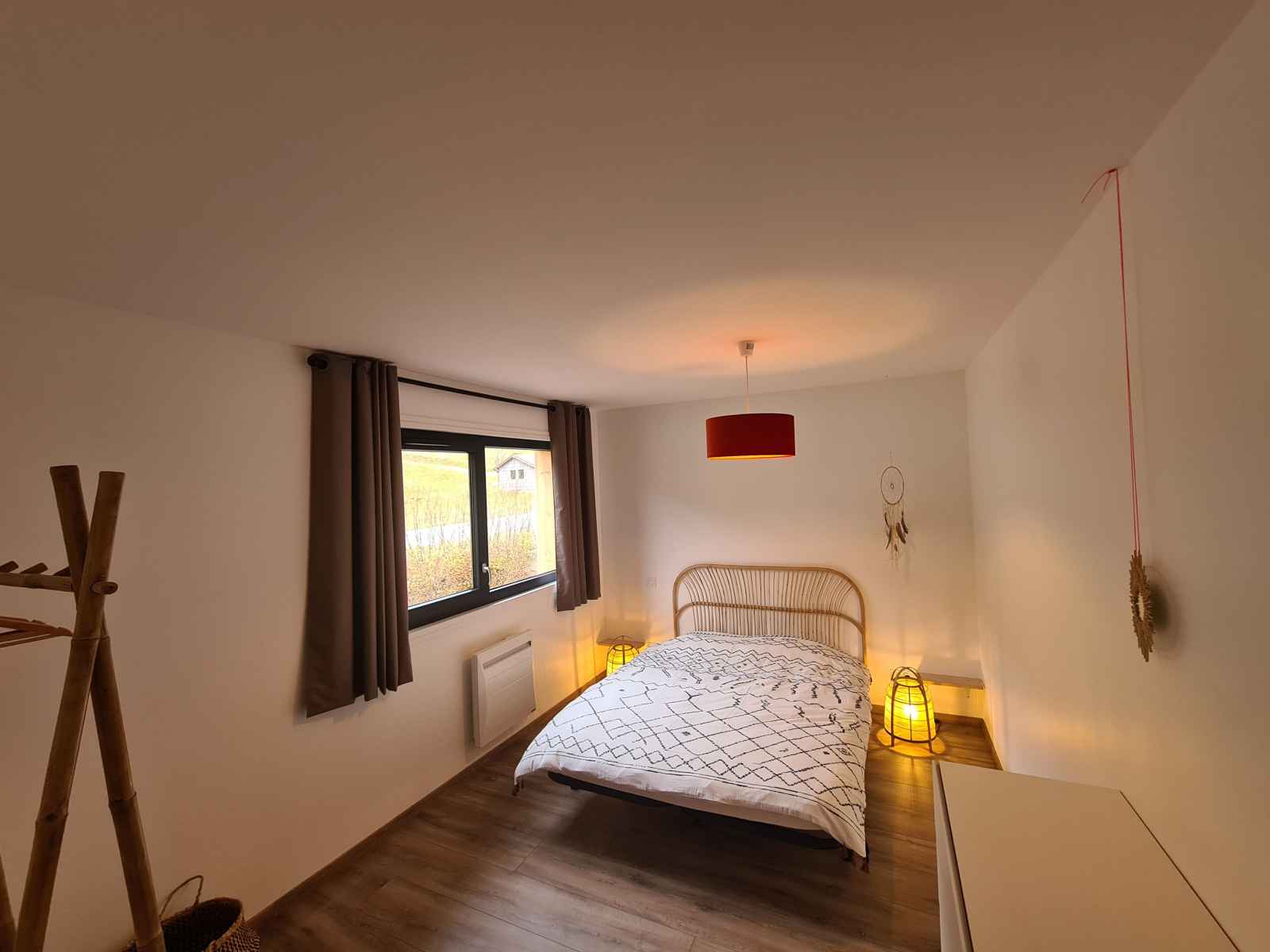 l’observation des cervidés en automne grâce aux lunettes à vision nocturne ou encore une initiation de 30 min à la trott électrique tout terrain (détails en description). Juste parfait pour profiter de la nature et aller découvrir les alentours ! Perché au 1er étage d’un joli chalet à ossature bois, décoré avec soin, ce gîte de 166 m² plus sa grande terrasse sur pilotis sont parfaits pour accueillir des couples ou familles à la recherche de nature et de convivialité!! Spacieuse, la pièce à vivre de 70 m² avec poêle à granulés ouvre sur une très grande terrasse couverte (35 m²) exposée plein sud et équipée d'une grande plancha. Profitez de la vue et ouvrez l’œil, vous apercevrez peut-être une biche ou un chevreuil qui passe par là ! ÉQUIPEMENTS : 5 chambres doubles aménagées Cuisine hyper équipée (Appareils à raclette, pierrade, etc.) Espace bar & Cave à vin Poêle à granulés (granulés fournis) Accès Wifi & Télévision Enceinte Bluetooth Petite bibliothèque Commodes, penderies et cintres Linge de lit & Linge de toilette 2 salles de bains avec douches avec sèche-cheveux 2 WC Vestiaire (espace pour les chaussures de ski) Buanderie avec Lave linge, Sèche linge, Étendoir à linge, Fer et table à repasser Matériel de puériculture (Lit parapluie, Chaise haute, baignoire pour bébé, Matelas à langer, Baby-cook). CÔTÉ SÉCURITÉ : Détecteur de fumée, détecteur de monoxyde de carbone, trousse de soins premiers secours, extincteur LES GROS PLUS GRATUITS : - Initiation trottinettes électriques tout-terrain (sur réservation) - Mise à disposition de raquettes à neige et luges (sur réservation) - Livraison de vos courses avant votre arrivée avec la "Camionnette des fermiers" - Lunette vision nocturne pour l’observation des cervidés FACILITÉS : Parking gratuit sur place Navette à 200 m pour les pistes en hiver Ménage compris avec nettoyage renforcé Langues parlées : Français, Anglais, Allemand, Portugais, Espagnol, Italien. CONDITIONS DE SÉJOUR : Arrivée entre 16h et 20h. Départ entre 9h et 11h. Ouvert toute l'année