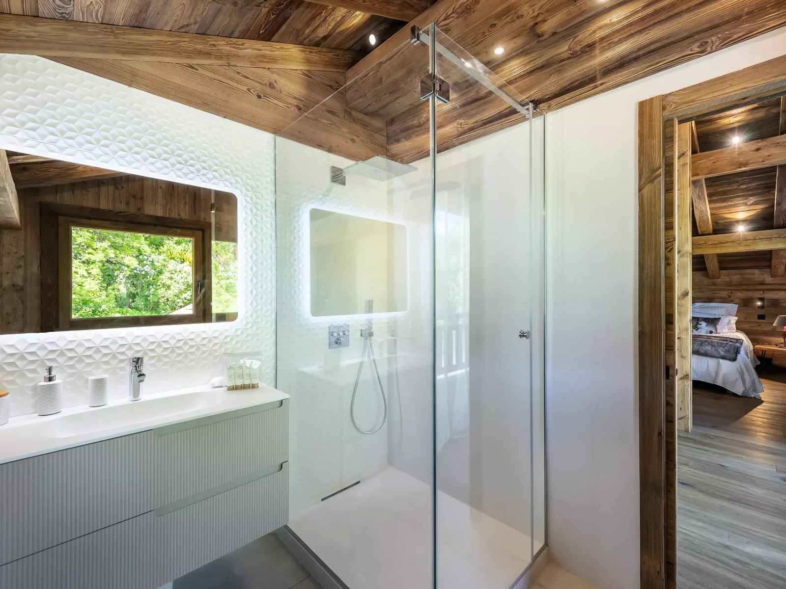 - Chambre double (lit 160), TV, salle de douche avec toilettes, bureau et terrasse