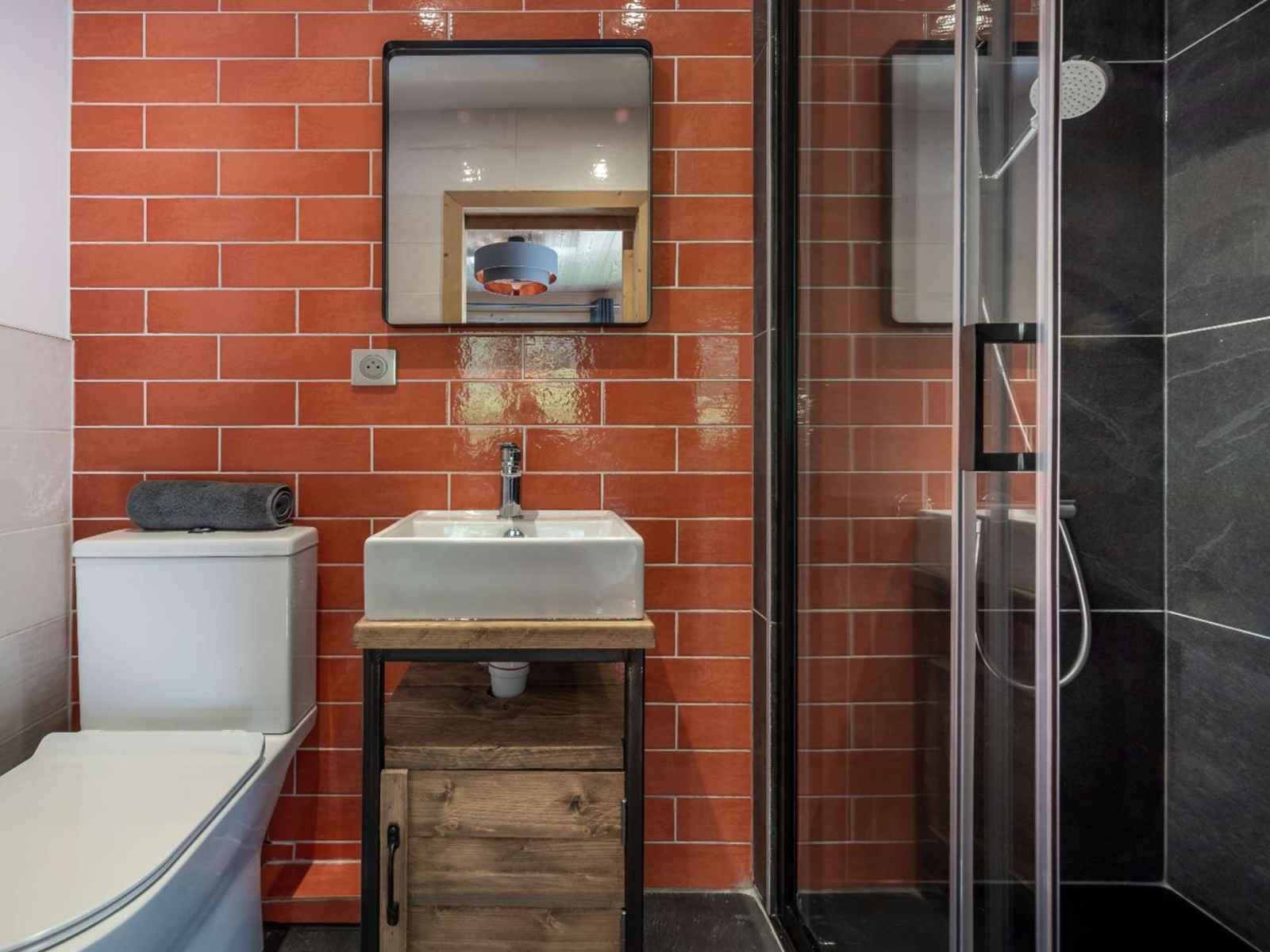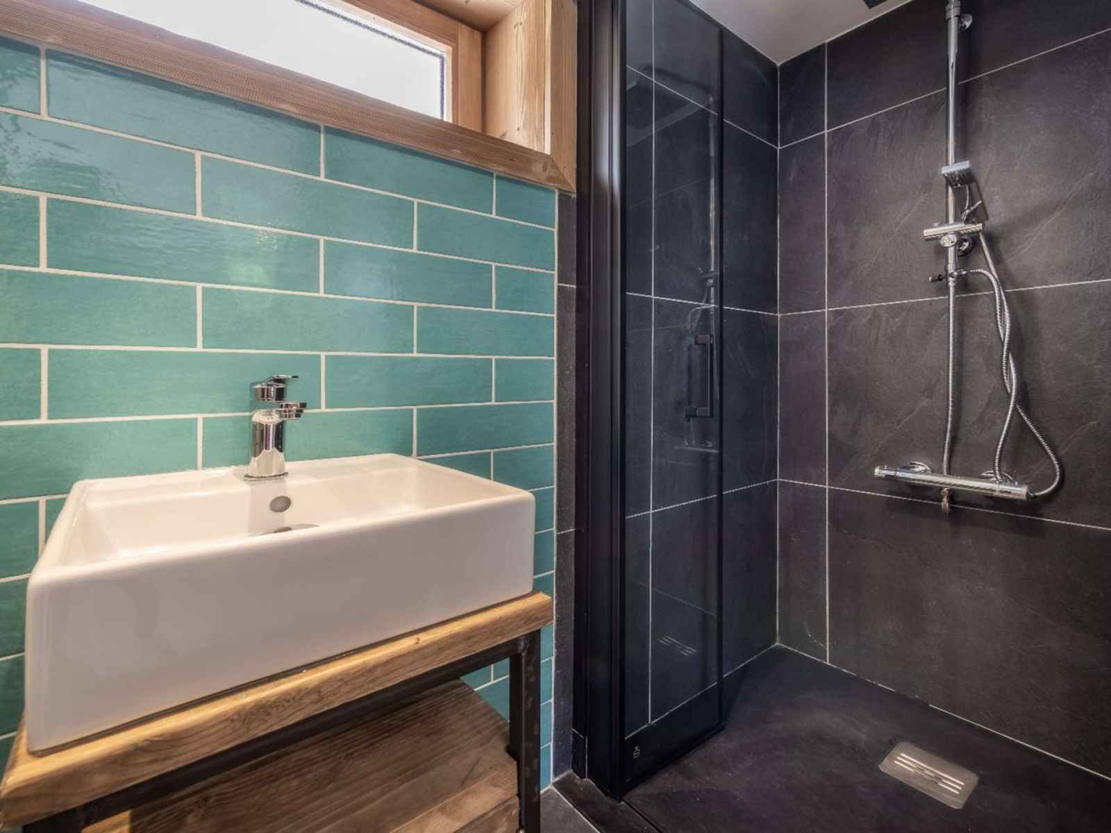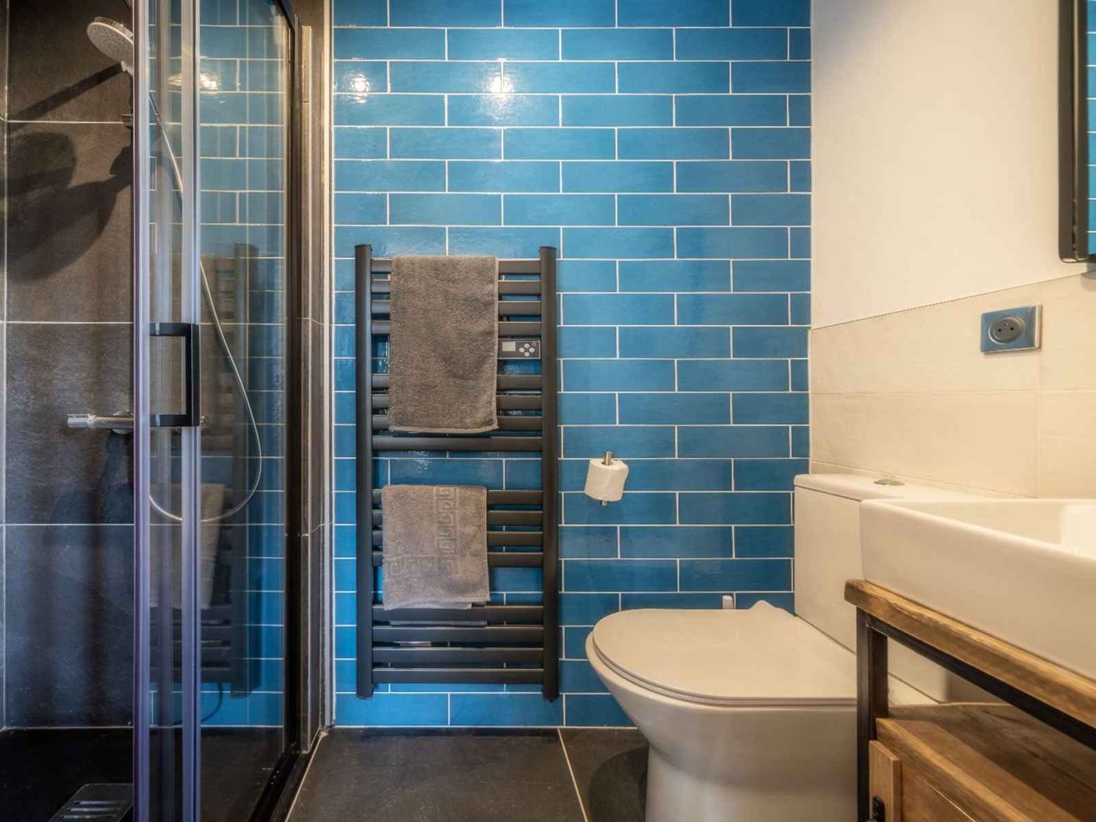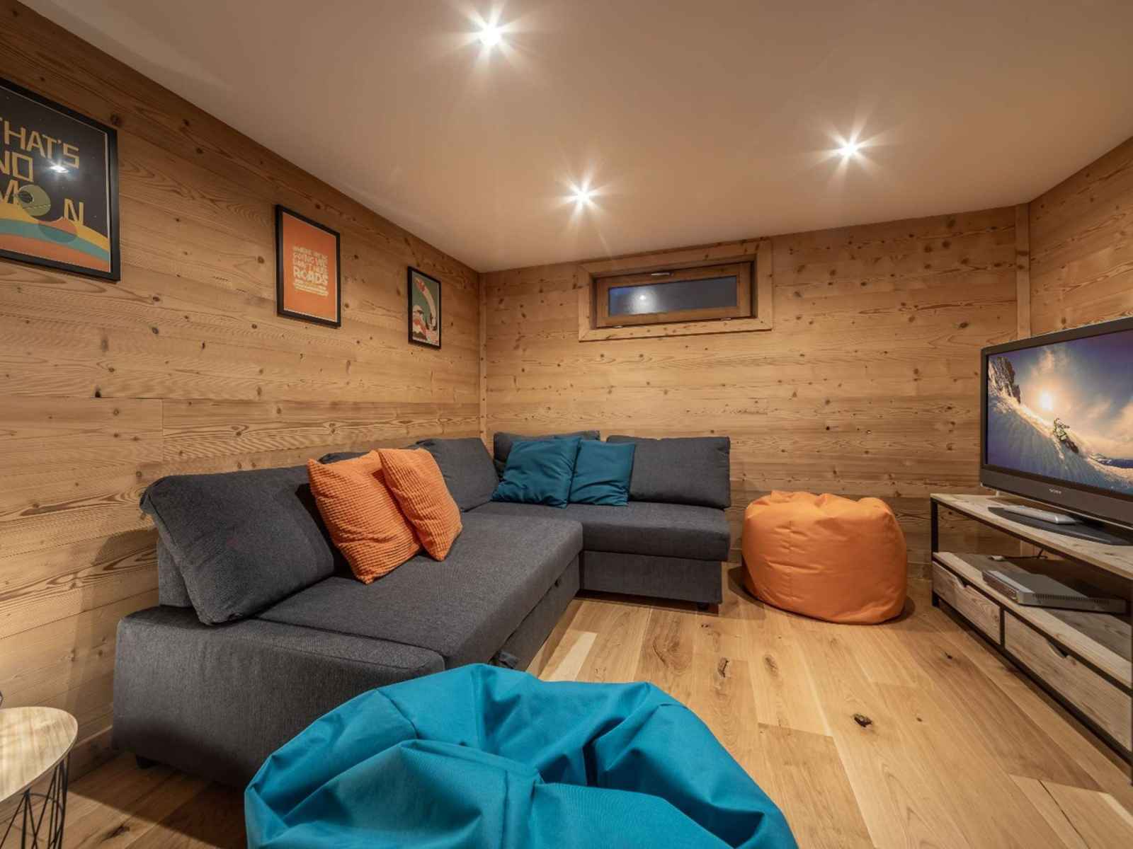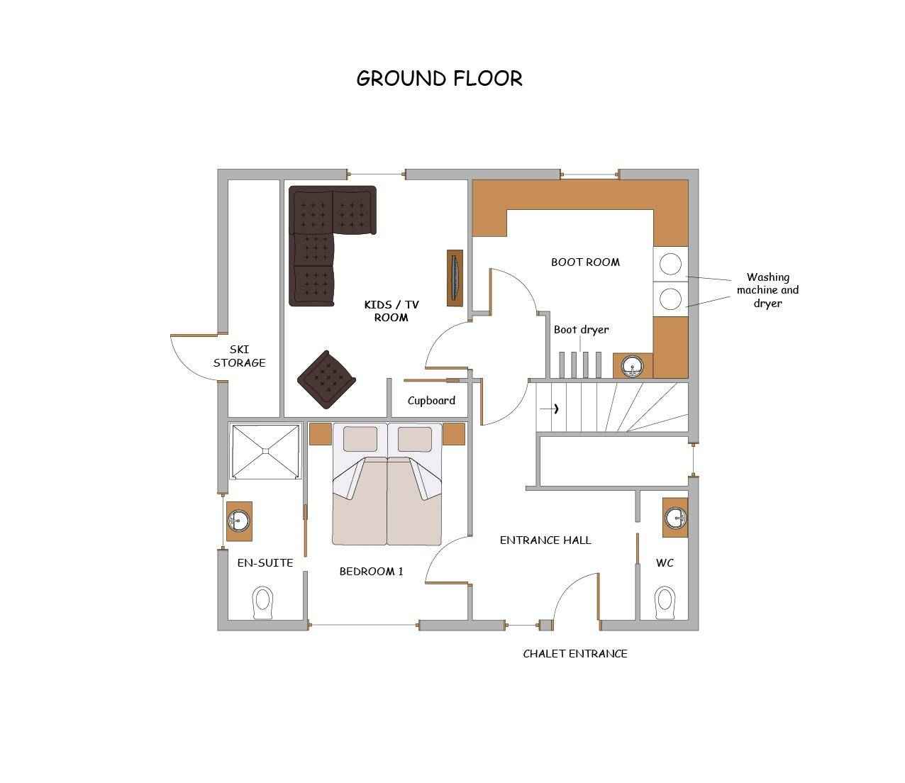 Entrée, WC, local à ski avec sèche-chaussures, lave-linge, sèche-linge, chambre 1 avec deux lits simples (ou un lit double), rangement, salle de douche attenante avec WC, salon télévision