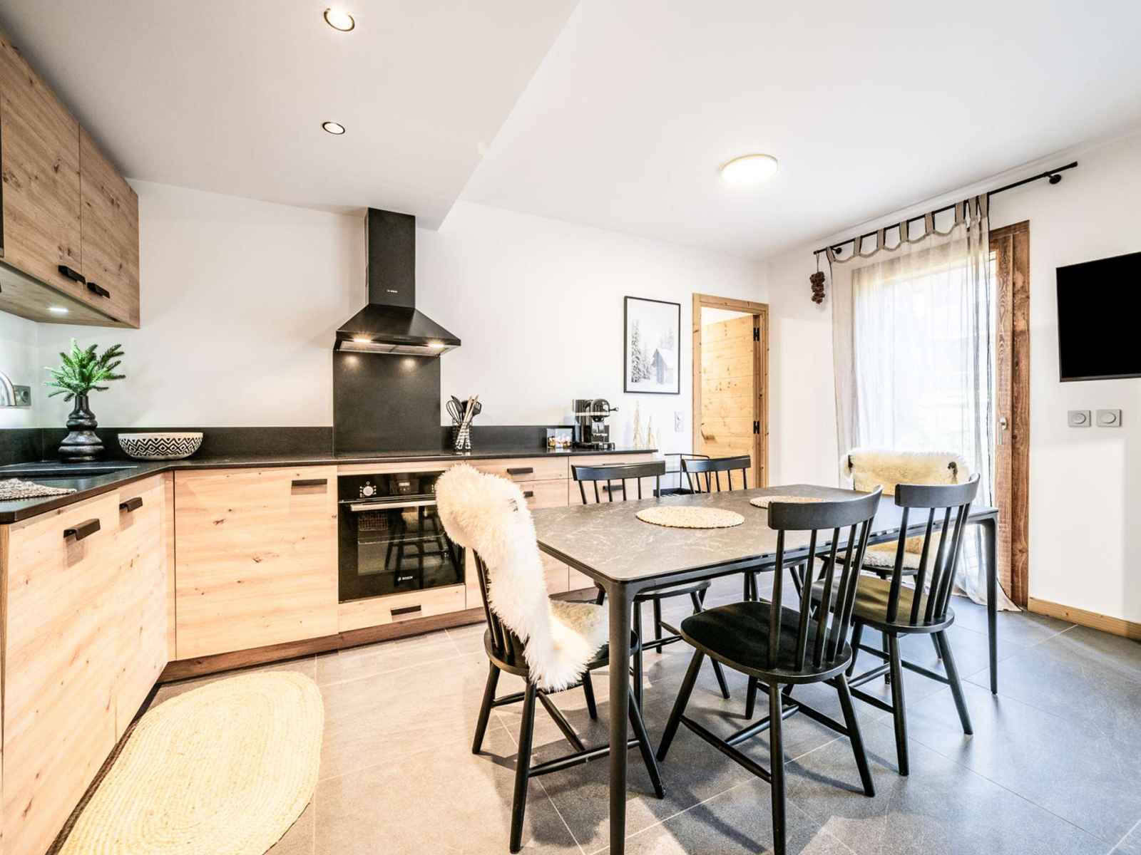 Parking 4 à 5 places, mazot pour ranger skis, VTT ou motos, TV dans chaque chambre, cable et satellite, netflix, wifi, poêle à granules, appareils (raclettes,fondue, pierrade), BBQ