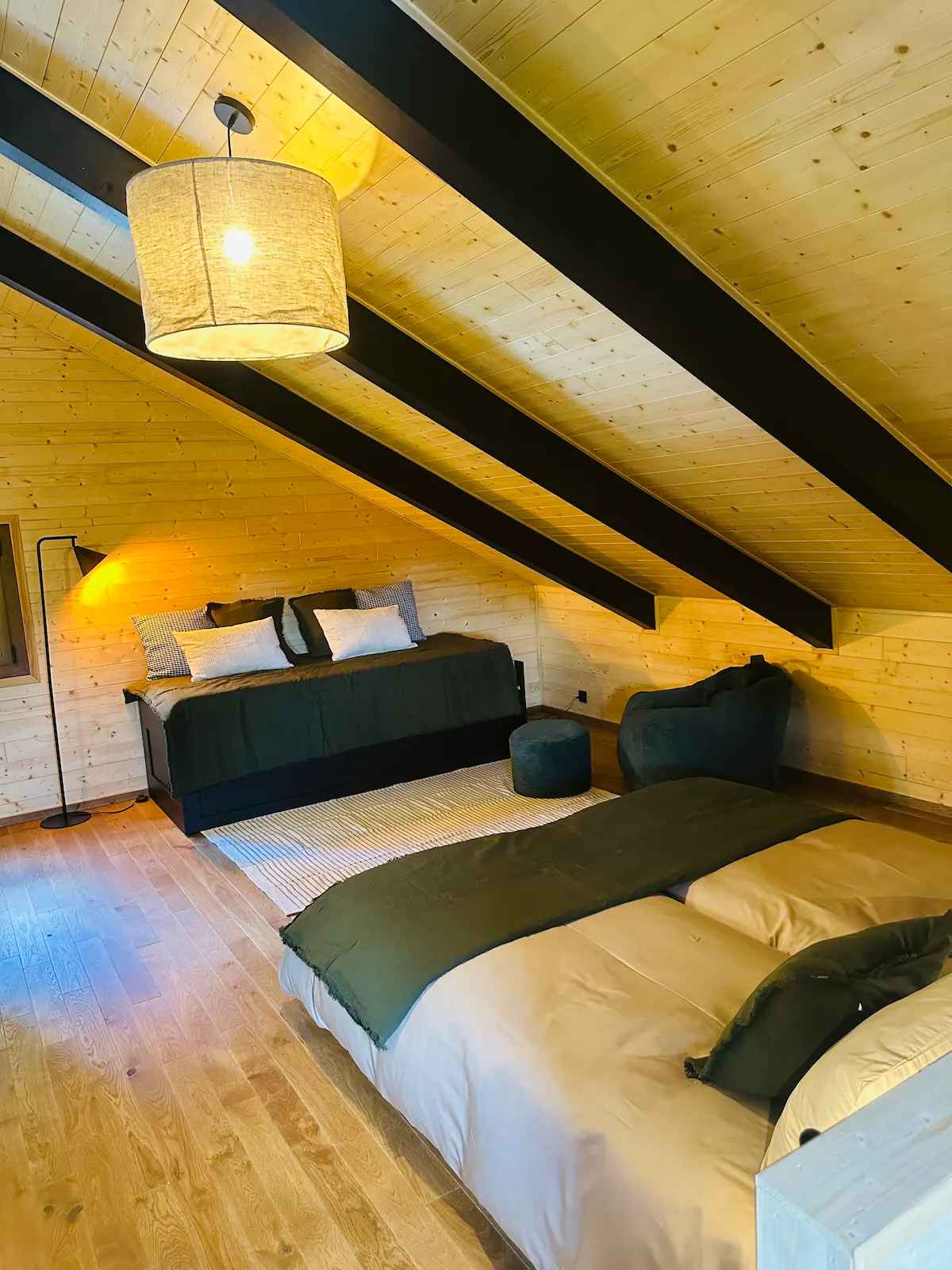 également la possibilité de visiter la ferme des propriétaires, où vous rencontrerez 4 alpagas, 2 ânesses, 5 moutons, 3 poneys Shetland, des poules, des canards, 2 chats, et des Border Collies. Ce havre de paix est à seulement 5 minutes de Gérardmer, célèbre pour son magnifique lac et son domaine skiable, offrant un mélange parfait de tranquillité et de proximité avec les attractions locales. Les chiens sont les bienvenus avec un supplément de 25 € par séjour, et nous fournissons serviette, plaid, gamelles, sacs à déjection et jouets. Chalet sur 2 niveaux. Il est composé au rez-de-chaussée : – d'une pièce à vivre avec cheminée à foyer ouvert : Espace repas pouvant accueillir jusqu’à 6 personnes. Cuisine équipée : Réfrigérateur. Compartiment congélation Plaque de cuisson Induction 3 feux. Four. Lave-vaisselle. Cafetière Nespresso et cafetière à piston. Gaufrier. Appareil à raclette et fondue. Bouilloire et grille-pain. Salon avec TV connectée, canapé, fauteuil et table basse. Enceinte connectée. Console Wii U et jeux de société. – D'une chambre avec un lit 160/200. – d'une salle d'eau avec WC : Douche 80 x 150. Une vasque. Sèche-serviette électrique. Sèche-cheveux. Au premier étage : – d'une mezzanine (mansarde) avec : Un espace nuit avec 2 lits 80/200 (possibilité de les assembler pour faire un lit 160/200). Ainsi qu'un lit gigogne avec deux matelas 80/200. Un coin laverie avec lave-linge et sèche-linge. Meuble vasque. Le logement est alimenté en eau par un puits. Les propriétaires fournissent des bonbonnes d'eau potable de 5 L pour la consommation. Eau du puits non buvable. Terrain privatif non clôturé avec étang. Une table de jardin avec banc ainsi qu'un barbecue sont à disposition. Hamac double. Badminton, Molkky. Tarif tout compris : Linge de maison inclus, draps compris et lits faits à l'arrivée, linge de toilette compris. Ménage de fin de séjour inclus. Bois fournis pour la cheminée. Parking privatif devant le logement. Petit-déjeuner possible si demandé en amont (9€/par personne par jour : viennoiseries et pain frais, jus de pomme fermier maison, yaourt local, oeufs de la ferme, lait et fruits de saison, beurre, fromage, jambon). Un chien maximum admis avec un supplément de 30 € pour le séjour : Serviette, plaid, gamelles, sac à déjection, jeux mis à disposition. Autres animaux non admis. Logement non fumeur.
