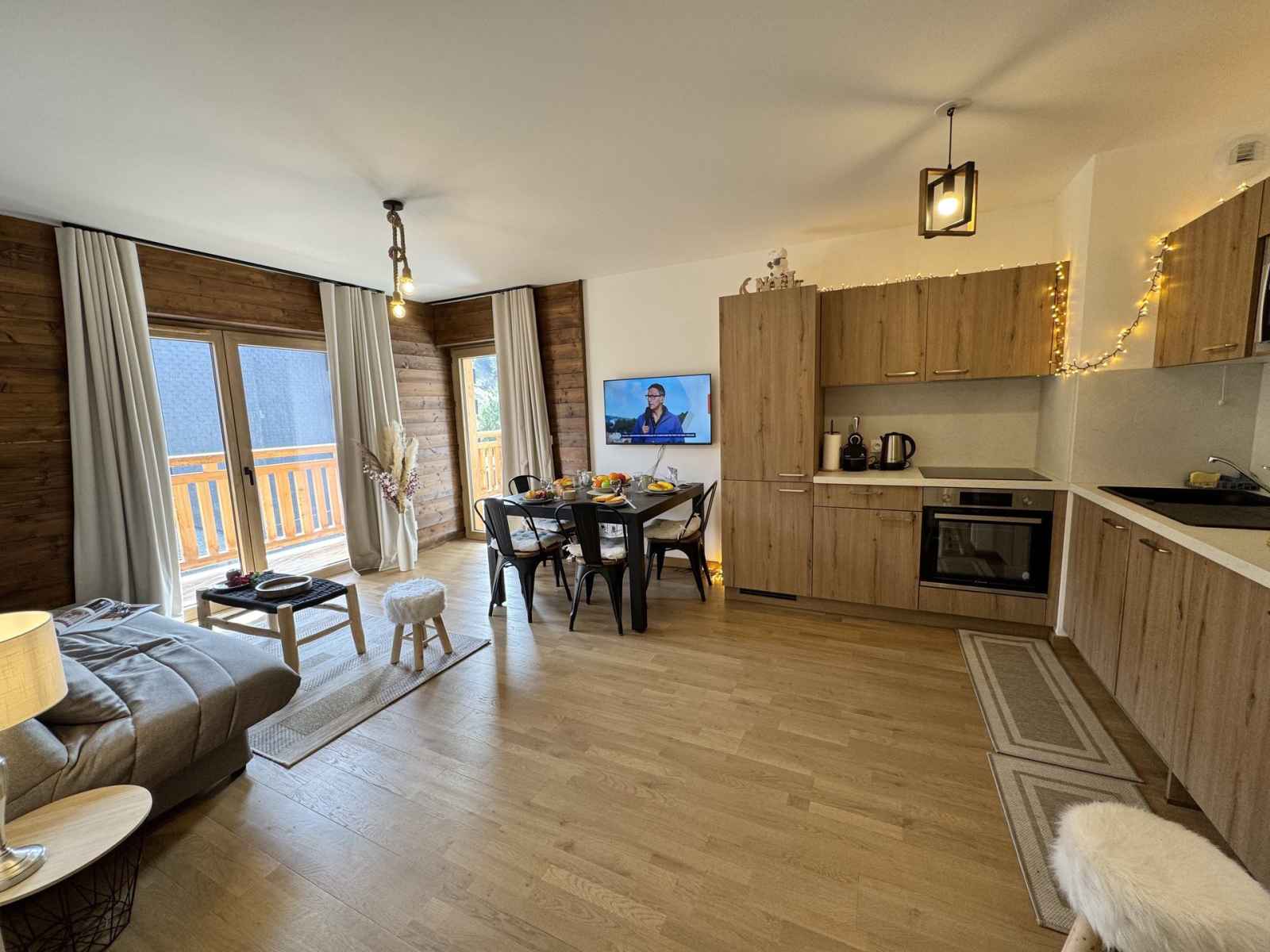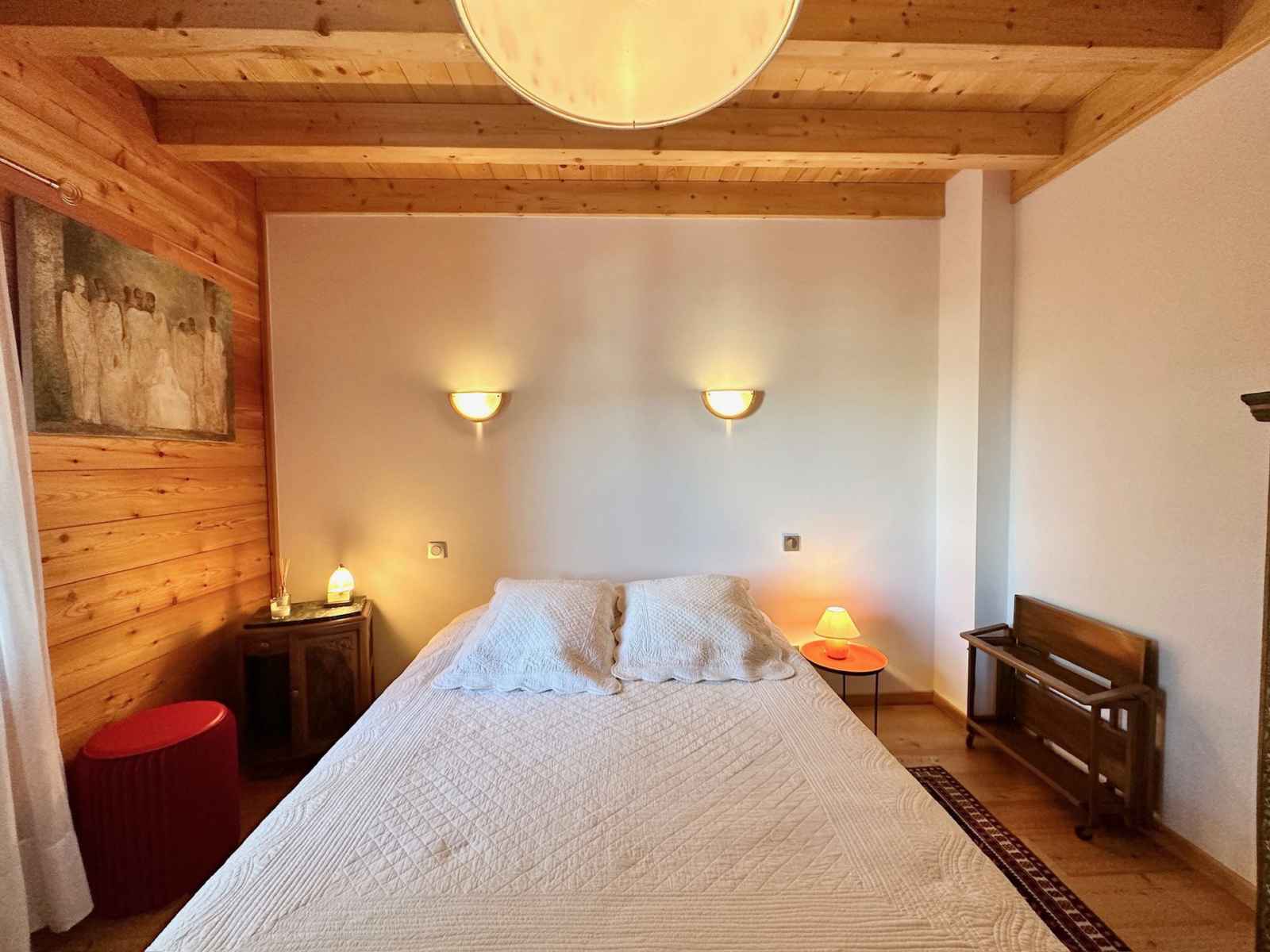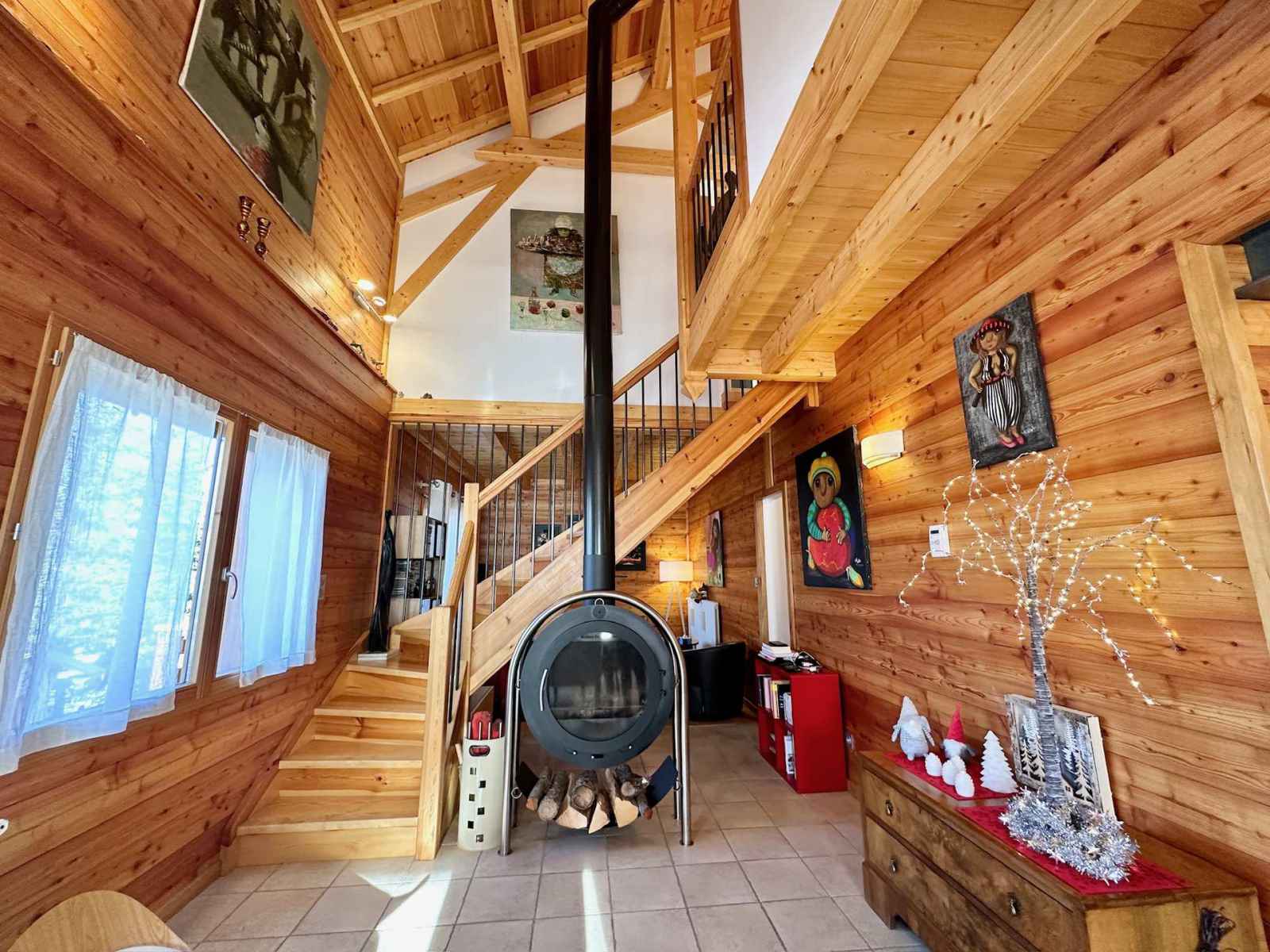 les pistes. Sur la gauche, une salle dédiée aux moments de convivialité avec une kitchenette équipée d'une cafetière a l'italienne, un bar, un baby-foot, un sauna et une salle de sport pour des instants de détente après le ski. À l’étage principal, une vaste pièce de vie baignée de lumière avec une cuisine ouverte équipée et une cheminée centrale idéale pour des soirées chaleureuses. Une première chambre double avec une grande salle de douche attenante complète ce niveau. À l’étage supérieur deux grandes chambres doubles, une chambre pour enfants avec deux lits simples gigogne et un lit bébé ainsi qu'une salle d'eau et une salle de bain offrent tout le confort nécessaire pour accueillir toute la famille. Pour la sécurité des enfants l'escalier est équipé d'une barrière amovible assurant leur tranquillité et celle des parents. Ce chalet allie charme authentique et équipements modernes pour des vacances inoubliables en famille ou entre amis. Profitez du sauna pour un moment de relaxation, d’une salle de sport pour les plus actifs et d’une ambiance chaleureuse dans un cadre enchanteur. Contactez-nous dès maintenant pour organiser votre séjour et vivre des instants magiques au cœur de la montagne! Le chalet n'est pas adapté aux PMR. Le chalet dispose d’un ski room et de deux places de parking privées.