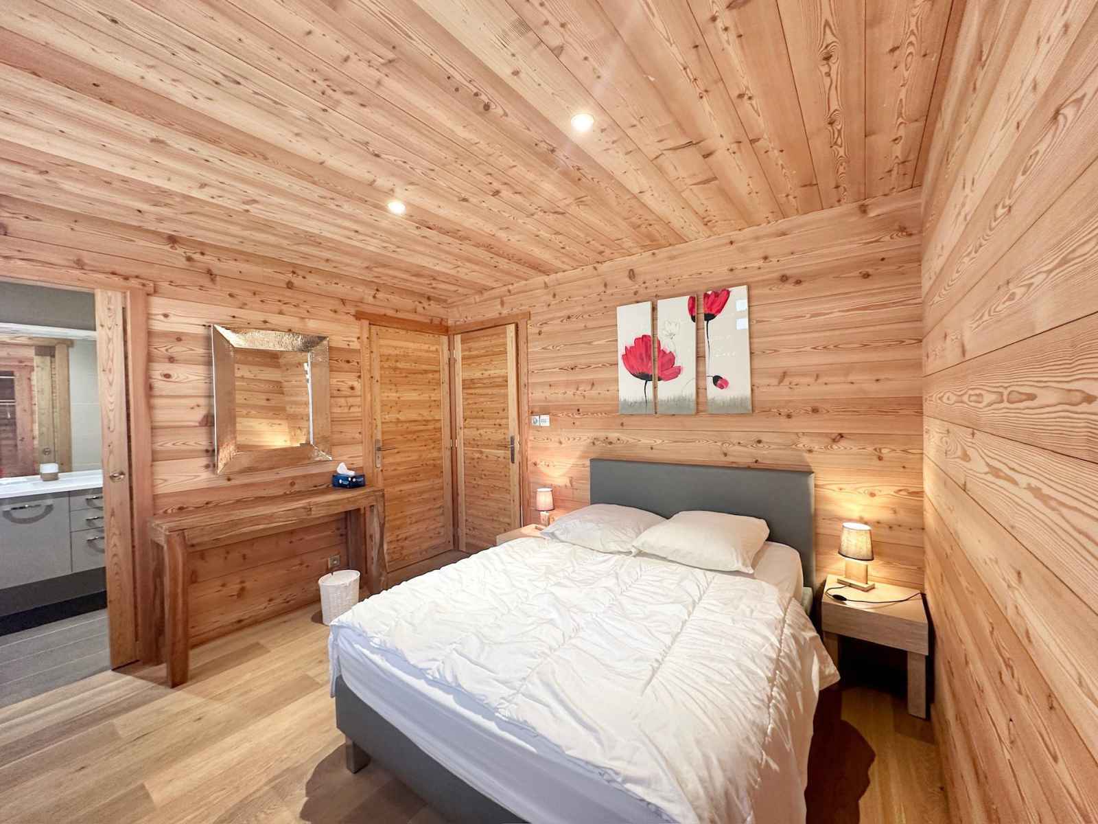 séjour sans souci et parfaitement confortable. Ce chalet dispose de deux places de garage et d'une grande entrée équipée de sèche-chaussures et d'un WC. À ce même niveau, vous trouverez une première chambre double avec une salle d'eau, des WC séparés et un grand dressing. Au premier étage, une chambre double, une salle TV pouvant se transformer en une seconde chambre double, une salle d'eau et des WC vous attendent. Vous serez séduit par le grand séjour avec salle à manger et cuisine ouverte, offrant une hauteur sous plafond impressionnante et une vue imprenable sur les montagnes. À l'étage inférieur (-1), le chalet propose une chambre double avec salle d'eau, WC et dressing, ainsi qu'une chambre double avec lit superposé, salle d'eau, dressing et WC. La cuisine, parfaitement équipée, comprend tout le nécessaire pour des repas gourmands : fondue, cocotte minute, pierrade, raclette, four micro-ondes, four traditionnel, réfrigérateur, congélateur, bouilloire, machine à café Nespresso, grille-pain, et lave-vaisselle. Un WC et une salle d'eau séparée ajoutent encore au confort de ce chalet. Pour des moments de détente absolue, profitez du spa et du sauna intégrés. Ce chalet réunit tous les atouts pour un séjour inoubliable dans un cadre enchanteur. De plus, notre agence vous propose la réservation de matériel de ski et de forfaits pour faciliter votre séjour.
