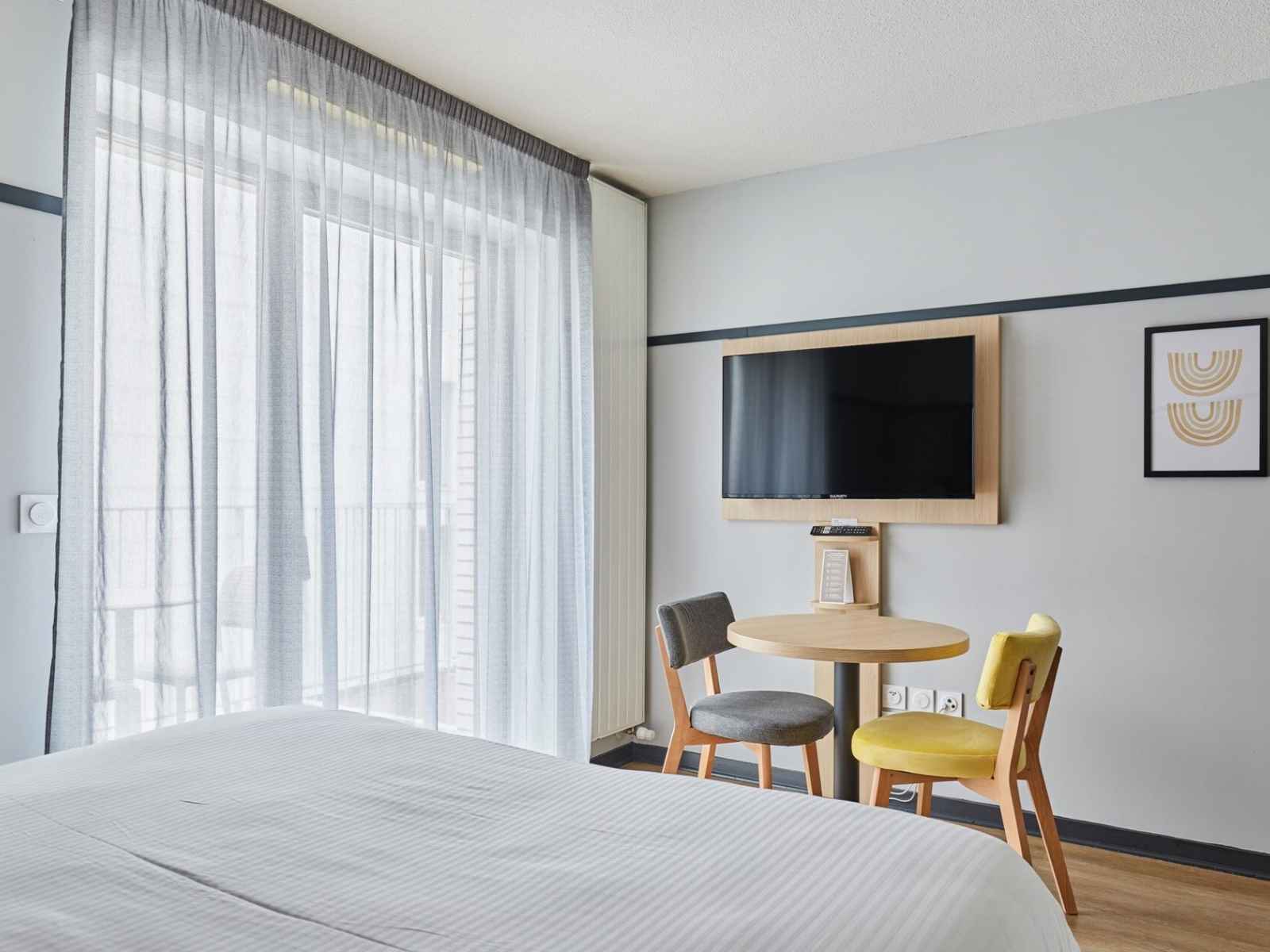 Franchement niveau emplacement on était bien placer. Le soucis des chambres... on a du à peine arriver changer de chambres car il y avait des coupures de courants. La deuxième n'étant pas la même niveau fenêtre et que il n'y a pas de clim dans l'établissement à part dans leur accueil, c'était intenable. Nous avions des ventilateurs mais ça ne rafraichissait rien du tout surtout la nuit à Lyon.