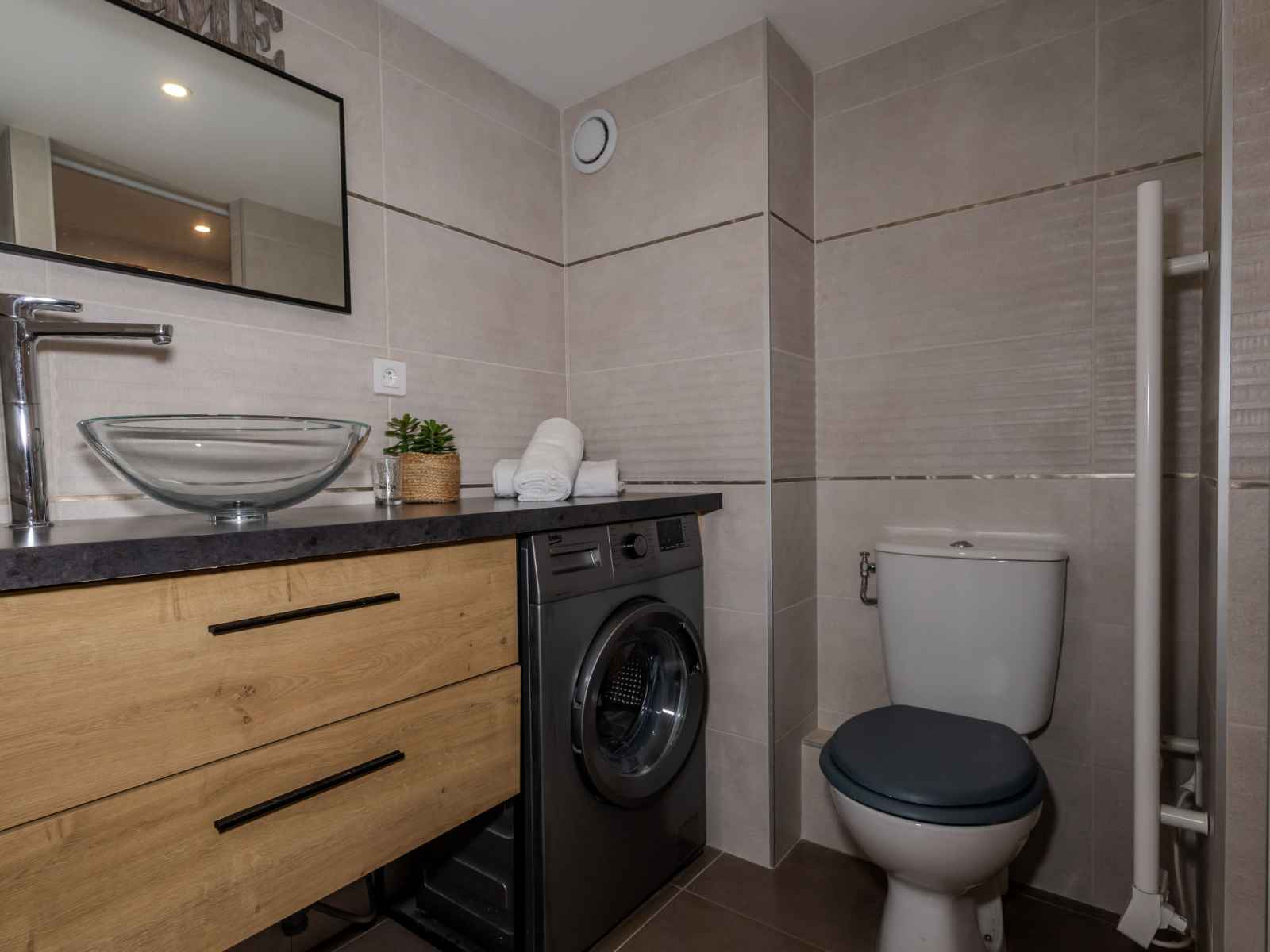 "j6 174 l'esquinade", apt 2 pièces 28 m2 sur 2 niveaux, au rez-de-chaussée. mansardé, complètement rénové en 2024, aménagement agréable et moderne: séjour/salle à manger mansardé - 330 cm avec 1 divan-lit double (140 cm, longueur 190 cm), tv (écran plat). sortie sur la terrasse. 1 chambre mansardée - 330 cm avec 1 grand-lit (140 cm,