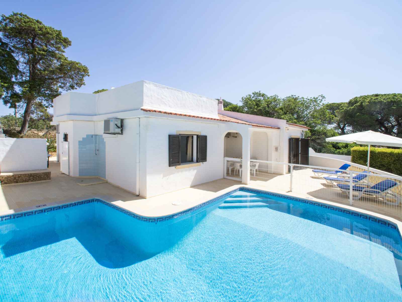 Belle petite résidence "encosta da orada", année de construction 2007. dans le quartier d'albufeira, situation surélevée sur une colline, à 1.1 km de la mer. en commun: jardin sur plusieurs niveaux entretenu, piscine (profondeur 100 - 200 cm, disponibilité saisonnière: 01.jan. - 31.dec.). wc dans l'espace piscine, bassin pour les enfants.