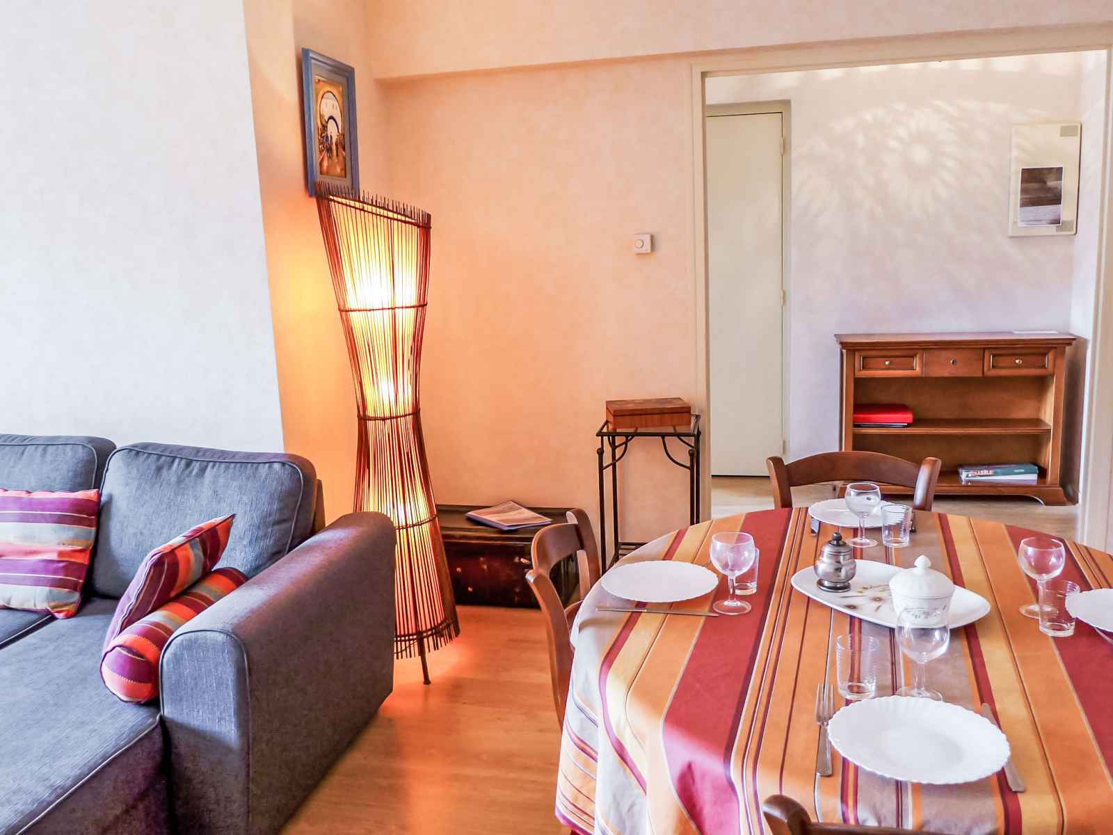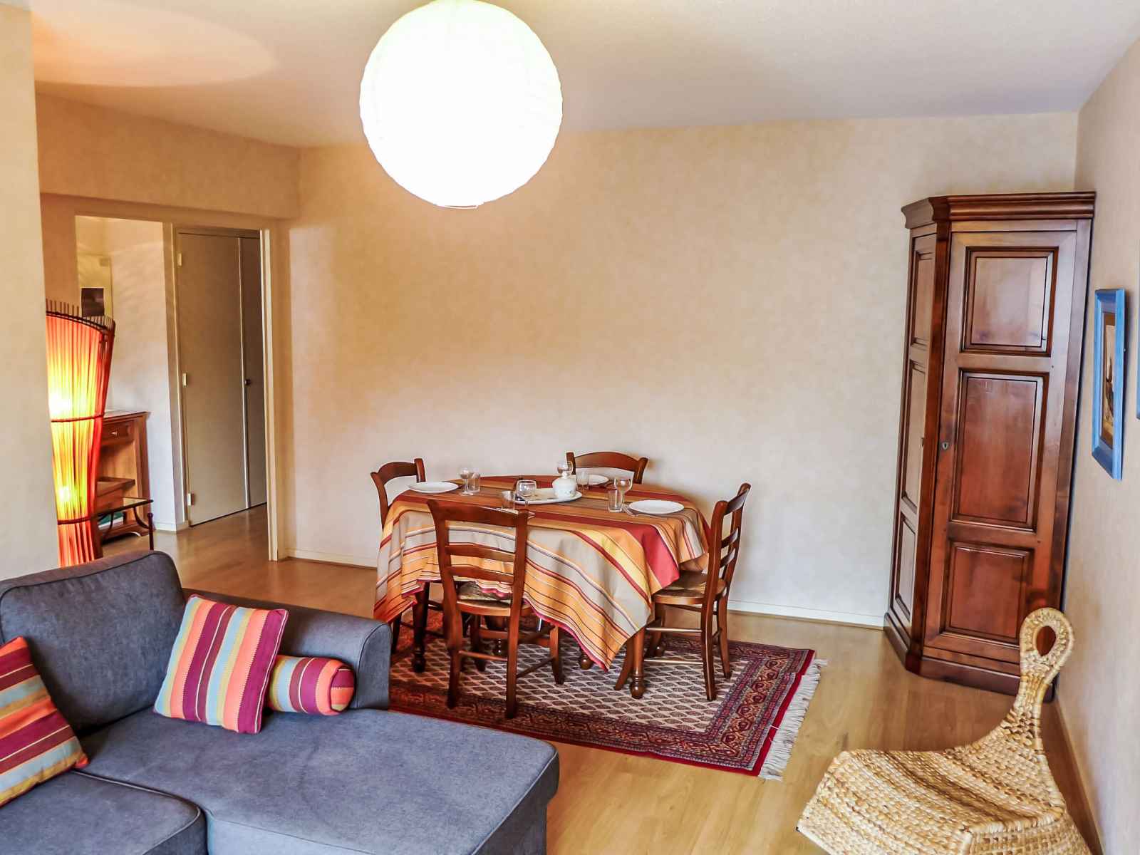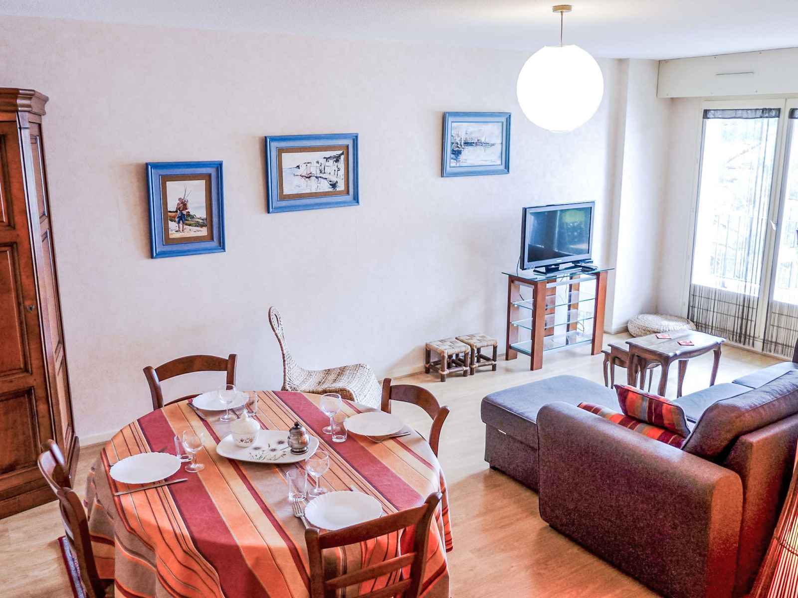 Apt 2 pièces 60 m2 au 2ème étage. spacieux, aménagement confortable: séjour/salle à manger avec 1 divan-lit double (140 cm, longueur 190 cm), tv et écran plat. sortie sur le balcon. 1 chambre avec 1 grand-lit (140 cm, longueur 190 cm). cuisine (four, lave-vaisselle, 2 plaques vitrocéramiques, micro-ondes, cafetière électrique) avec bar.