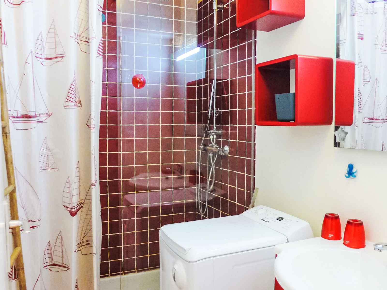 Sortie sur le balcon. Douche, WC séparé. Chauffage au gaz. Balcon. Mobilier de balcon, place pour s'asseoir. A disposition: lave-linge, fer à repasser. Internet (Connexion WIFI, en sus). Place de parking No 90. Veuillez noter: logement non-fumeur. Détecteur de fumée. 6402400022851