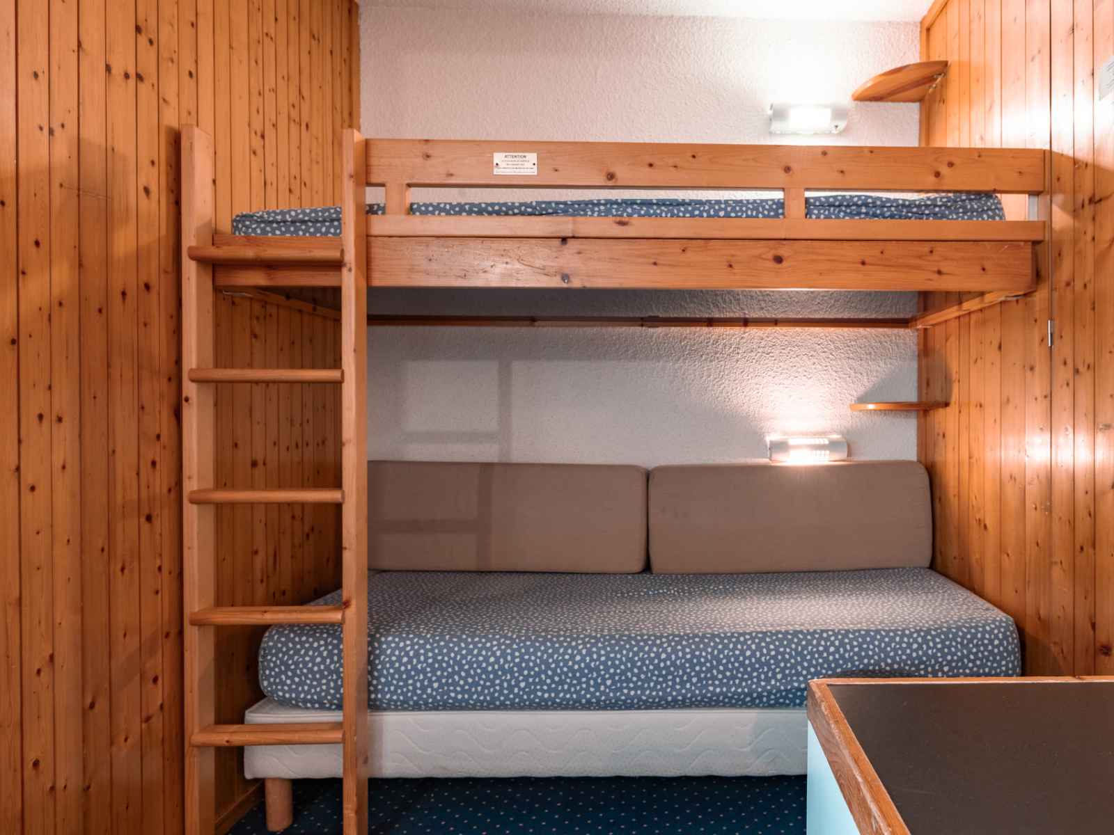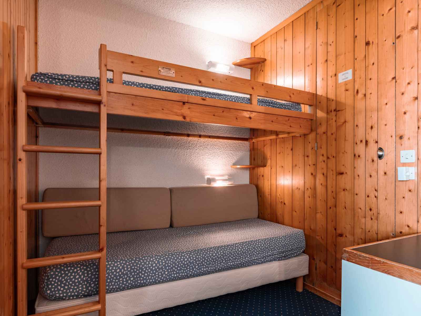 ascenseur. Les couchages Dans le séjour se trouve 1 canapé-lit gigogne (2x1p). Une chambre avec 2 lits simples. Vous trouverez également un coin montagne avec un ensemble de 2 lits superposés. Merci de noter que le couchage en hauteur ne convient pas à des enfants de moins de 6 ans. Les sanitaires A votre disposition, une salle de bains avec baignoire et un WC séparé. La cuisine ouverte sur le séjour Elle est entièrement équipée d’un four, d'un réfrigérateur, d'un lave-vaisselle, d'un grille-pain, d'une bouilloire, d'une cafetière et d'un micro-onde. Les équipements complémentaires Une télévision dans le séjour. L’accès Wifi Un lave-linge. Informations supplémentaires Nos amis les animaux sont acceptés avec supplément. Possibilité de louer une place dans le parking de la résidence. Appartement équipé de couvertures. Linge de lit et de toilette en supplément. Appartement non fumeur.