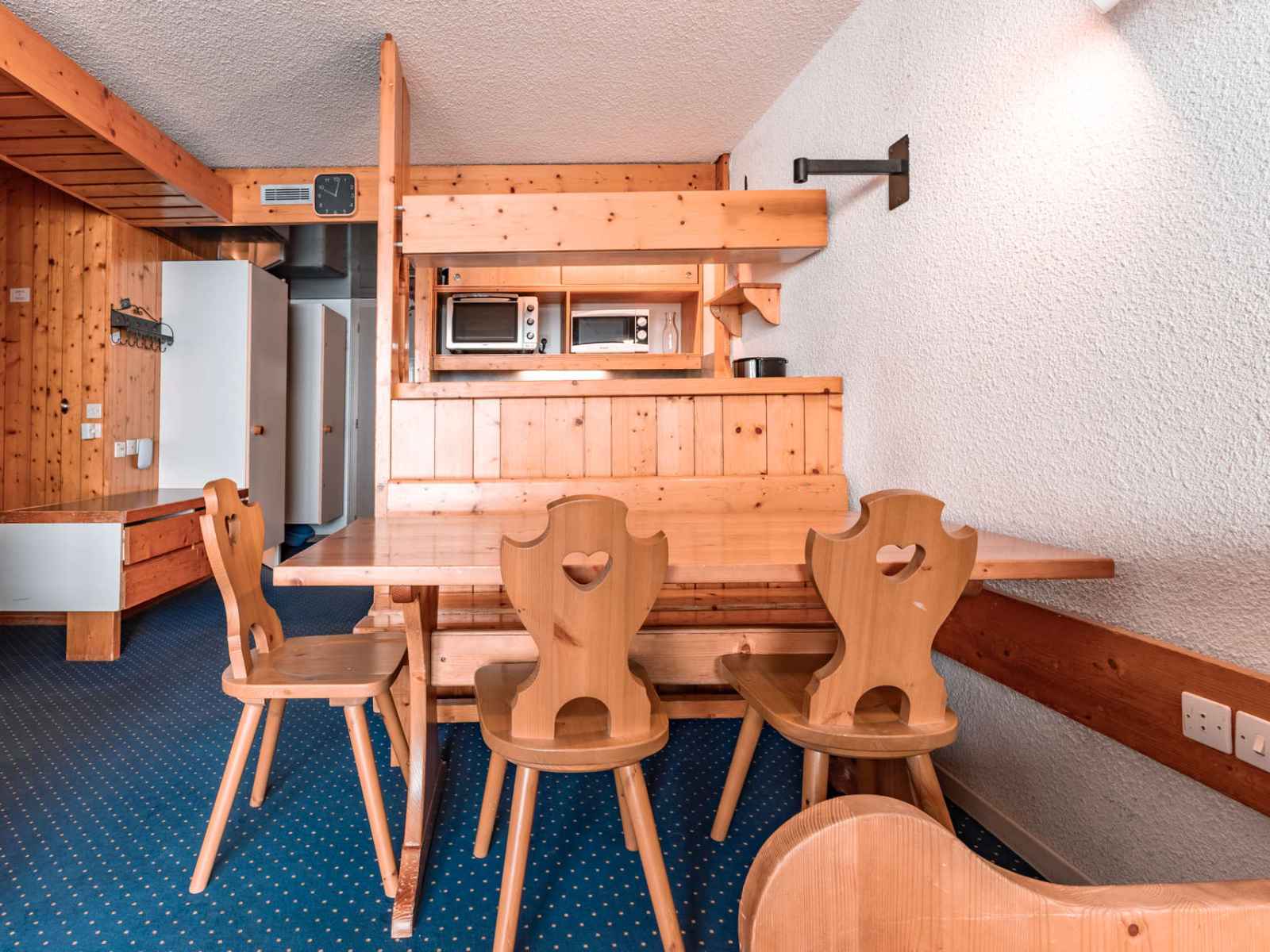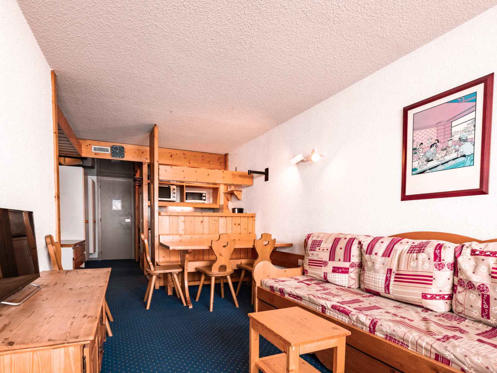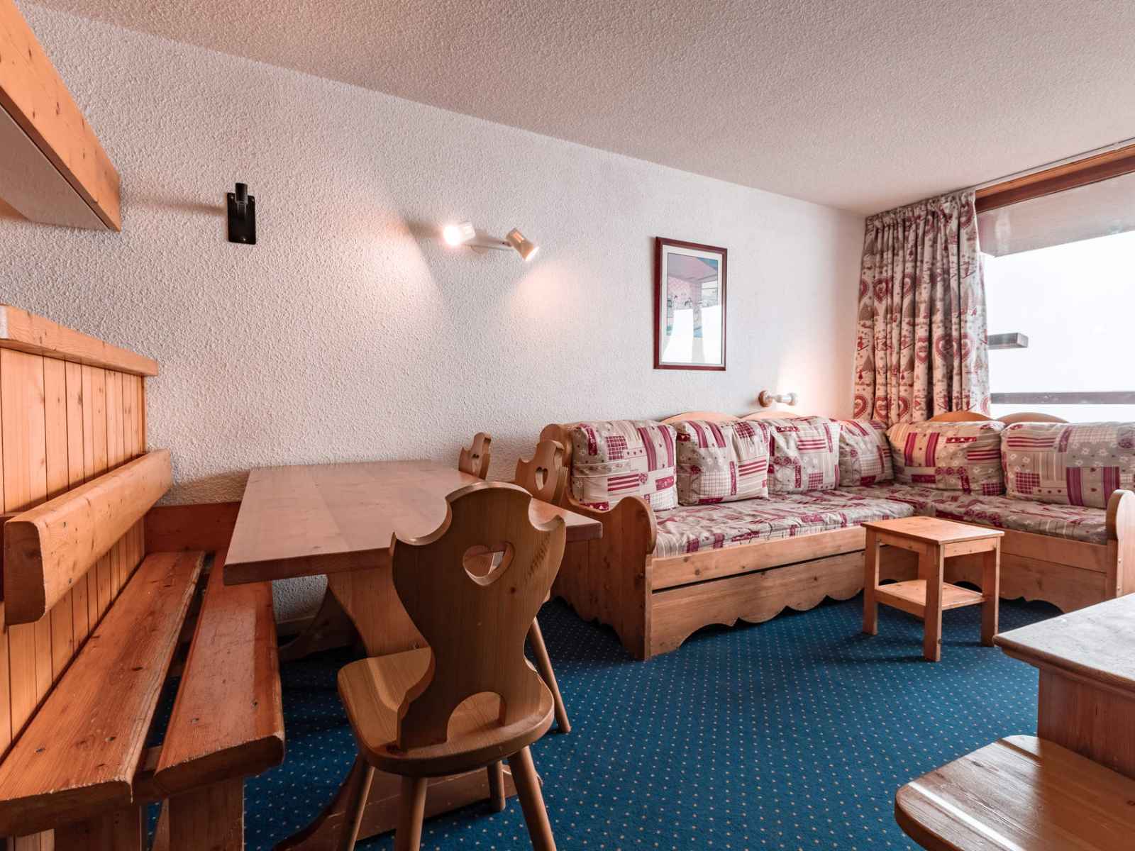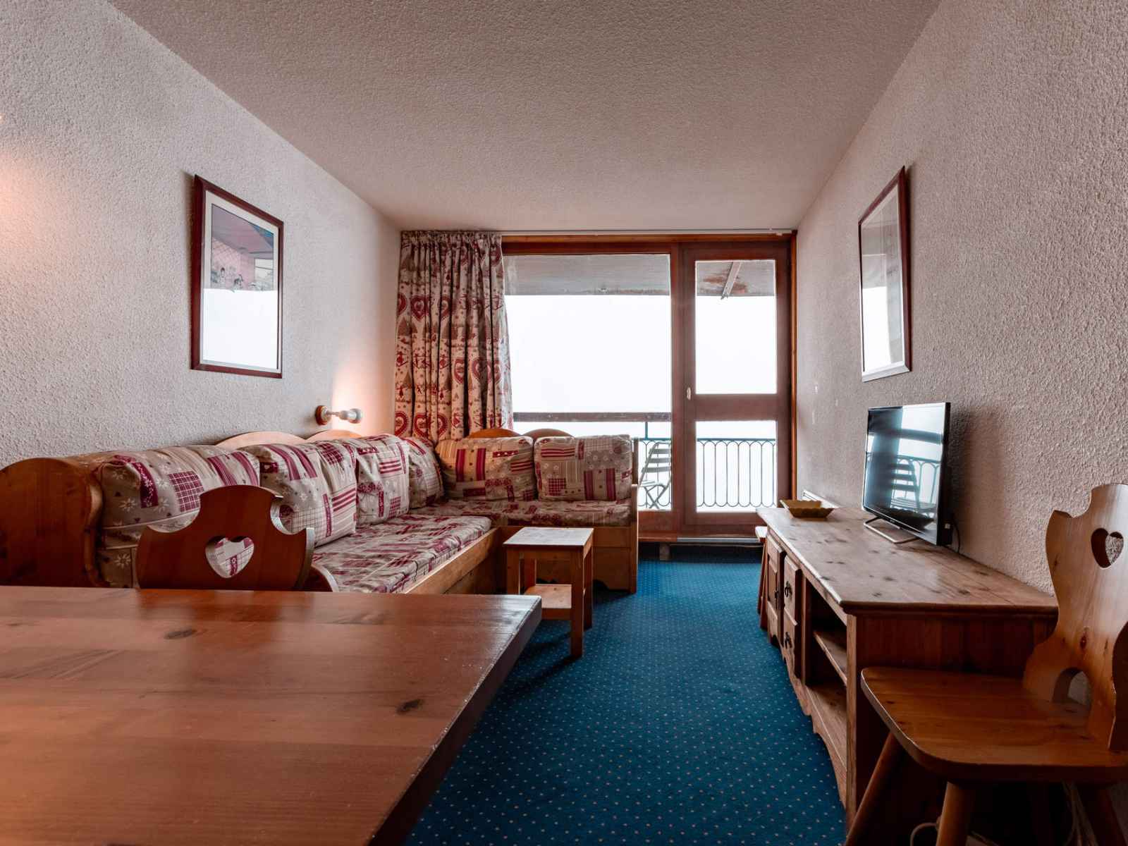 pour vos vacances au ski ou vos vacances d'été aux arcs 1800, réservez cet appartement 2 pièces qui bénéficie d'un balcon exposé sud-ouest, vous offrant une vue sur la vallée.
