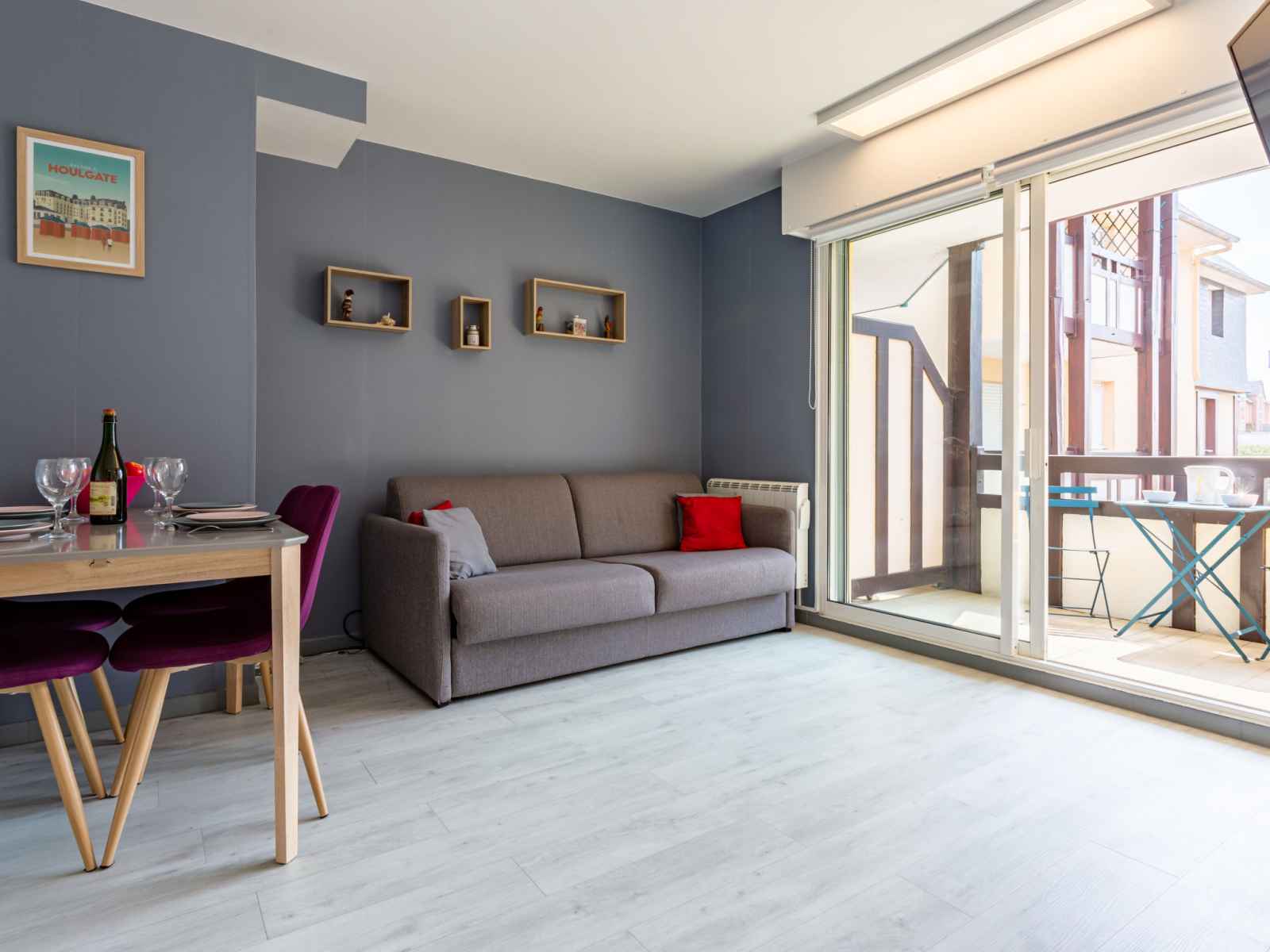 grille-pain, bouilloire électrique, micro-ondes, congélateur, cafetière électrique) avec bar. Douche, WC séparé. Chauffage électrique. Sol en parquet. Balcon 5 m2. A disposition: lave-linge, sèche-cheveux. Internet (Connexion WIFI, gratuit). Place de parking No 34 (couvert). Veuillez noter: détecteur de fumée. Au lieu d'une chambre fermée, des espaces de couchage sont situés dans une zone ouverte (galerie, alcôve...).