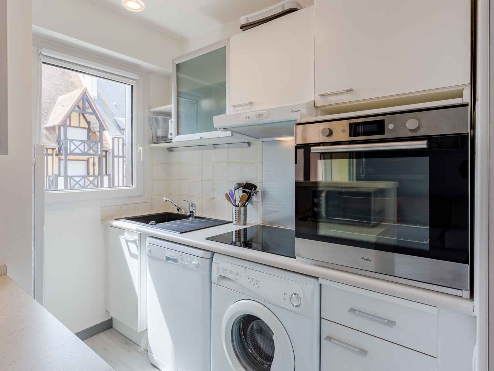 "port guillaume" 1.6 km, centre thermal "thalazur" 3.1 km. terrain de golf (9 trous) 2.8 km. la remise des clés a lieu à l’agence interhome de cabourg, 3 km. ecole de voile 300 m (en saison). plage de sable accessible par passerelle pietons 200 m, 2 km en voiture. galerie marchande ouverte en saison.