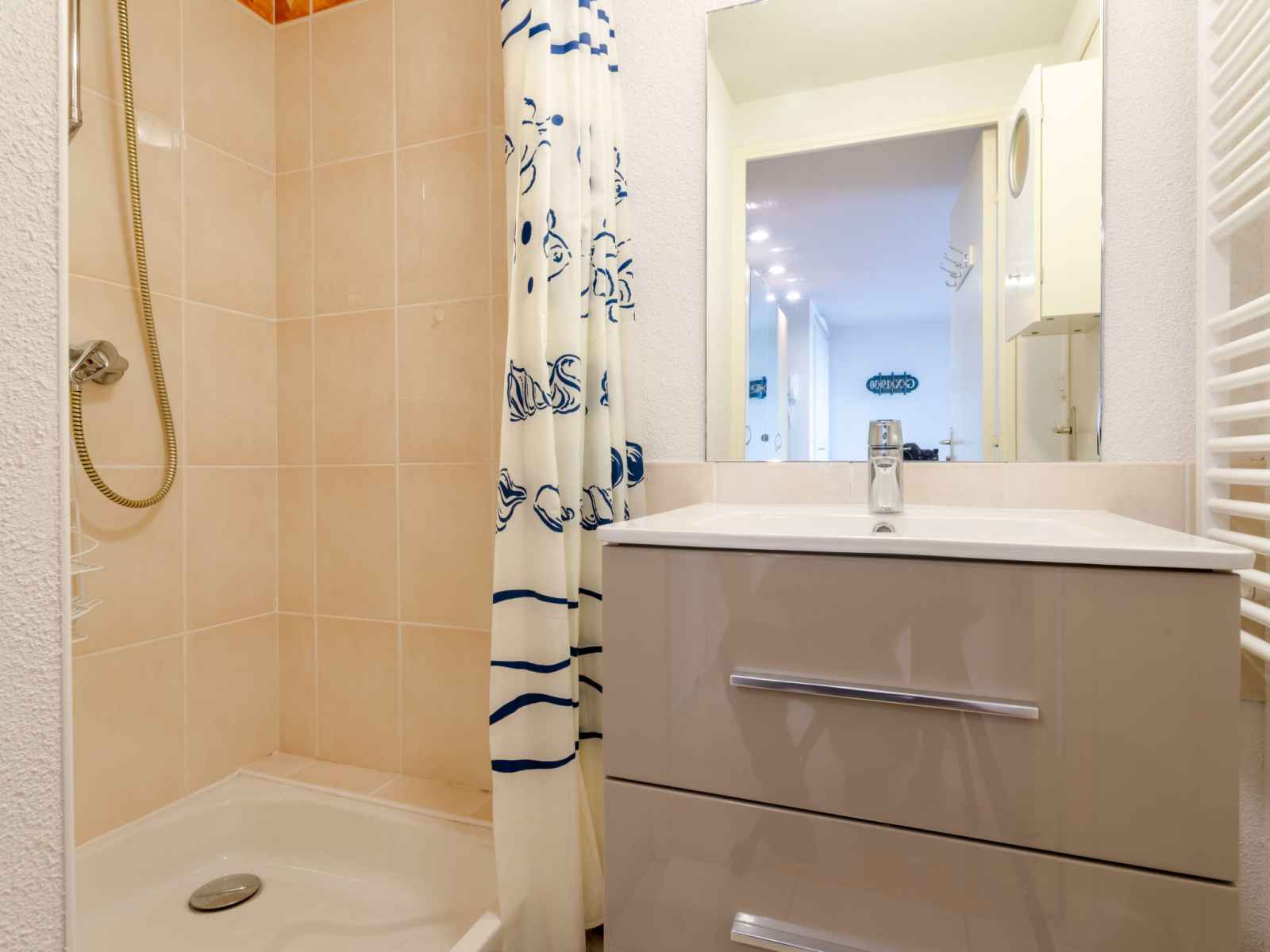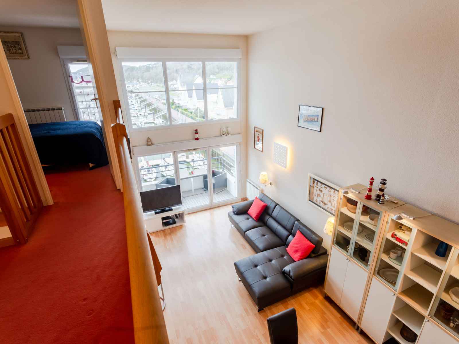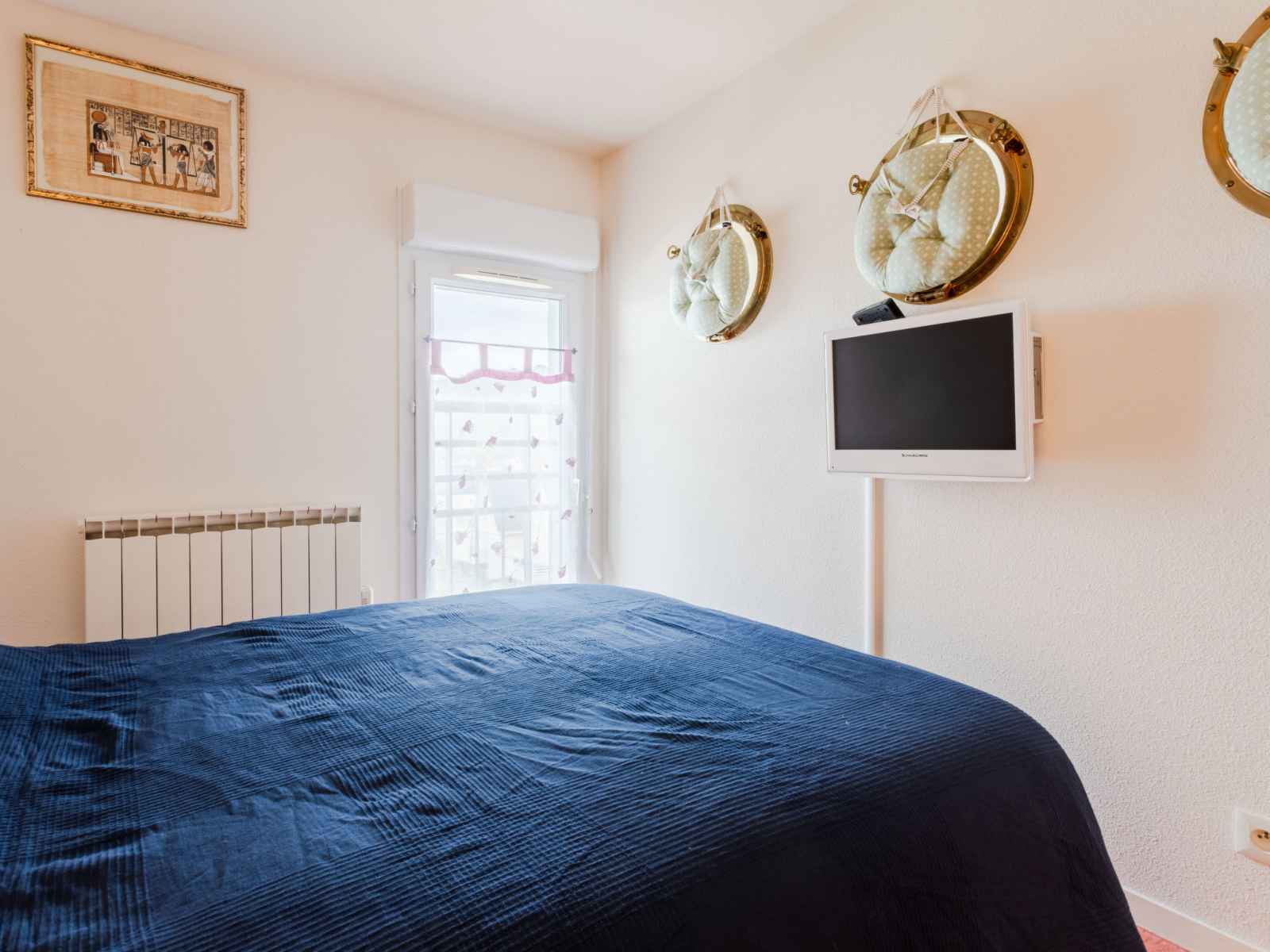 Douche, WC séparé. À l'étage supérieur: galerie avec 2 lits (80 cm, longueur 200 cm). 1 chambre avec 1 grand-lit (1 x 140 cm, longueur 190 cm), TV (écran plat), DVD. Douche/WC. Chauffage électrique. Balcon 4 m2, situation est. Très belle vue sur le port. A disposition: lave-linge, sèche-linge. Internet (Connexion WIFI, gratuit). Veuillez noter: détecteur de fumée. Annonce d'un particulier (art 155, IV du CGI).
