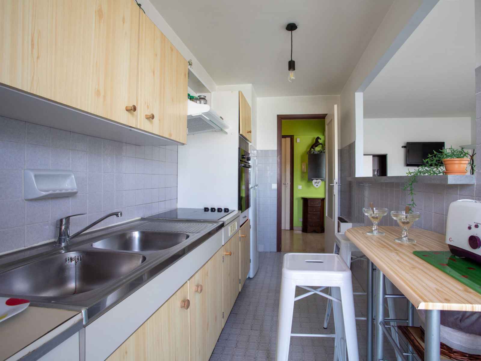 Apt 2 pièces 45 m2 au 1er étage. aménagement confortable: séjour/salle à manger avec 2 lits gigognes (2 pers. 2 x 80 cm, longueur 220 cm), tv (écran plat), air-conditionné. sortie sur le balcon. 1 chambre avec 1 grand-lit (1 x 140 cm, longueur 190 cm), air-conditionné. cuisine (four, 4 plaques vitrocéramiques, grille-pain, bouilloire