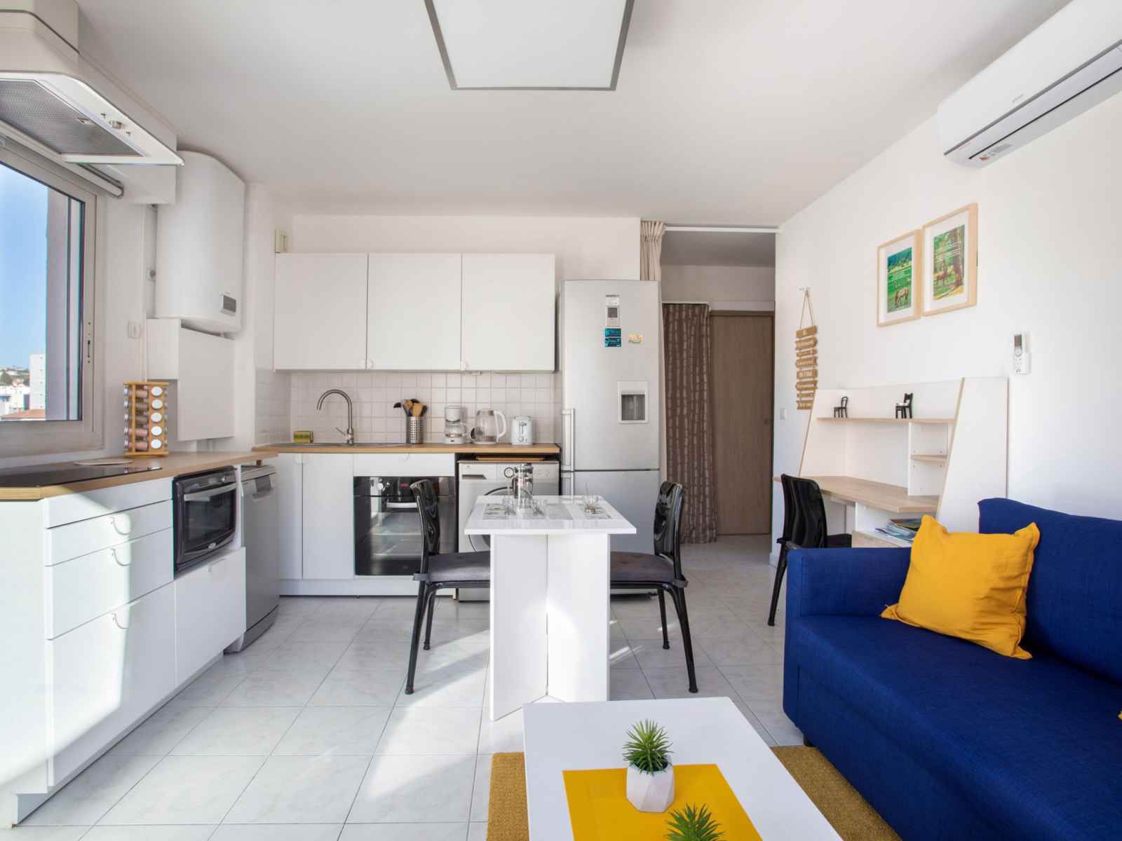 Apt 2 pièces 40 m2 au 3ème étage, situation ouest. aménagement confortable: séjour/salle à manger avec 1 divan-lit double (1 x 140 cm, longueur 190 cm), tv (écran plat). sortie sur la terrasse. 1 chambre avec 1 grand-lit (1 x 140 cm, longueur 190 cm). cuisine ouverte (four, lave-vaisselle, 3 plaques vitrocéramiques, grille-pain, bouilloire