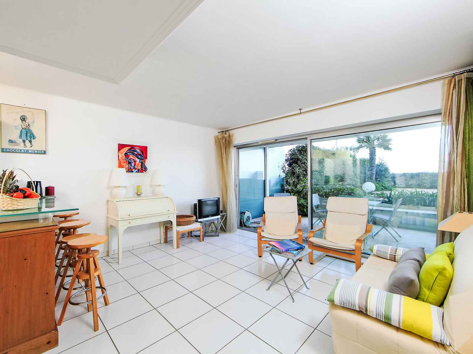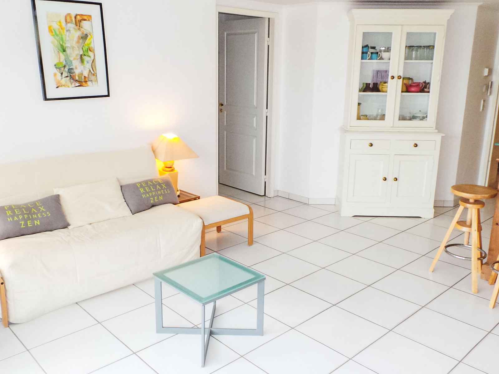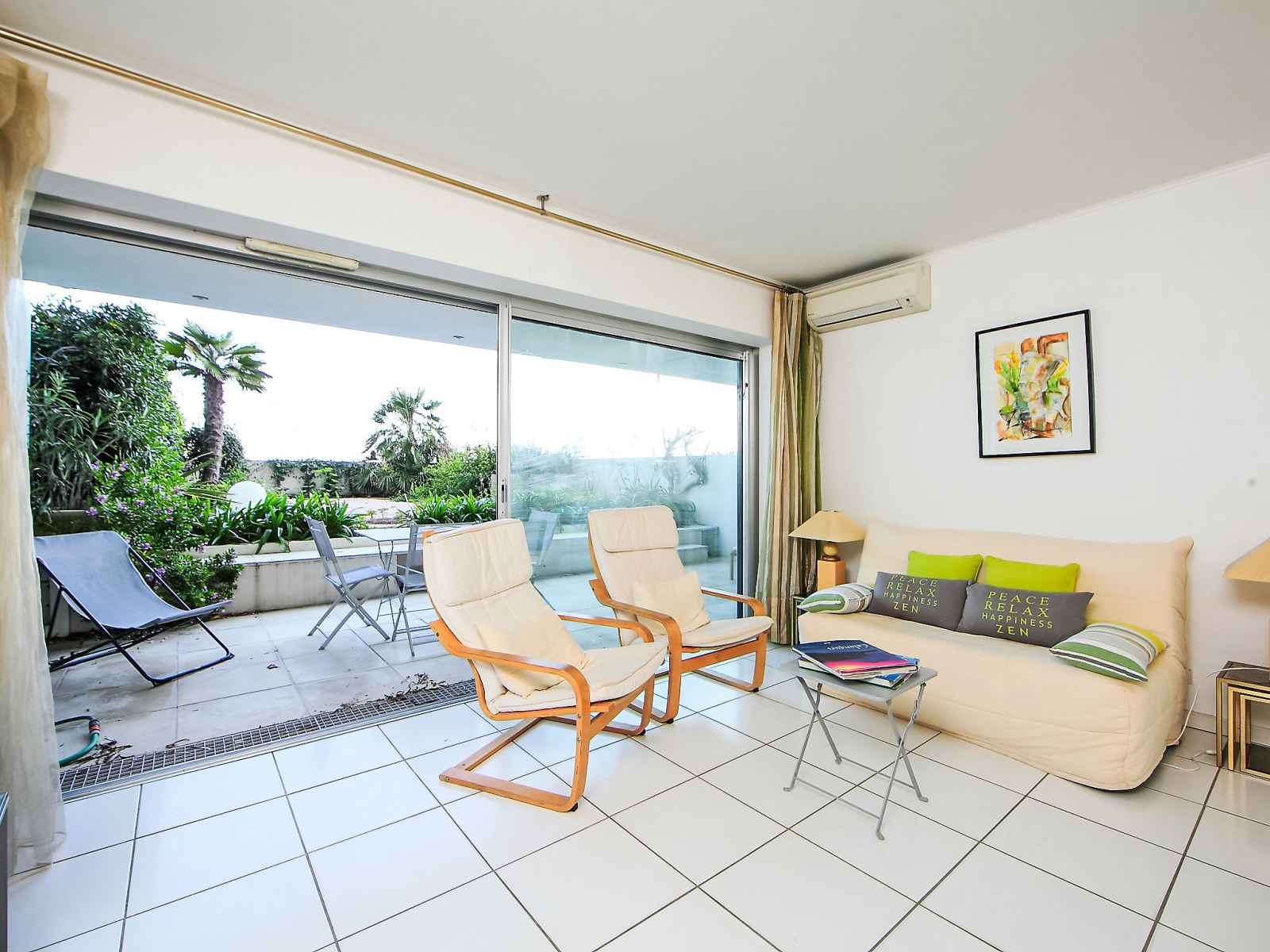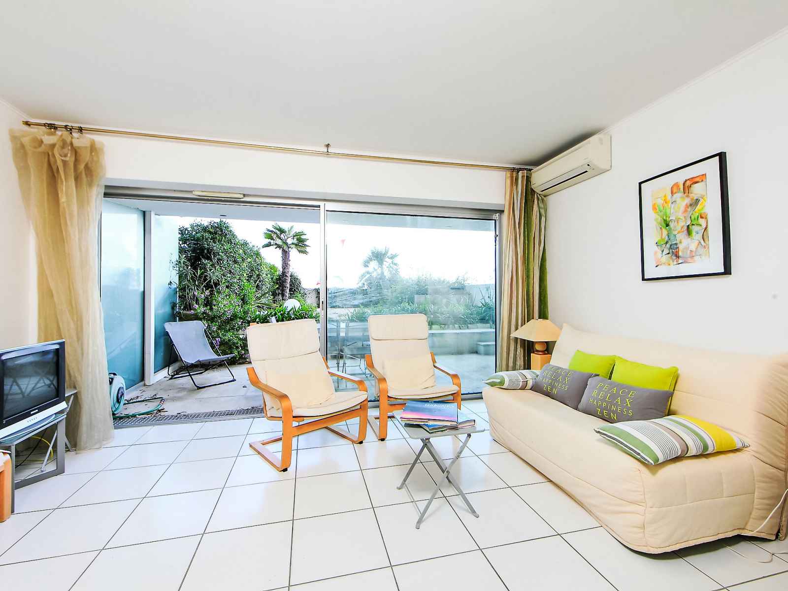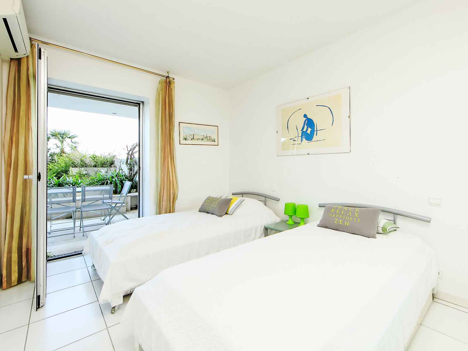 Apt 2 pièces 42 m2, au rez-de-chaussée. aménagement confortable et agréable: séjour/salle à manger avec 1 divan-lit double (140 cm, longueur 190 cm), tv et air-conditionné. sortie sur la terrasse. 1 chambre avec 2 lits (90 cm, longueur 190 cm), air-conditionné. sortie sur la terrasse. cuisine (4 plaques de cuisson, four, lave-vaisselle,