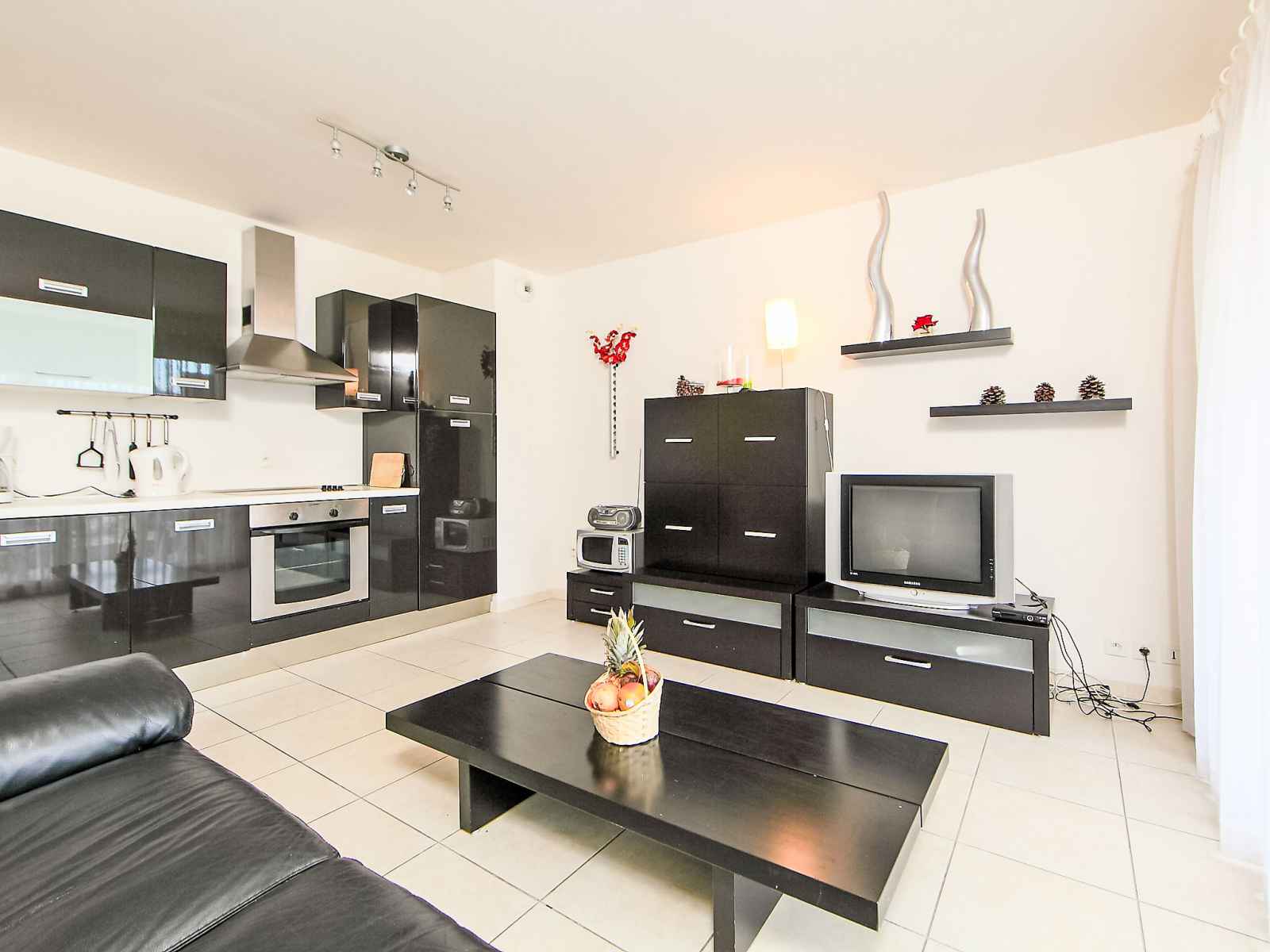 cuisson, four, lave-vaisselle, micro-ondes). Douche/bidet/WC. Chauffage électrique. Terrasse 16 m2, couverte, situation nord-ouest. Meubles de terrasse. A disposition: lave-linge. Internet (Connexion WIFI, en sus). Garage No 28, hauteur 220 cm, largeur 220 cm. Veuillez noter: TV seulement FR. Détecteur de fumée. veuillez noter : pas de table repas dans le salon. 06029003758SB