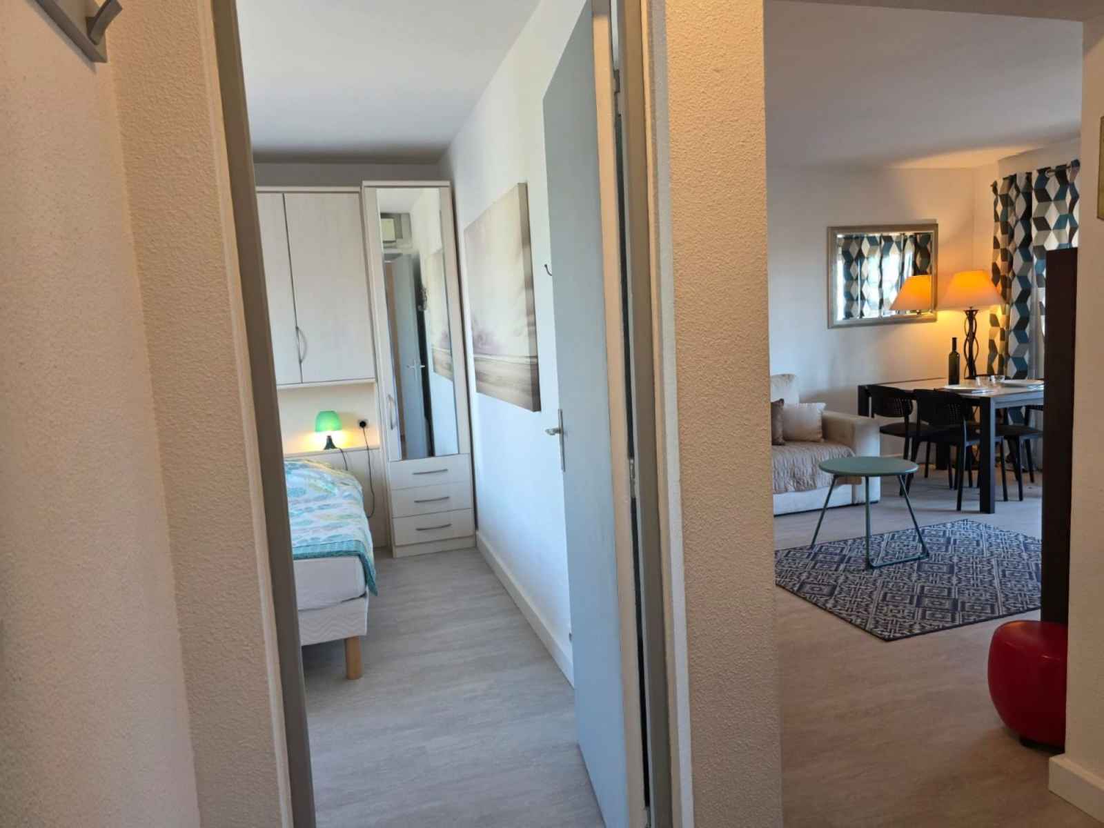 Apt 2 pièces 45 m2 au 2ème étage. aménagement confortable et agréable: séjour/salle à manger avec tv (écran plat), air-conditionné. sortie sur le balcon. 1 chambre avec 1 grand-lit (140 cm, longueur 190 cm), air-conditionné. cuisine (four, lave-vaisselle, 3 feux, grille-pain, bouilloire électrique, micro-ondes, congélateur, cafetière