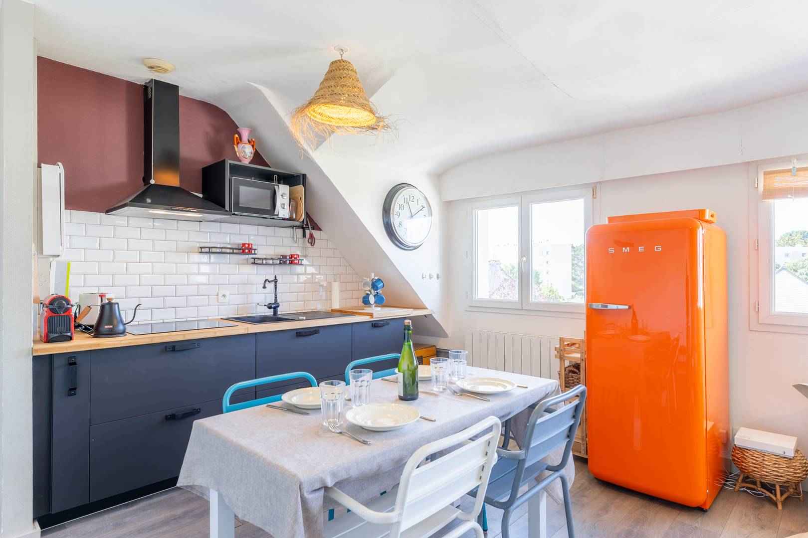 • Equipements : Animaux refusés, Bouilloire, Cafetière à capsule, Chauffage, combiné four micro-ondes, Grille pain, Lave-linge, Lave-vaisselle, Plaques vitro céramique, Proximité plage, Réfrigérateur avec congélateur, Télévision, Wifi
