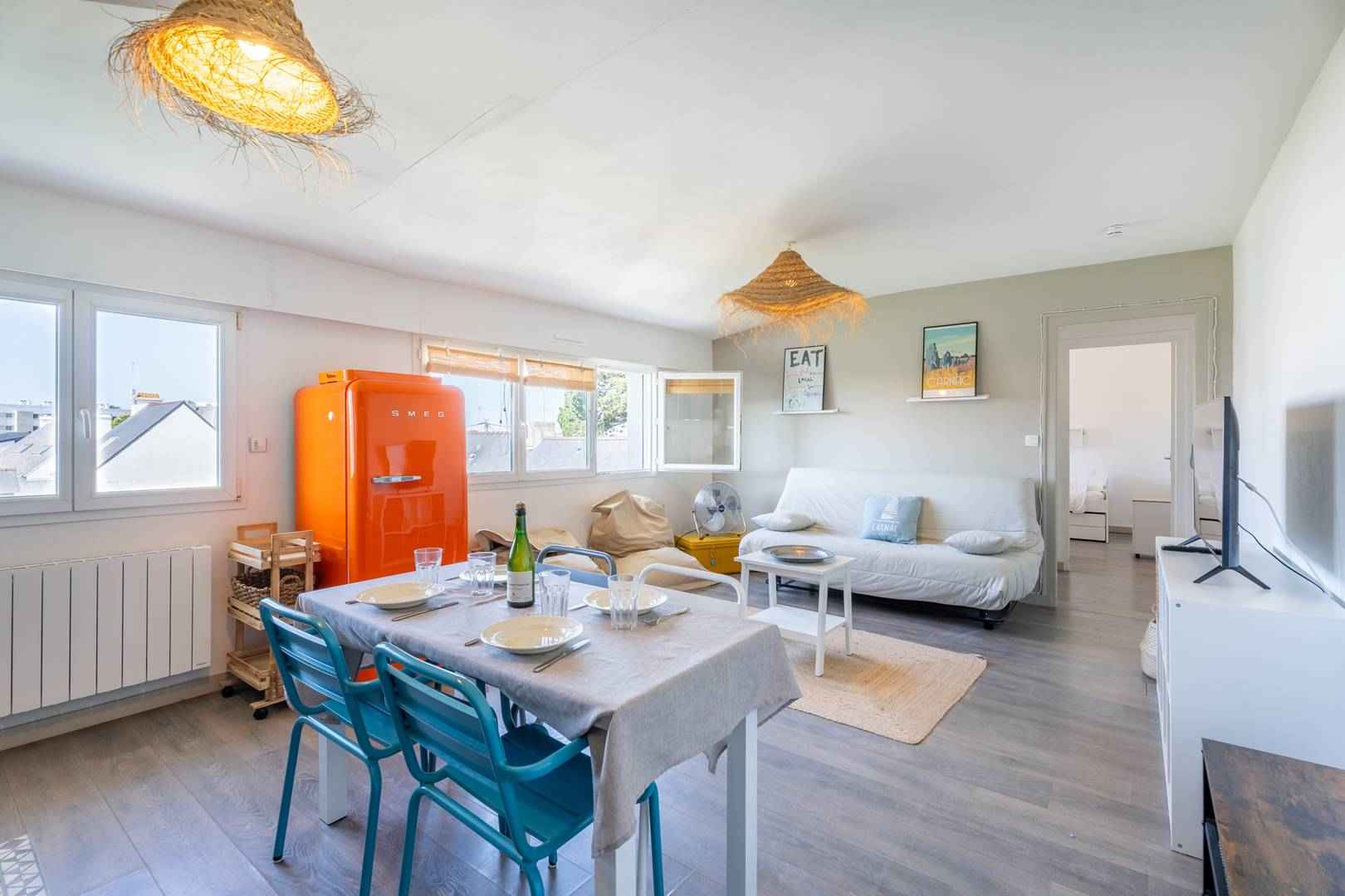 Au centre de carnac plage, à 400m de la grande plage, bel appartement 2 pièces (env. 43m²), au 2e étage d'une résidence située sur l'avenue des druides (2e étage, porte gauche) :