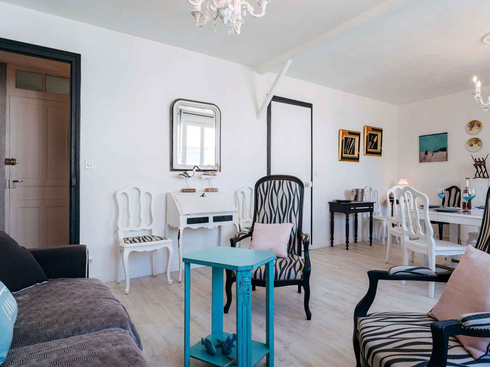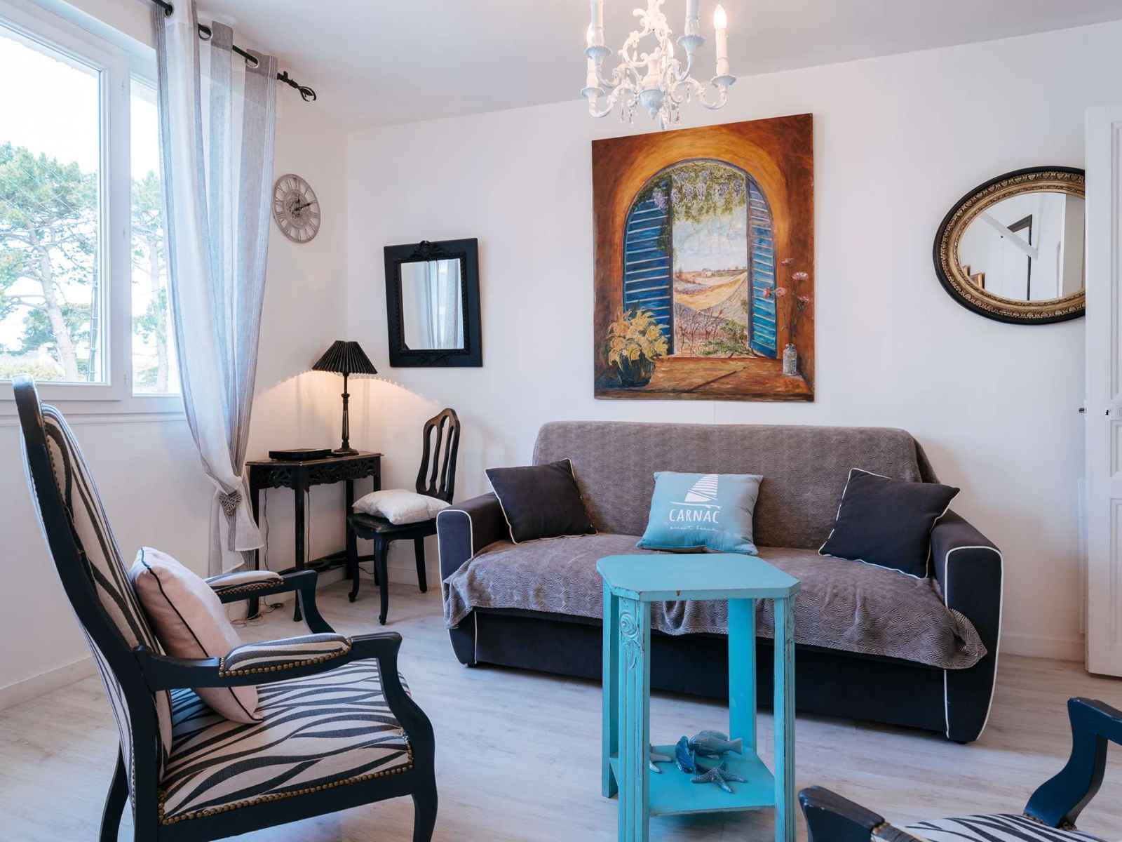 Au centre de carnac plage, à 50m de la grande plage, très bel appartement 2 pièces (env. 60m²) pour 4 personnes, entièrement refait à neuf et à la décoration soignée, situé dans la résidence la josseline (1er étage, porte gauche) :
