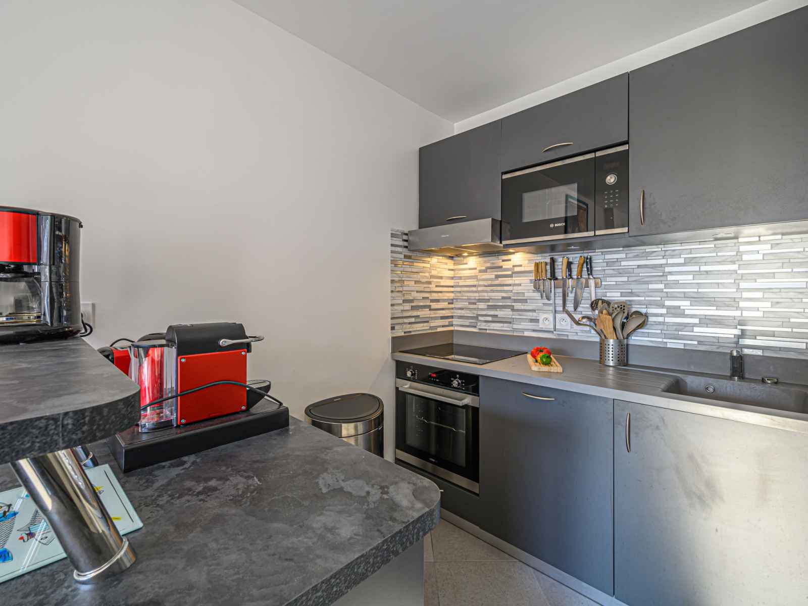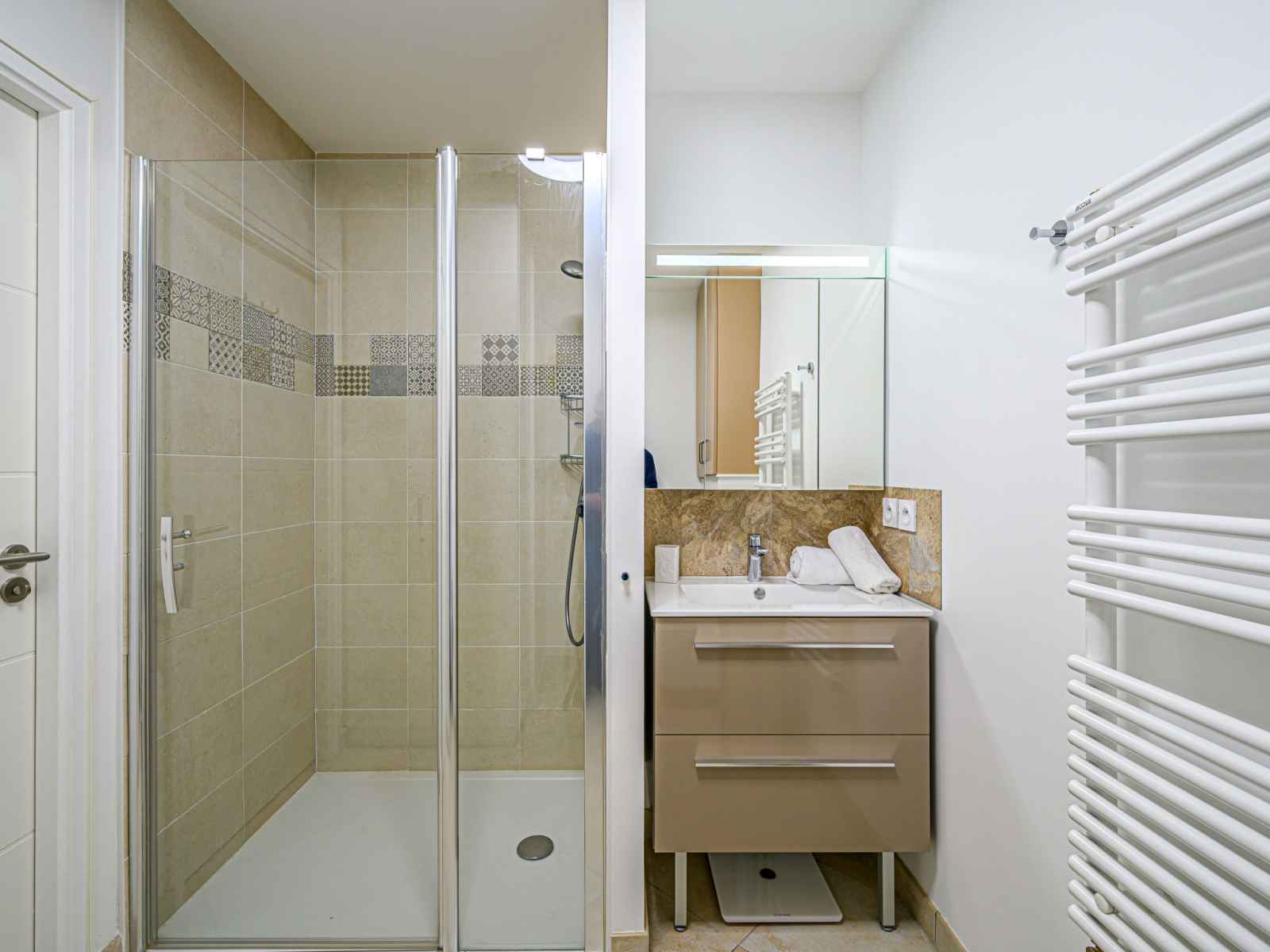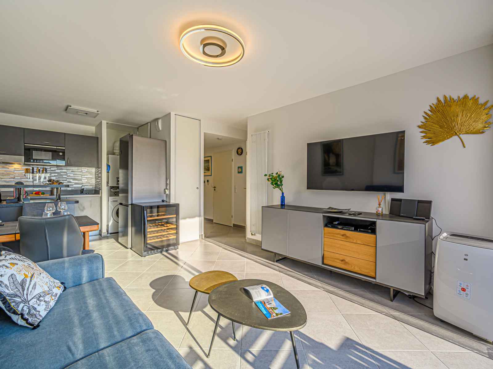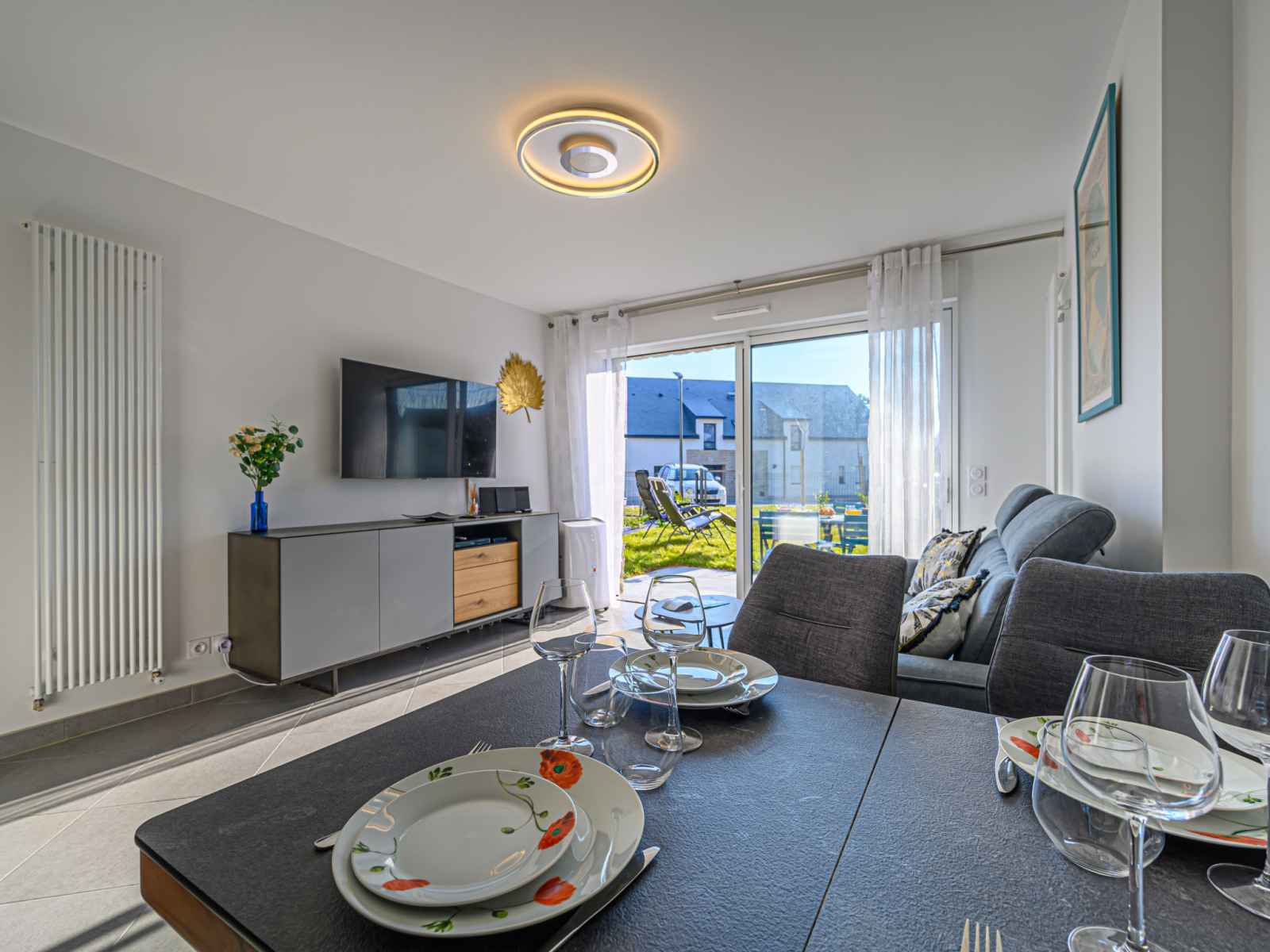 Apt 2 pièces 42 m2, au rez-de-chaussée. aménagement confortable et moderne: séjour/salle à manger avec 1 divan-lit double (1 x 140 cm, longueur 190 cm), tv (écran plat). sortie sur la terrasse. 1 chambre avec 1 grand-lit (1 x 160 cm, longueur 200 cm), tv (écran plat), lecteur cd. cuisine (four, lave-vaisselle, 4 plaques à induction,