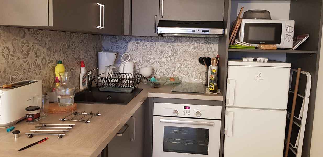 composition : entrée, séjour convertible 2 pers, tv, espace cuisine équipé lave-vaisselle, avec four, refrigerateur-congelateur, plaques vitro, micro-ondes, chambre 1 lit 160 ou 2 lits 80, salle de bains