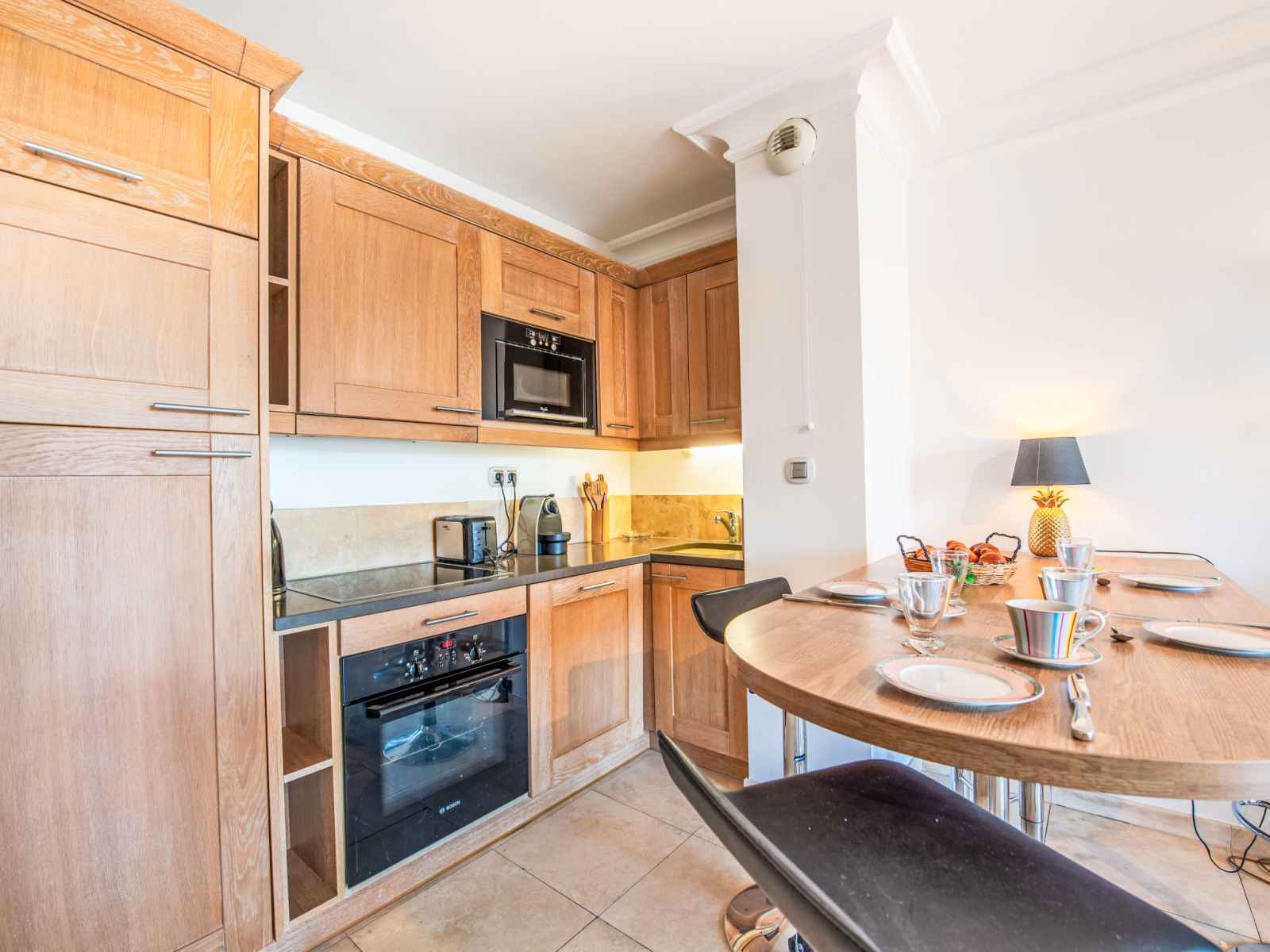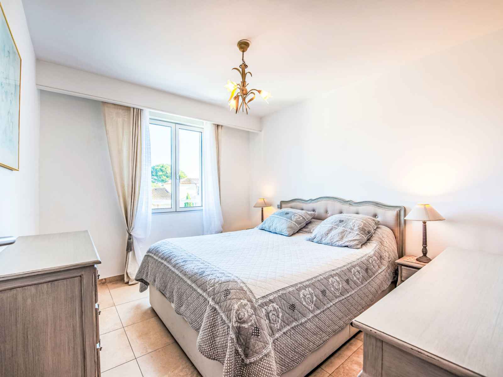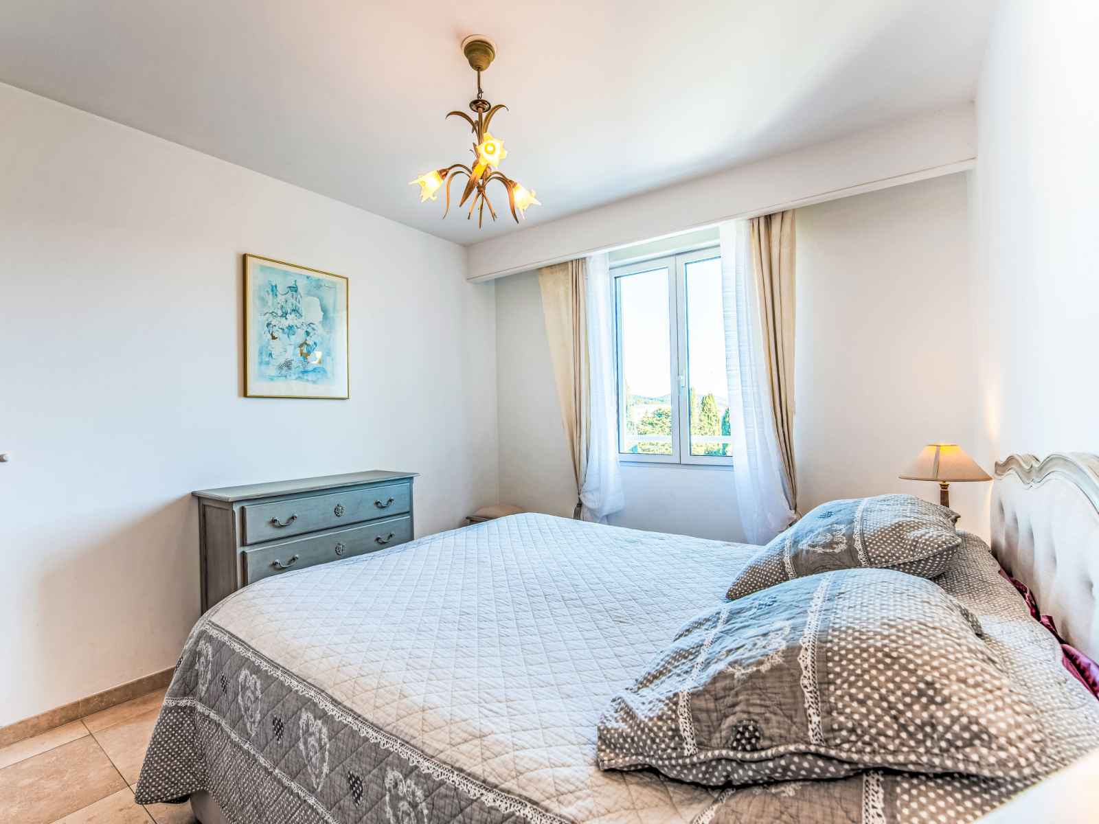 électrique, micro-ondes, congélateur, cafetière électrique, Capsules pour machine à café (Nespresso) (NON INCLUSES)). Salle de bains, WC séparé. Chauffage électrique, air-conditionné, chauffe eau (150 litres). Terrasse 9 m2. Meubles de terrasse. Belle vue éloignée sur les montagnes et les alentours. A disposition: lave-linge, sèche-linge, fer à repasser, sèche-cheveux. Internet (Connexion WIFI, en sus). Place de parking No 132 (couvert, 1 Voiture). Veuillez noter: TV seulement FR. Détecteur de fumée. Annonce d'un particulier (art 155, IV du CGI).