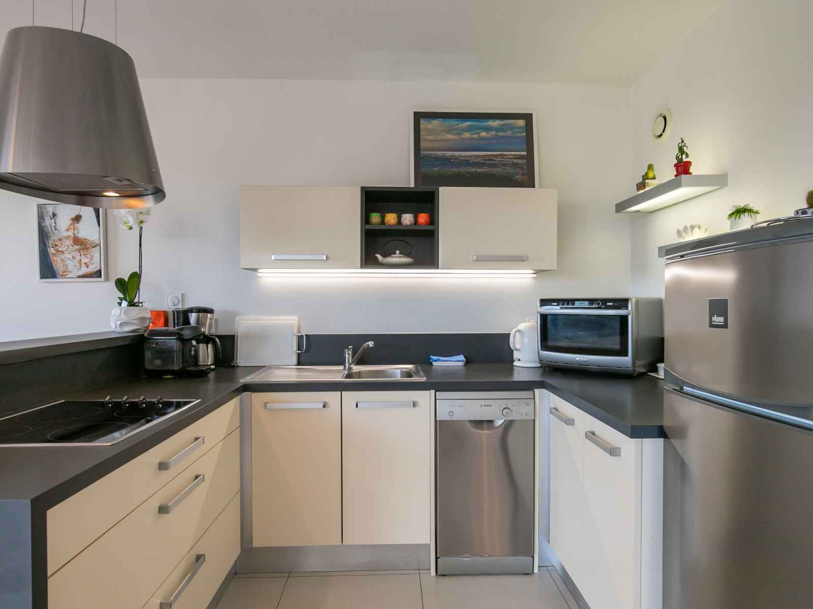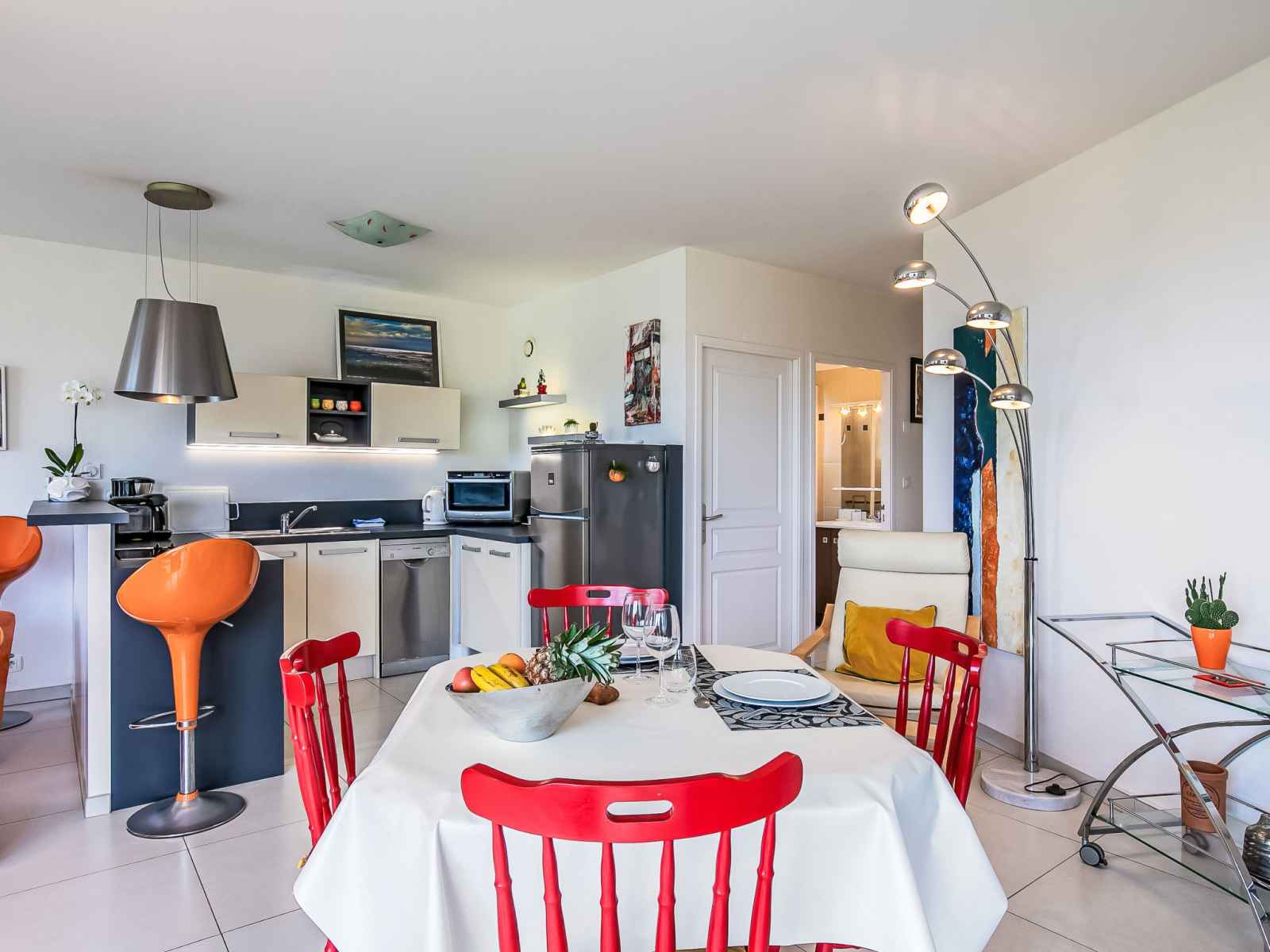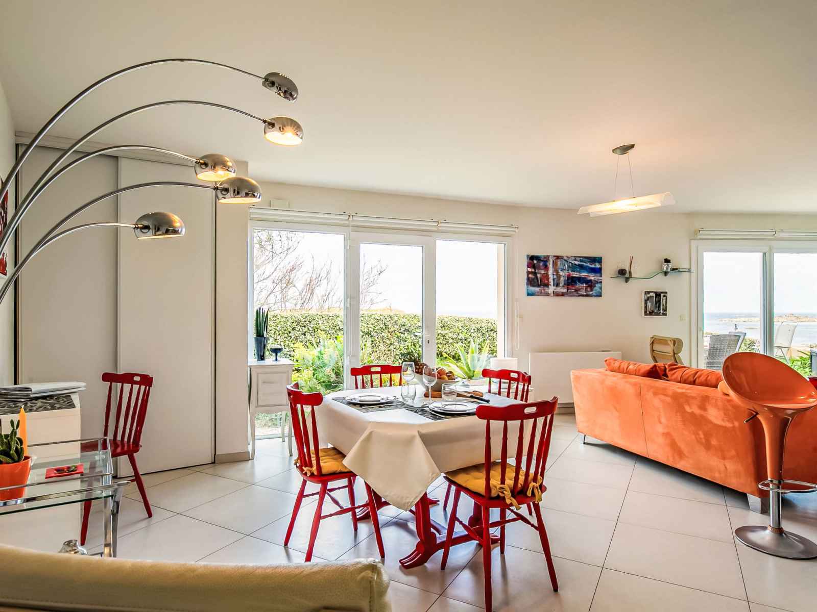 "les pieds dans l'eau", apt 2 pièces 58 m2, au rez-de-chaussée. spacieux et clair, aménagement très confortable et de bon goût: grand séjour 42 m2 avec tv et écran plat. sortie sur le jardin, sur la terrasse. 1 chambre avec 1 lit double (2 x 90 cm, longueur 200 cm). cuisine ouverte (lave-vaisselle, 4 plaques vitrocéramiques, grille-pain,