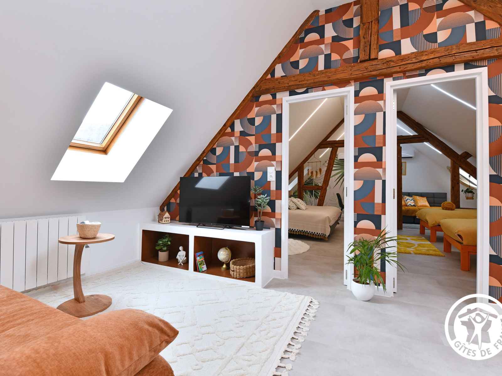 35m2, coin salon avec canapé (convertible en lit), table basse, tv écran plat
